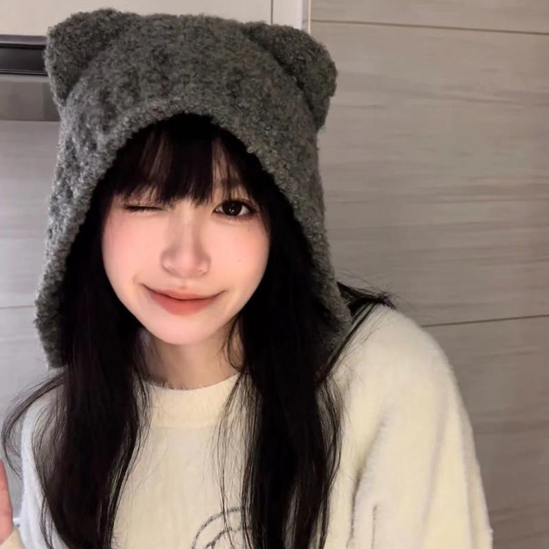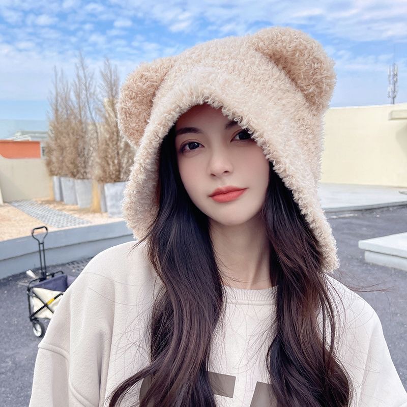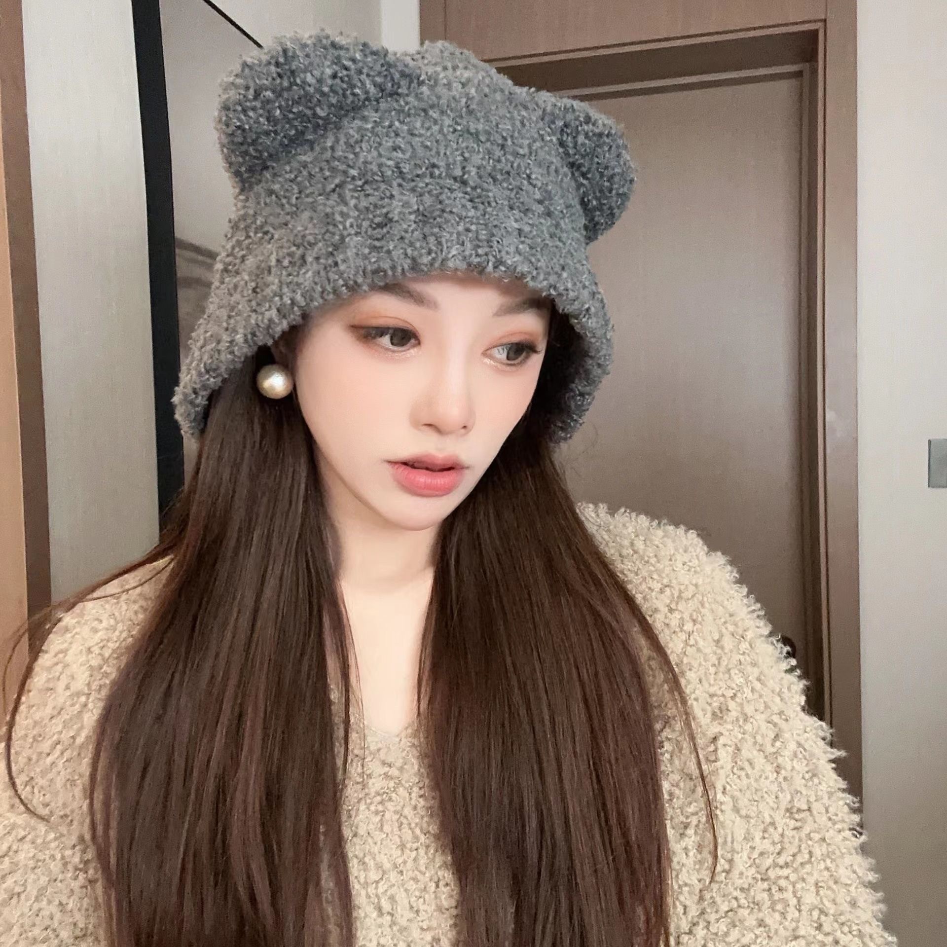 冬季帽子小熊帽可爱洋气时尚针织帽秋款韩版百搭保暖毛线帽护耳
