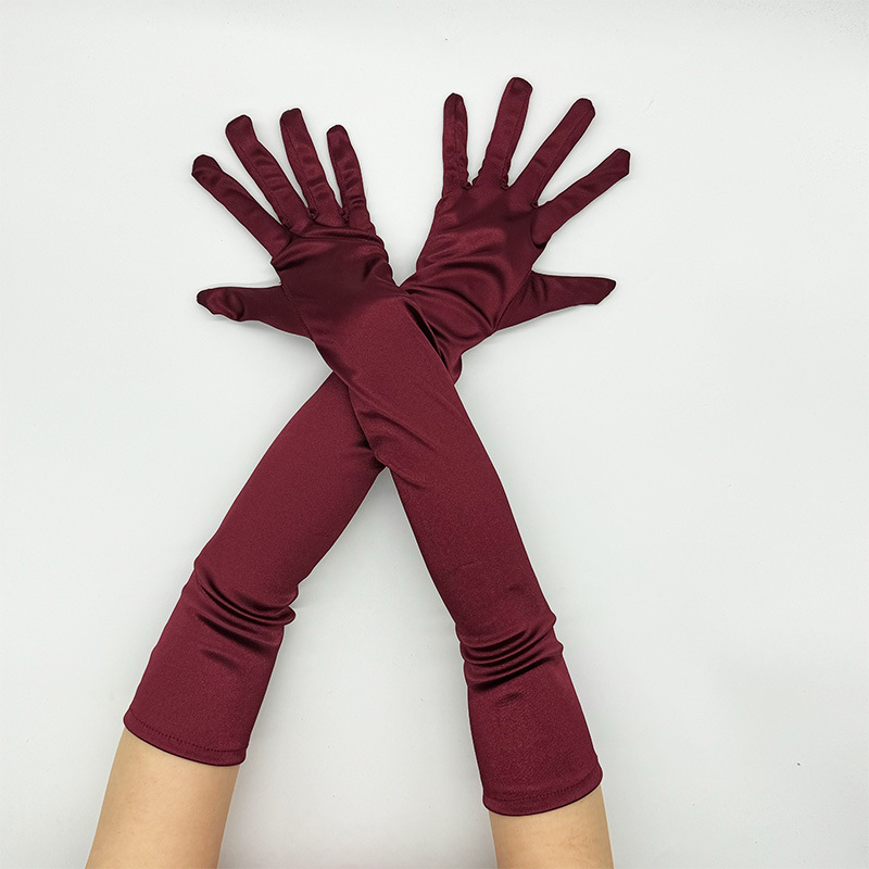 加长缎面弹力色丁手套1920s复古派对cosplay女士手套婚纱手套