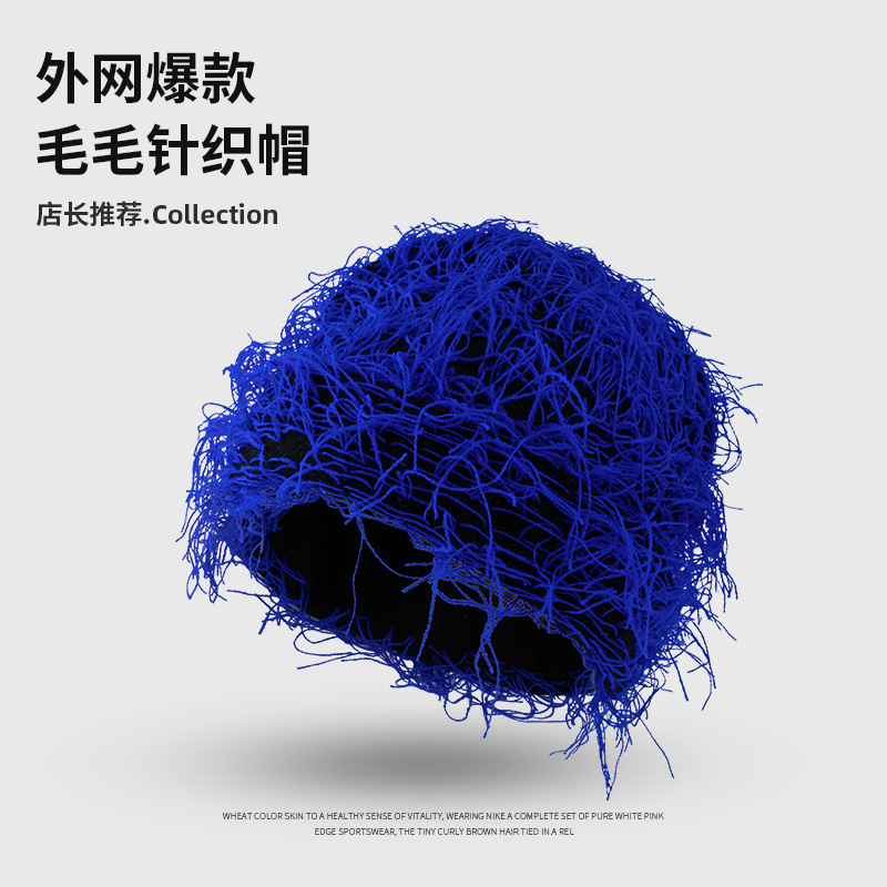 亚马逊爆款猴子毛毛荧光帽子秋冬季保暖防寒嘻哈搞怪欧美针织帽子