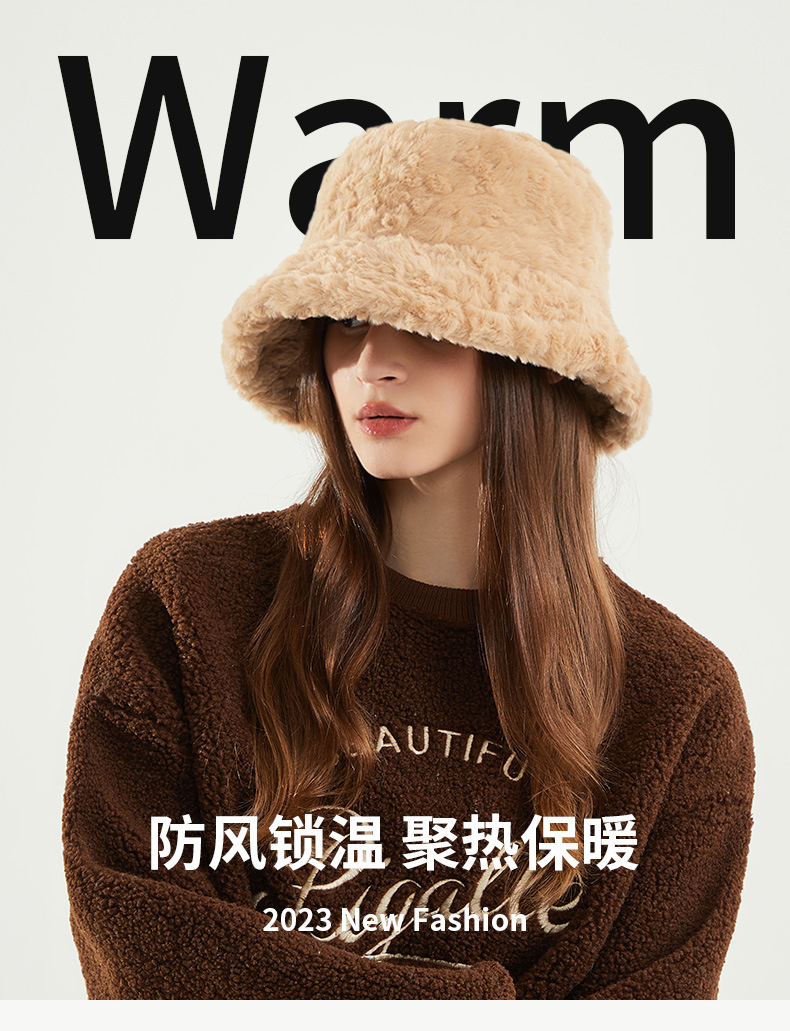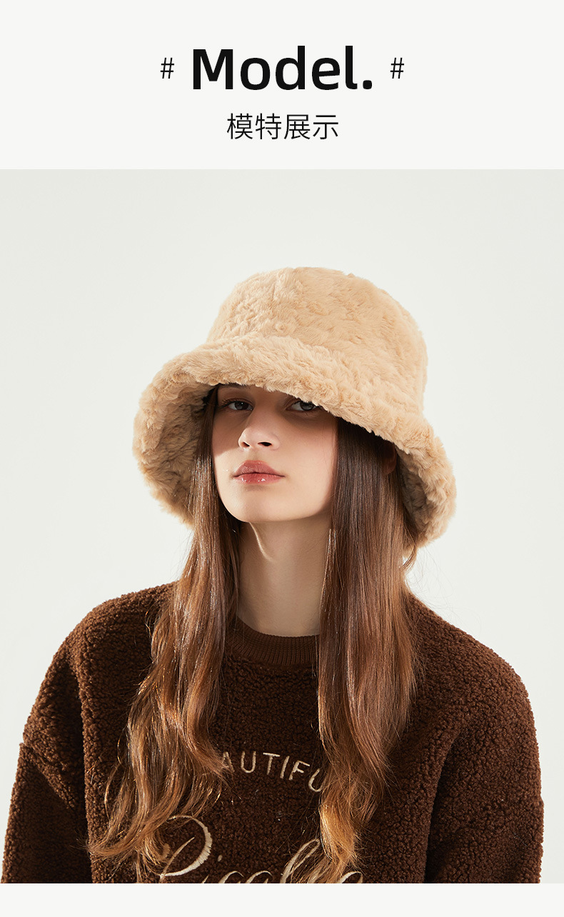 仿兔毛帽子大头女秋冬百搭显脸小保暖加厚时尚韩版爆款毛绒渔夫帽