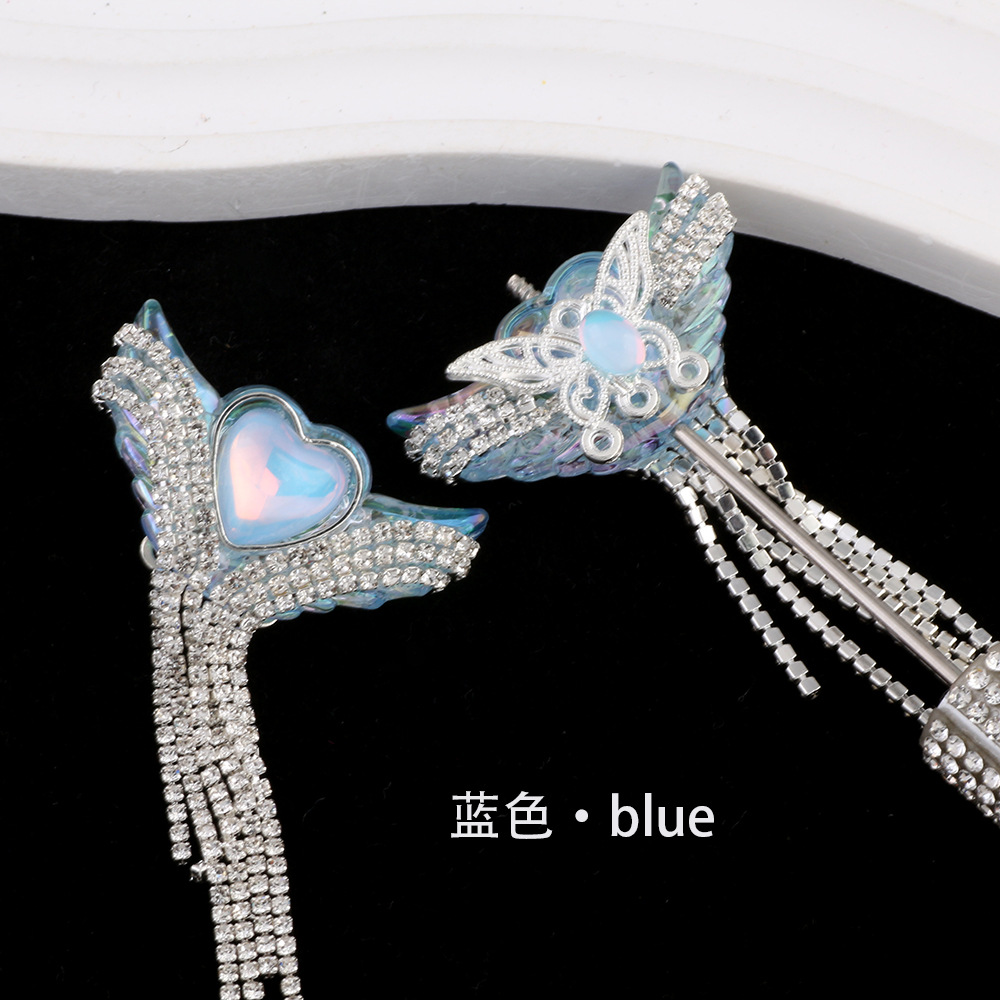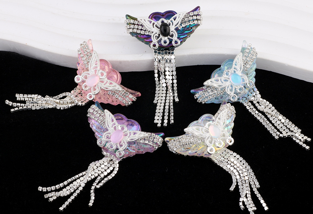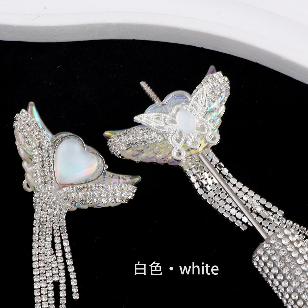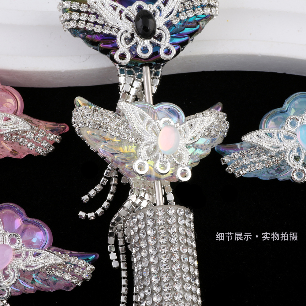 亚克力重工天使之翼爱心宝石钻链流苏直孔珠DIY手机链钥匙链配件