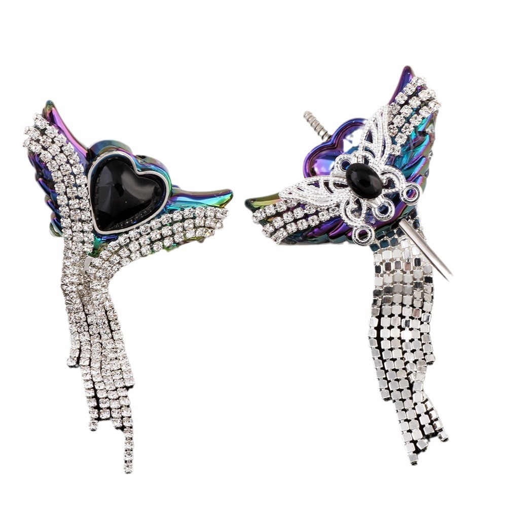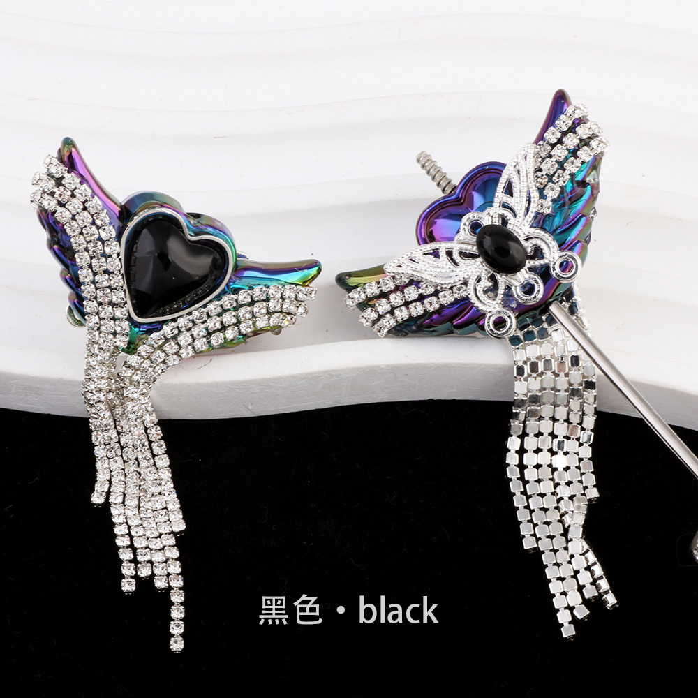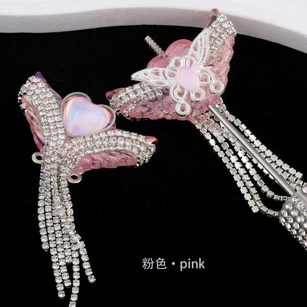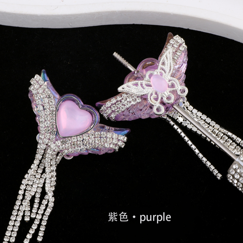 亚克力重工天使之翼爱心宝石钻链流苏直孔珠DIY手机链钥匙链配件