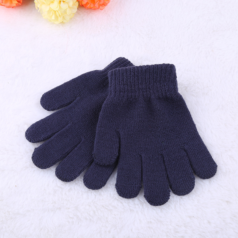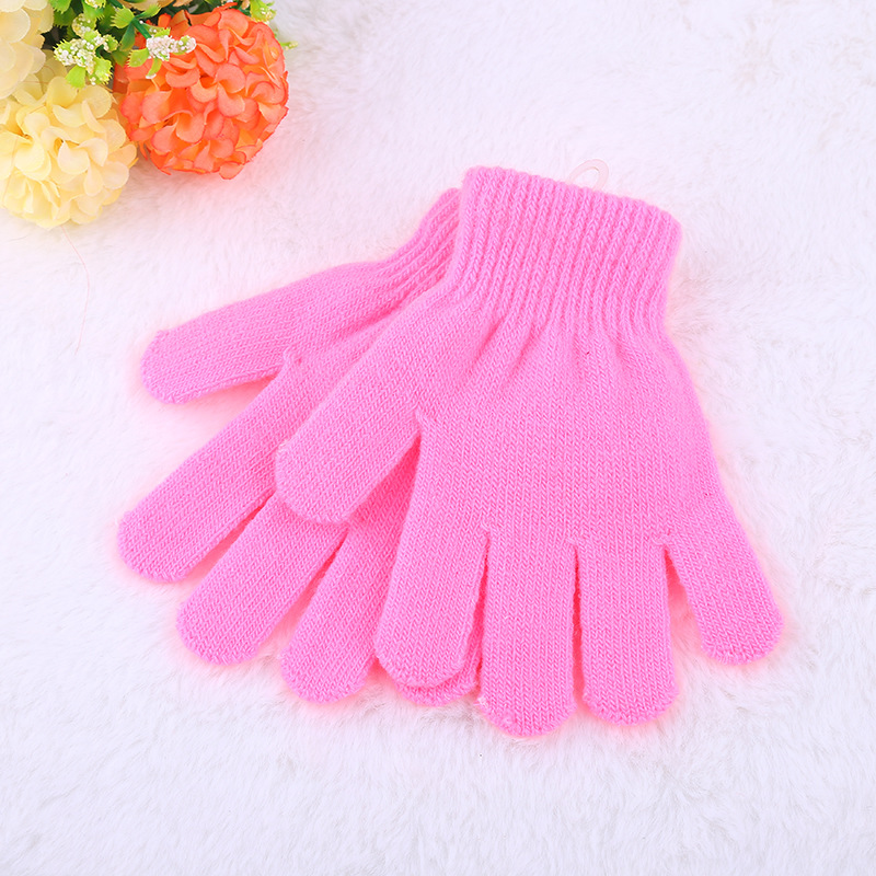 秋冬保暖针织腈纶创意纯色魔术手套儿童学生手套厂家直销可选LOGO