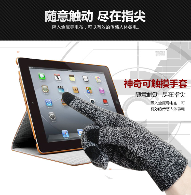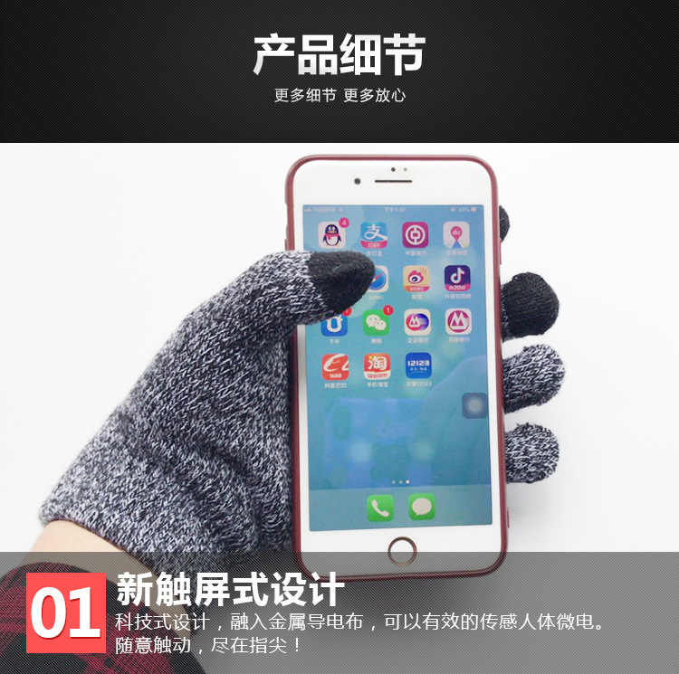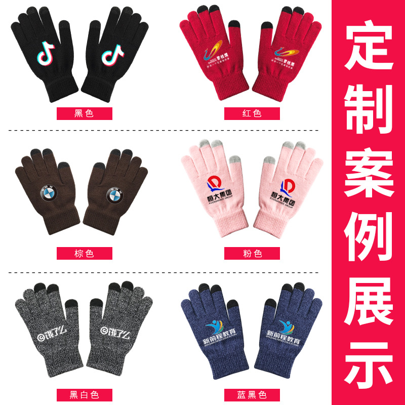 冬季针织触屏手套定制logo加印文字图案男女保暖加厚加绒户外手套