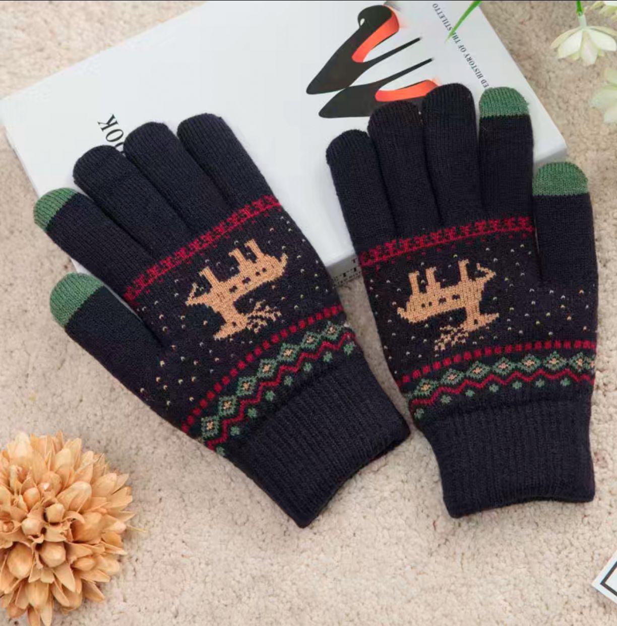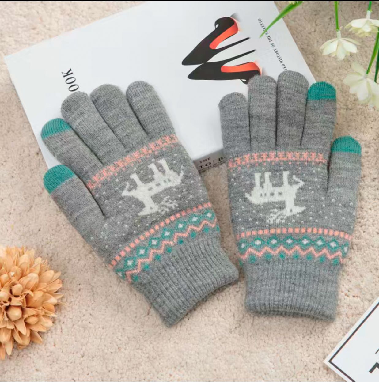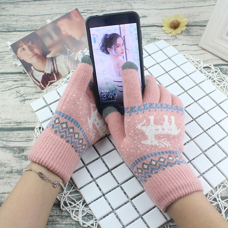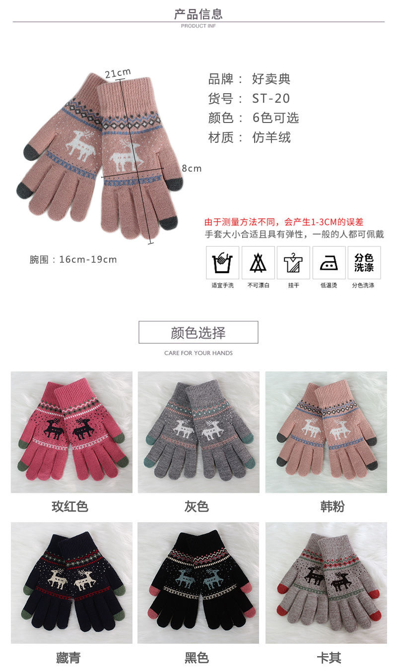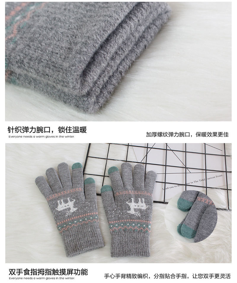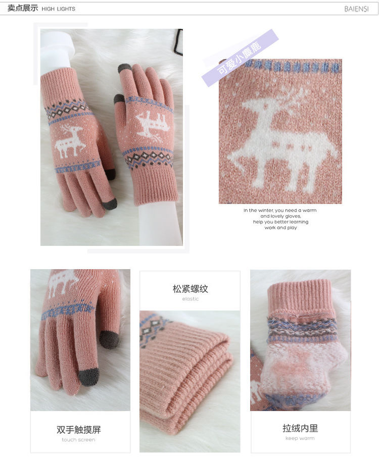 单层加绒冬季手套保暖手套手套户外骑车小鹿手套学生小鹿针织手套