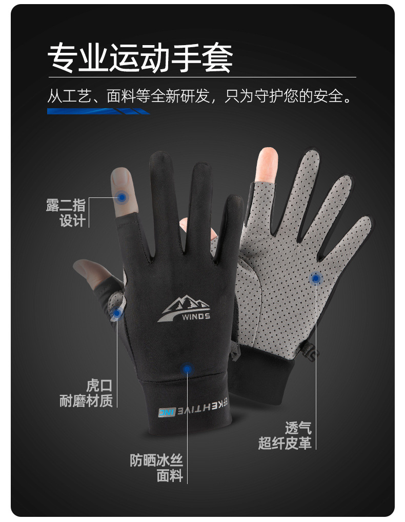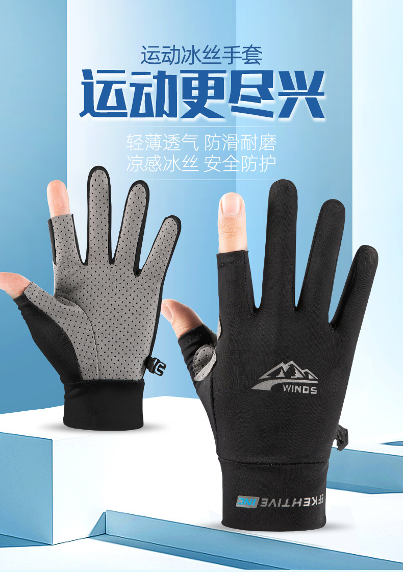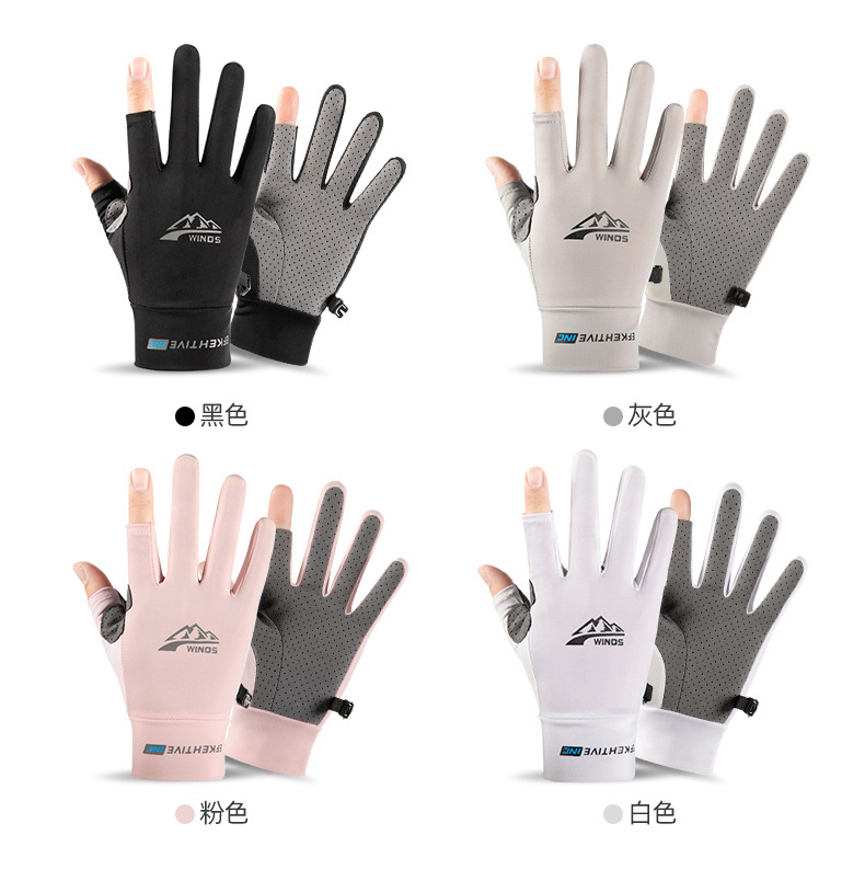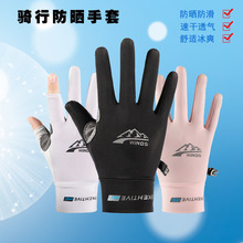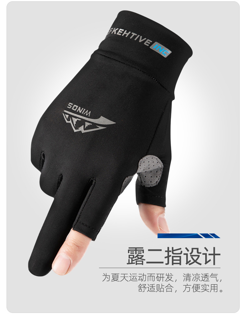 防晒手套男女士夏季冰丝防紫外线开车触屏骑行外卖漏二指钓鱼手套