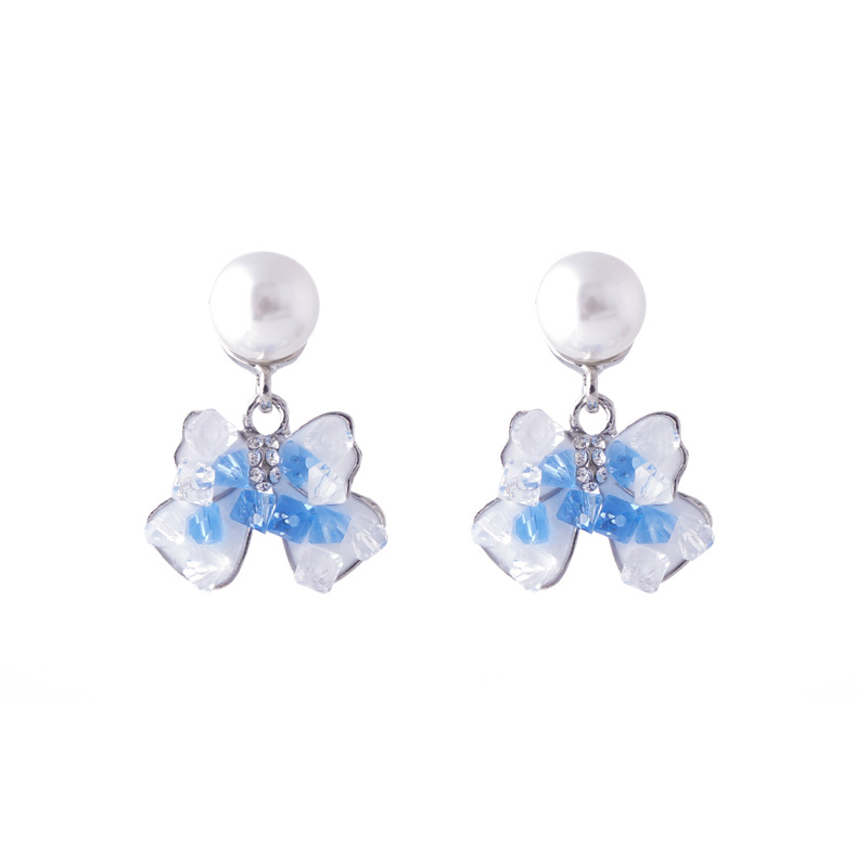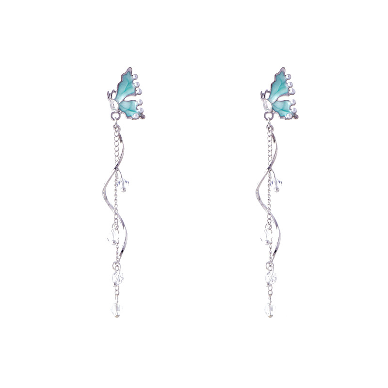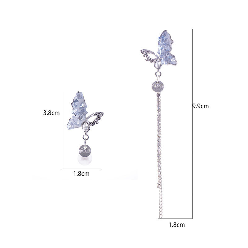 春夏流行渐变蓝水晶蝴蝶耳钉S925银针小众设计2024年新款爆款耳环