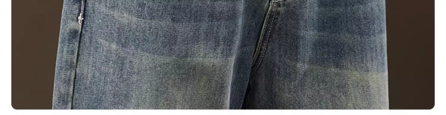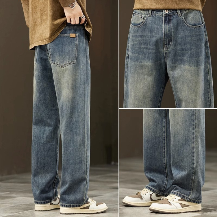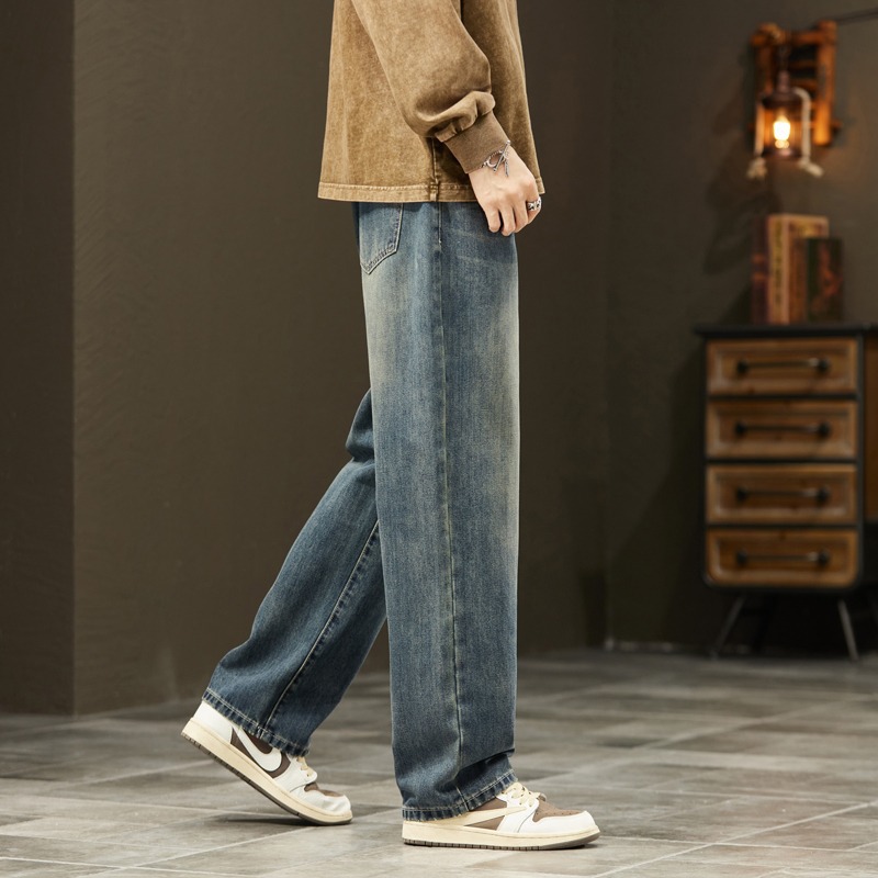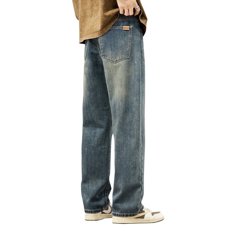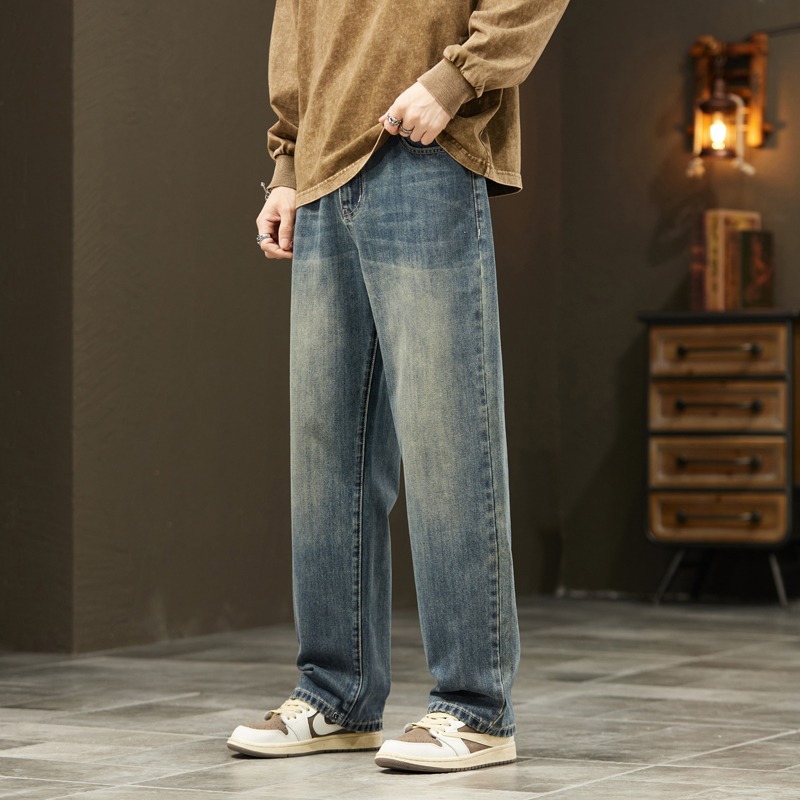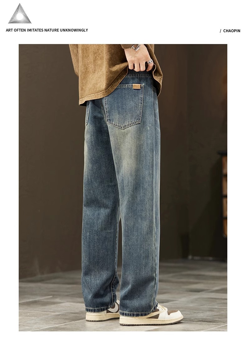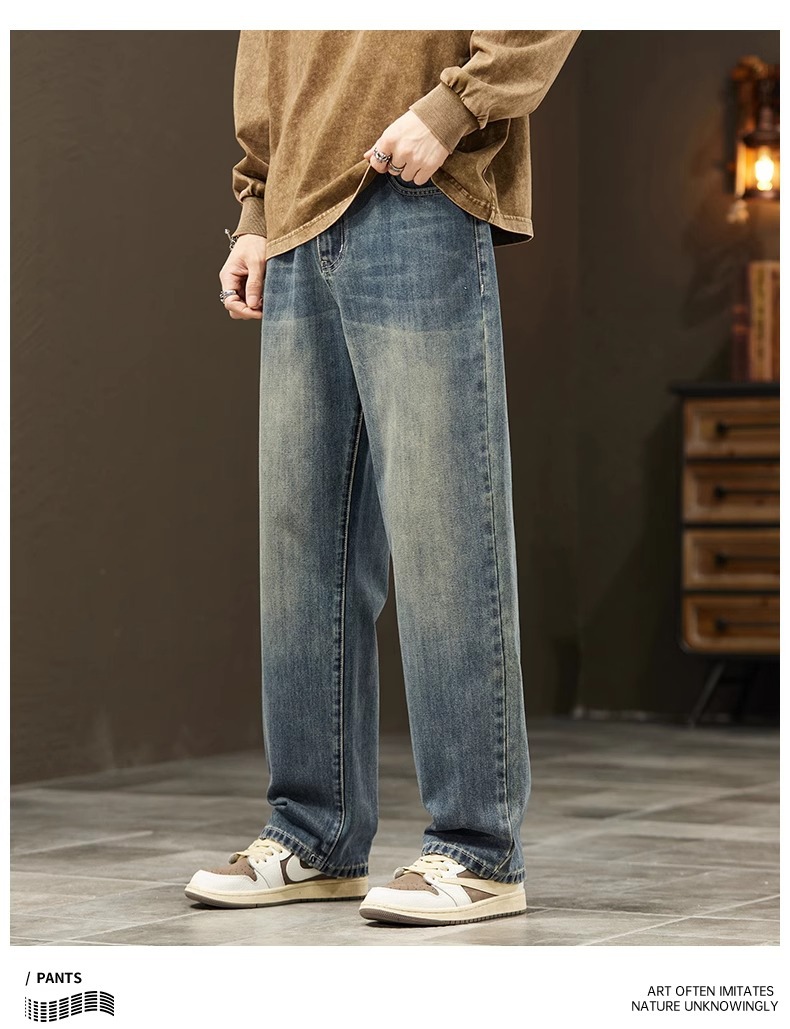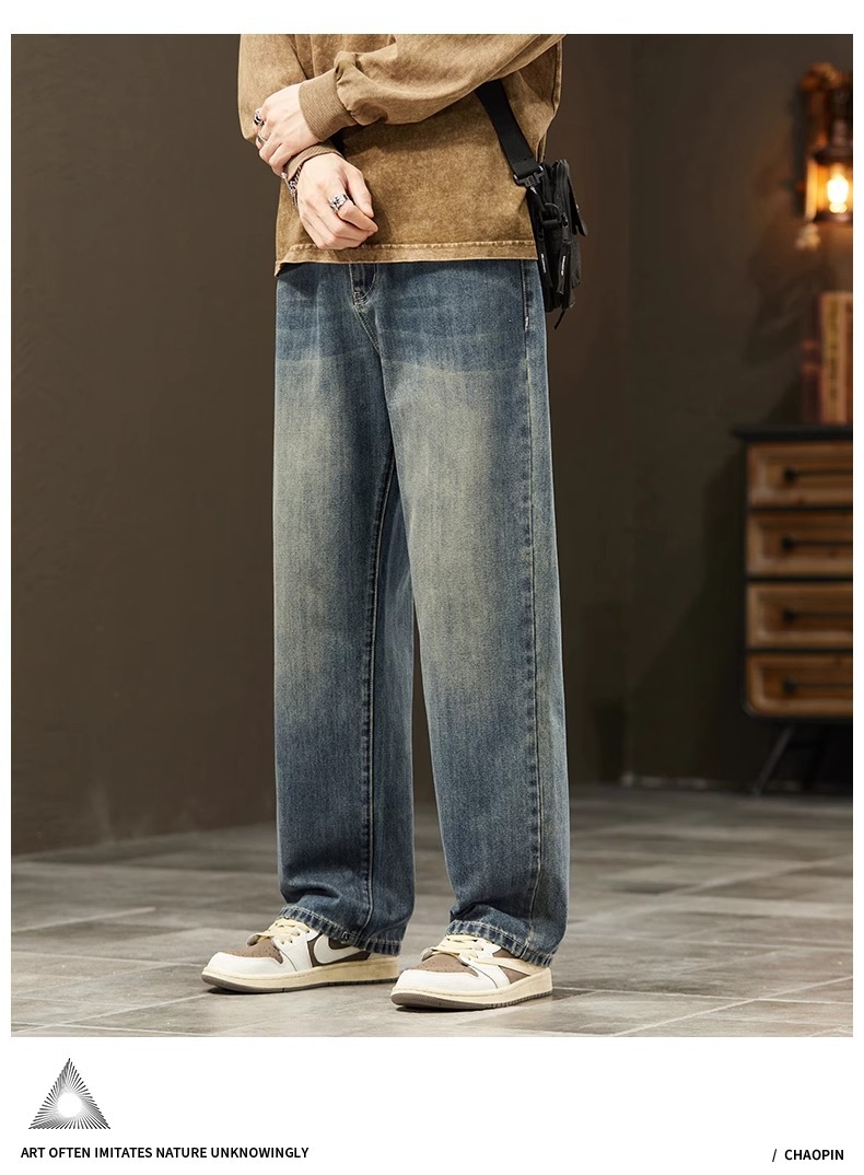 2025新款阔腿牛仔裤男春秋季潮牌宽松直筒男士美式复古休闲长裤子