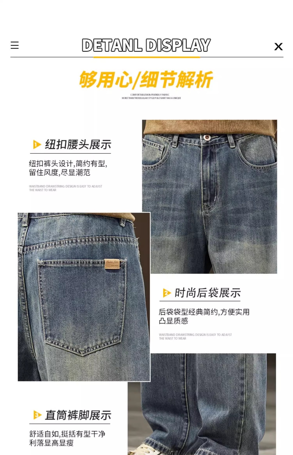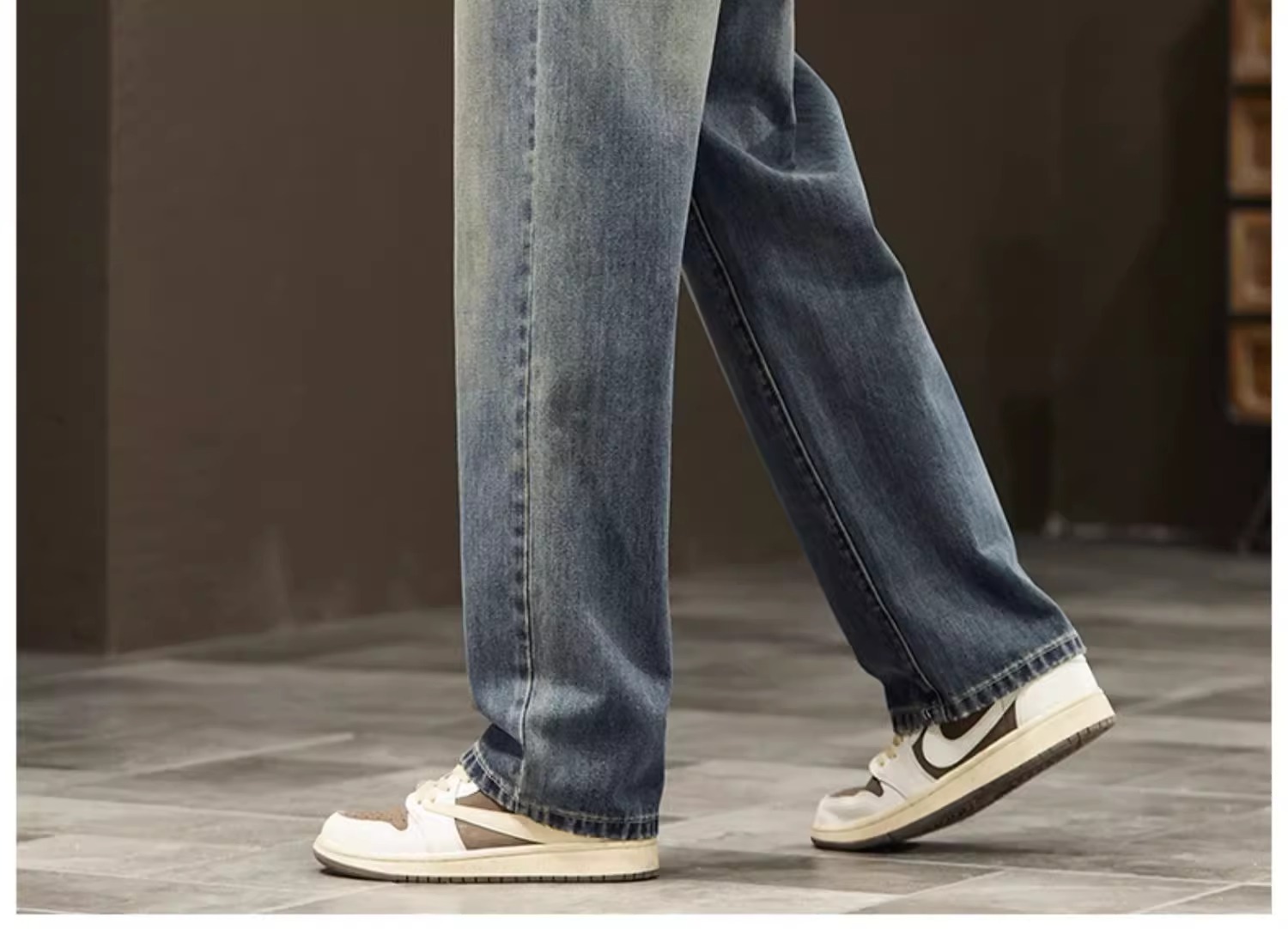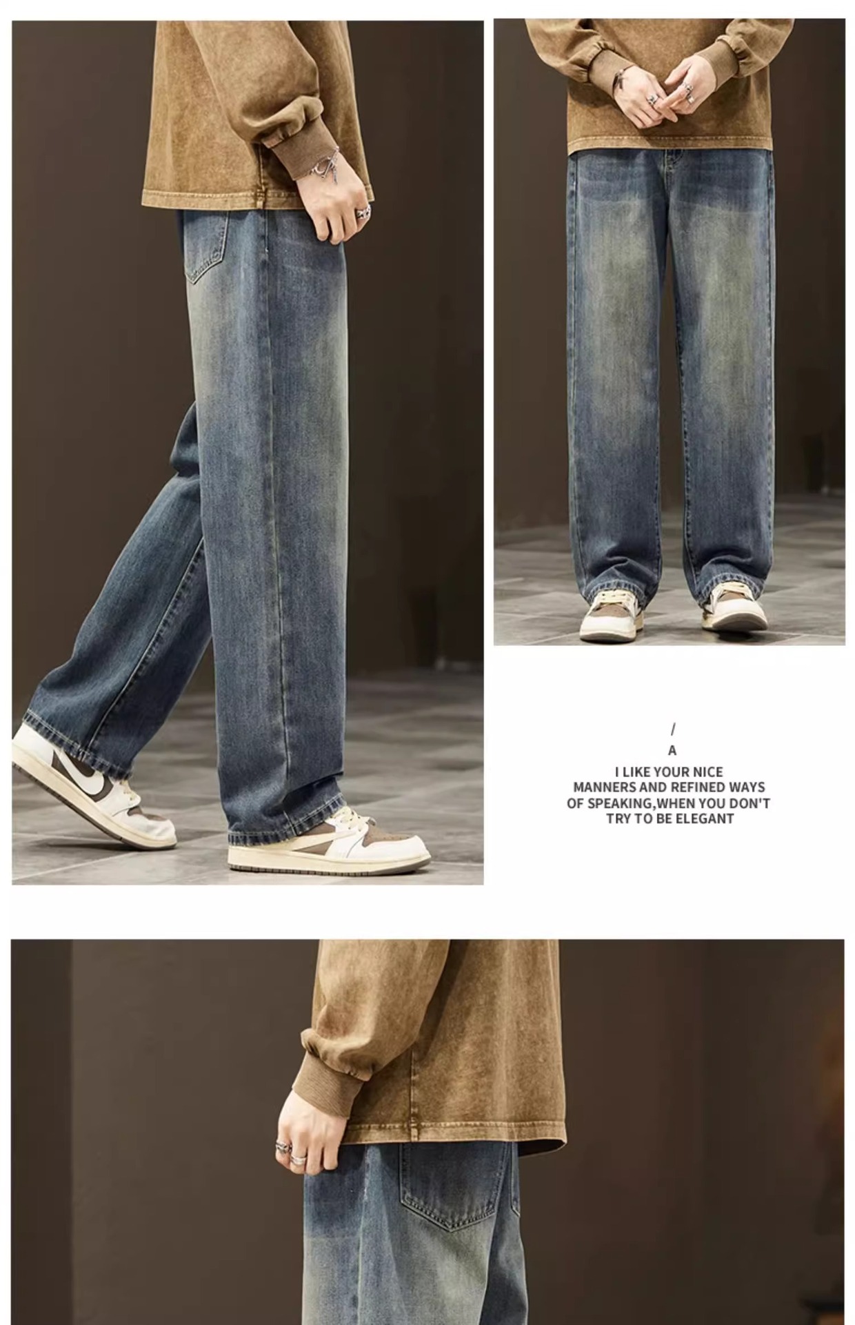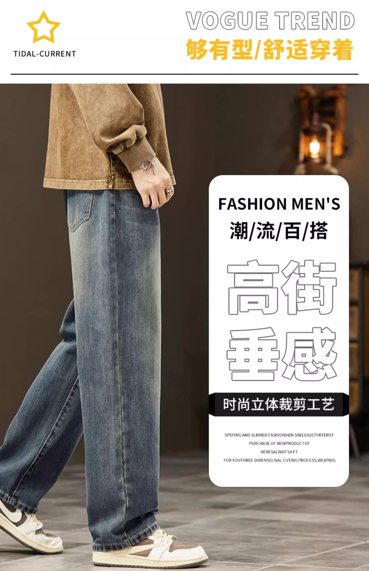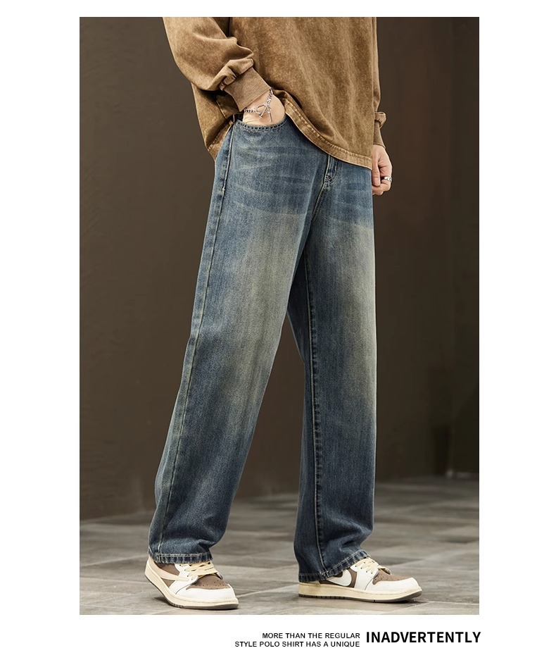 2025新款阔腿牛仔裤男春秋季潮牌宽松直筒男士美式复古休闲长裤子