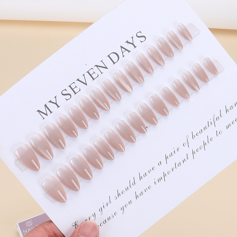 穿戴甲杏仁甲片裸肤冰透猫眼手工美甲片高级感可拆卸指甲贴片30片