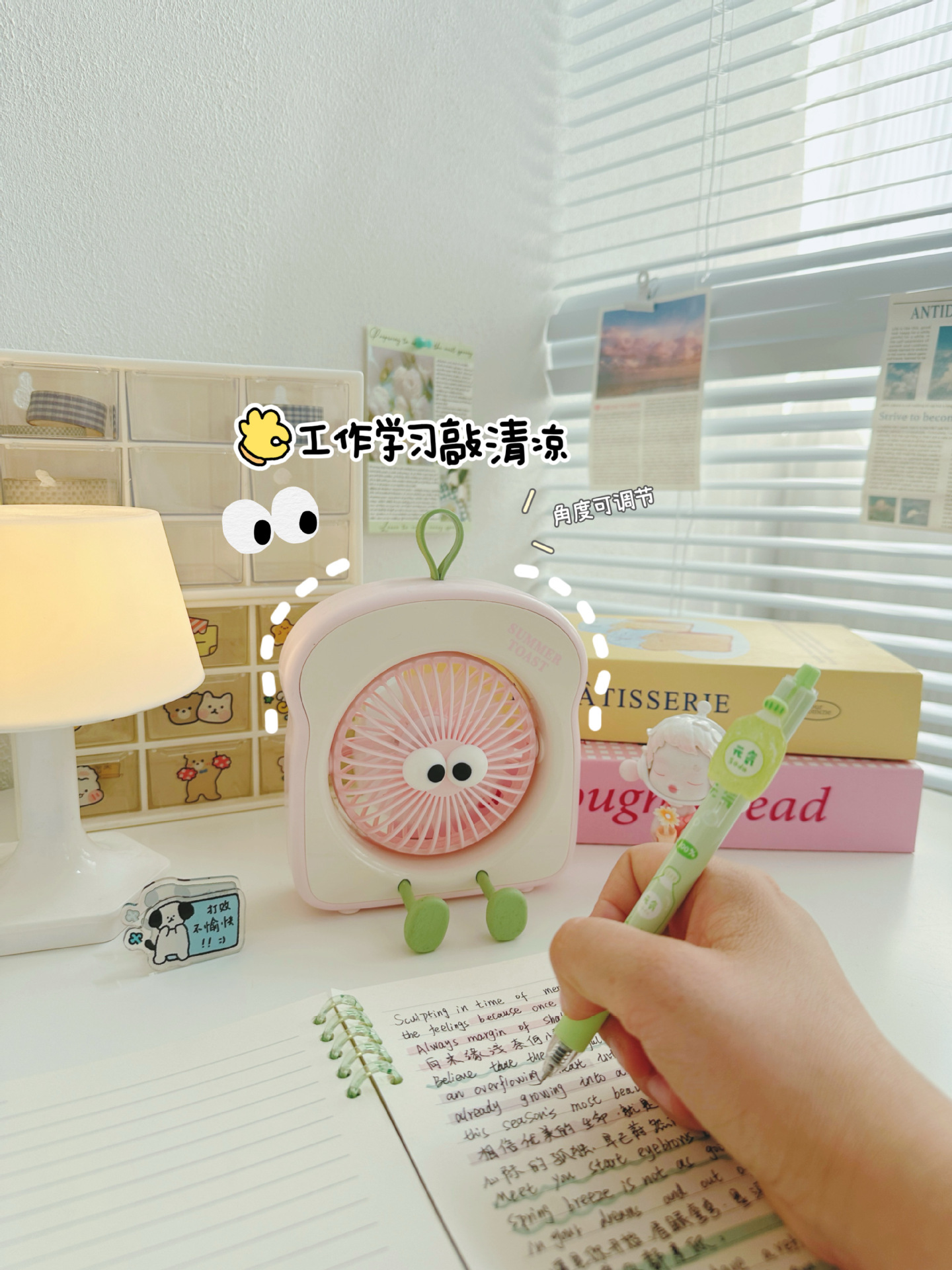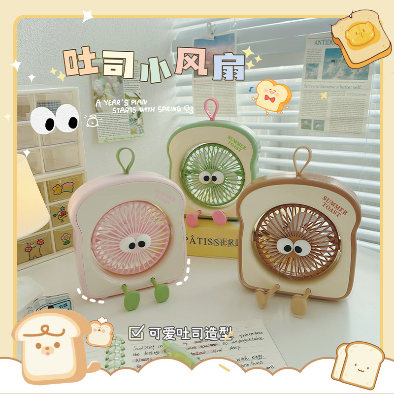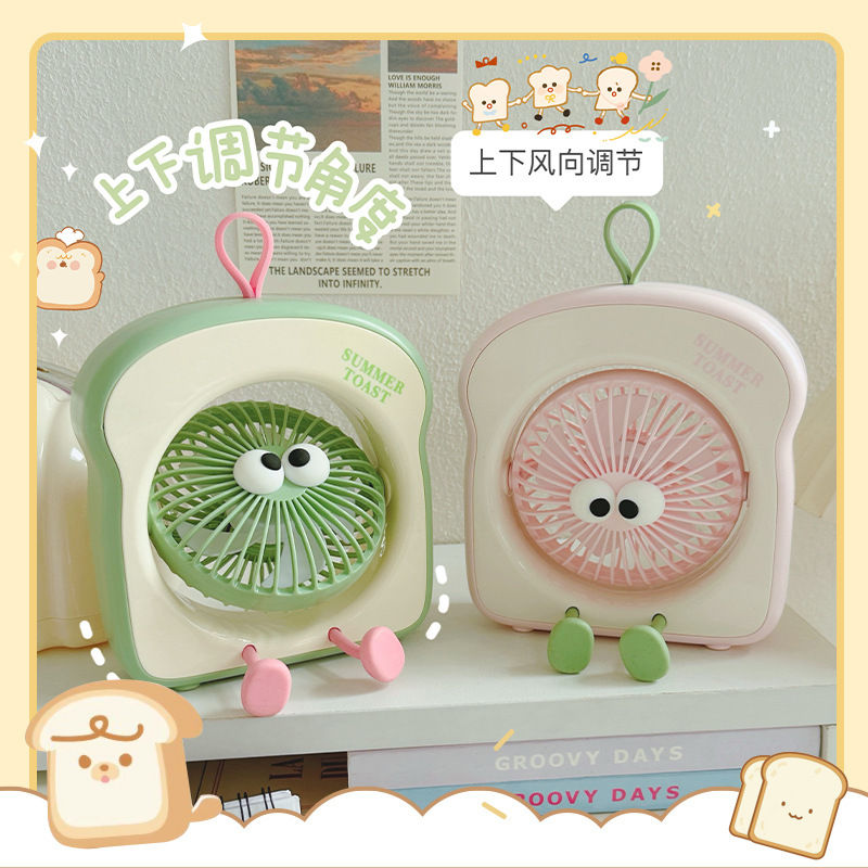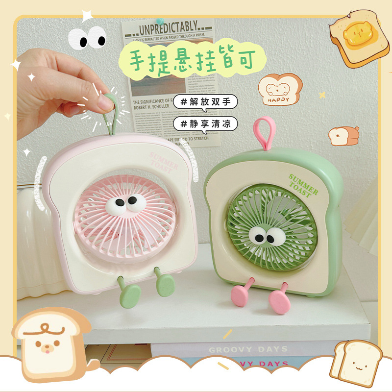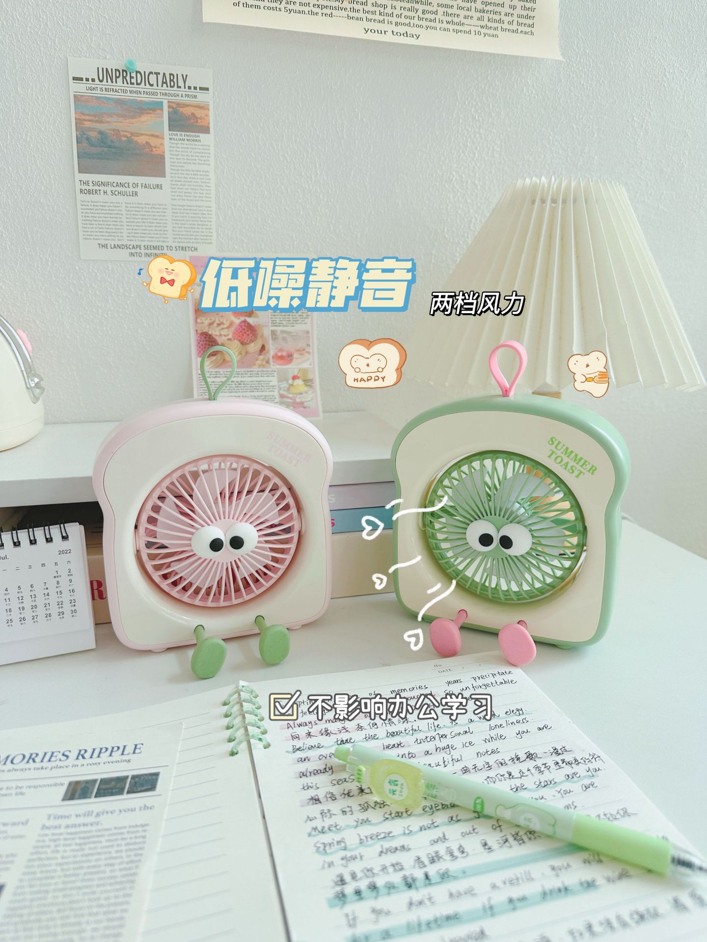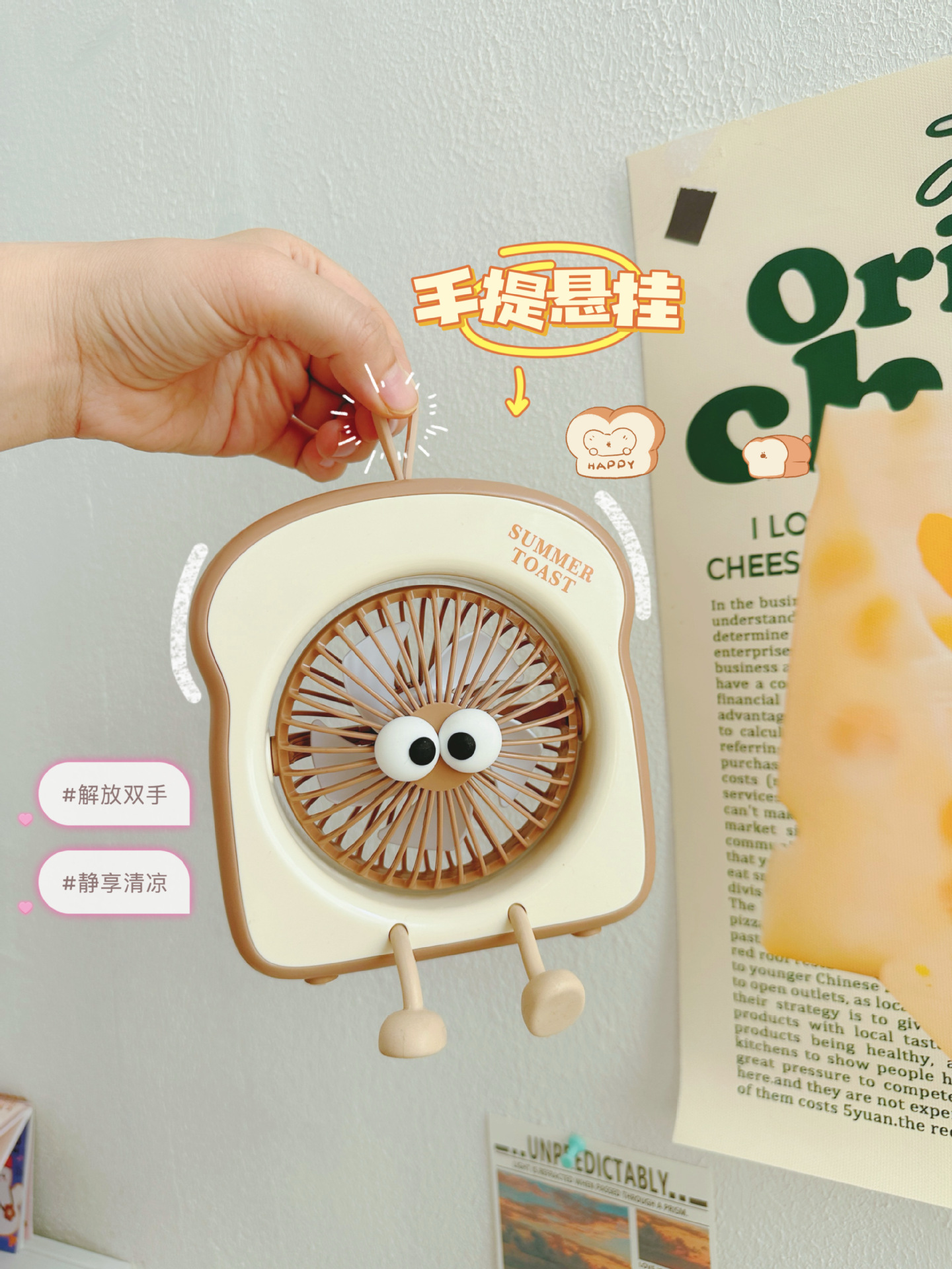 吐司面包可爱桌面风扇usb充电迷你便携式桌面小风扇2档充电电风扇