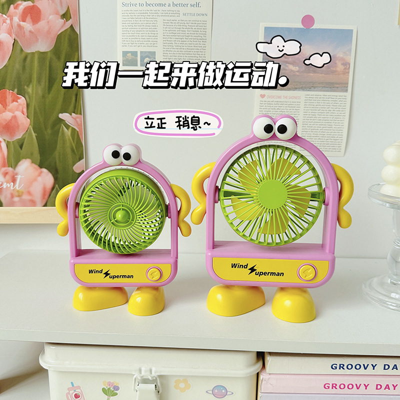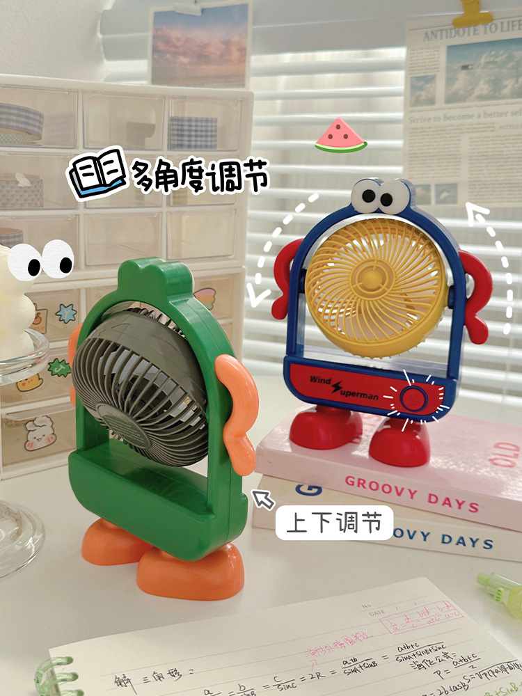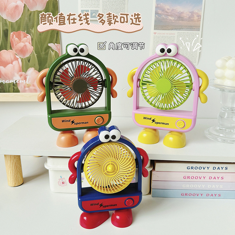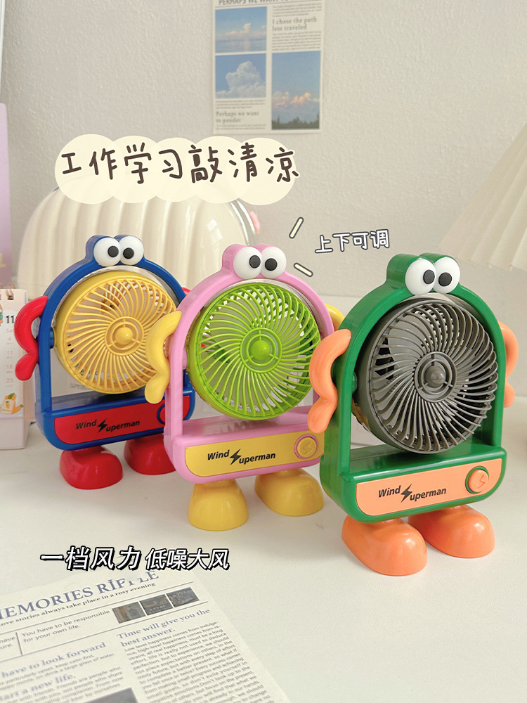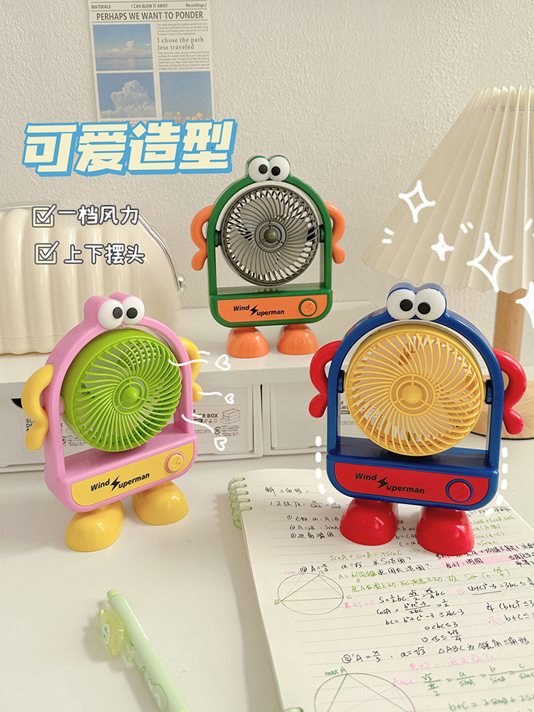 小号大眼怪兽小风扇 卡通USB充电台式风扇夏季户外随身便携电风扇