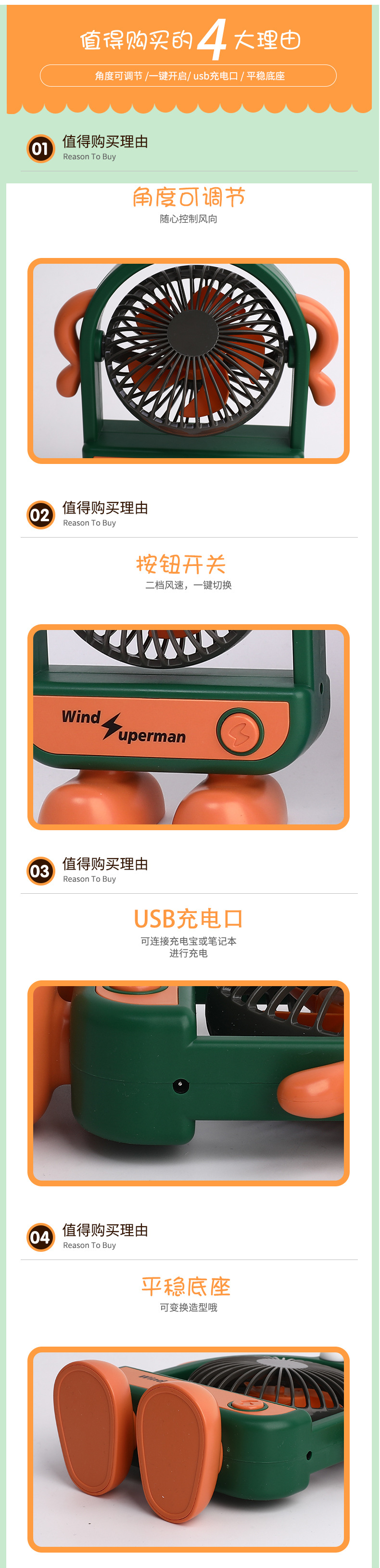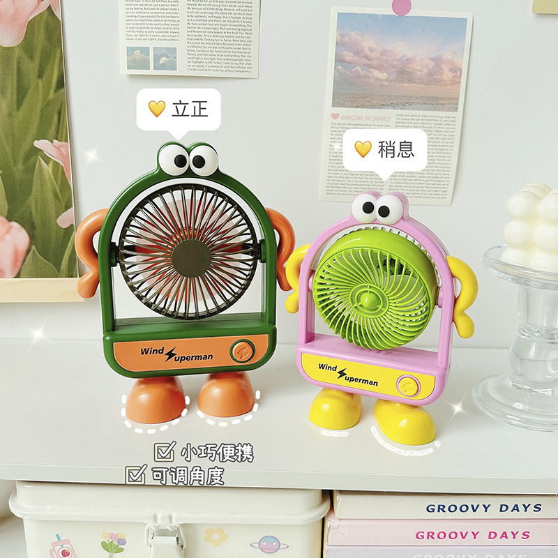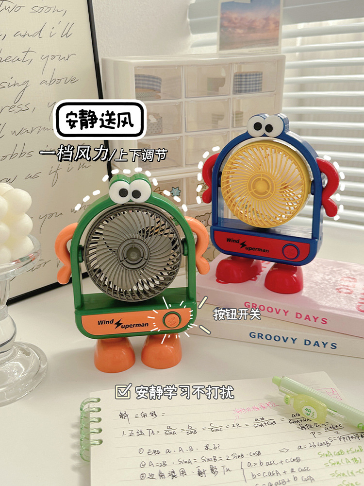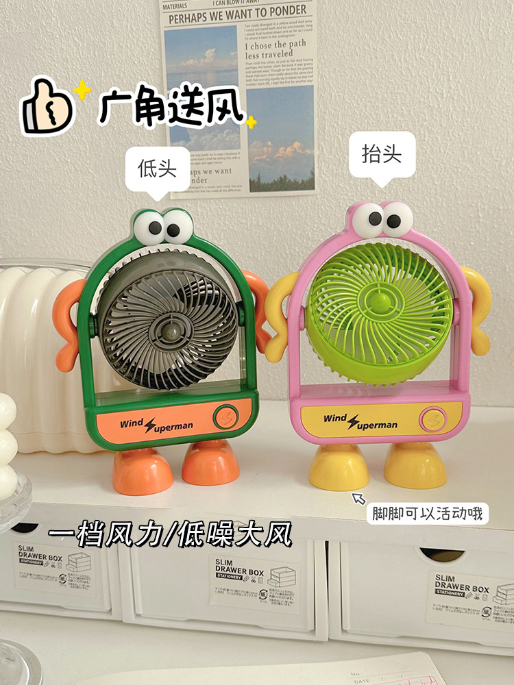 小号大眼怪兽小风扇 卡通USB充电台式风扇夏季户外随身便携电风扇