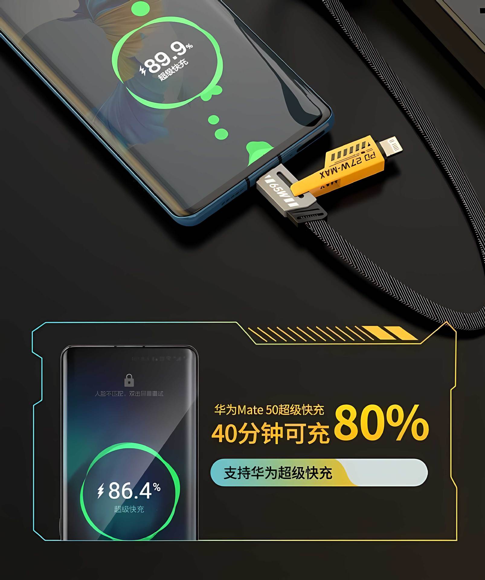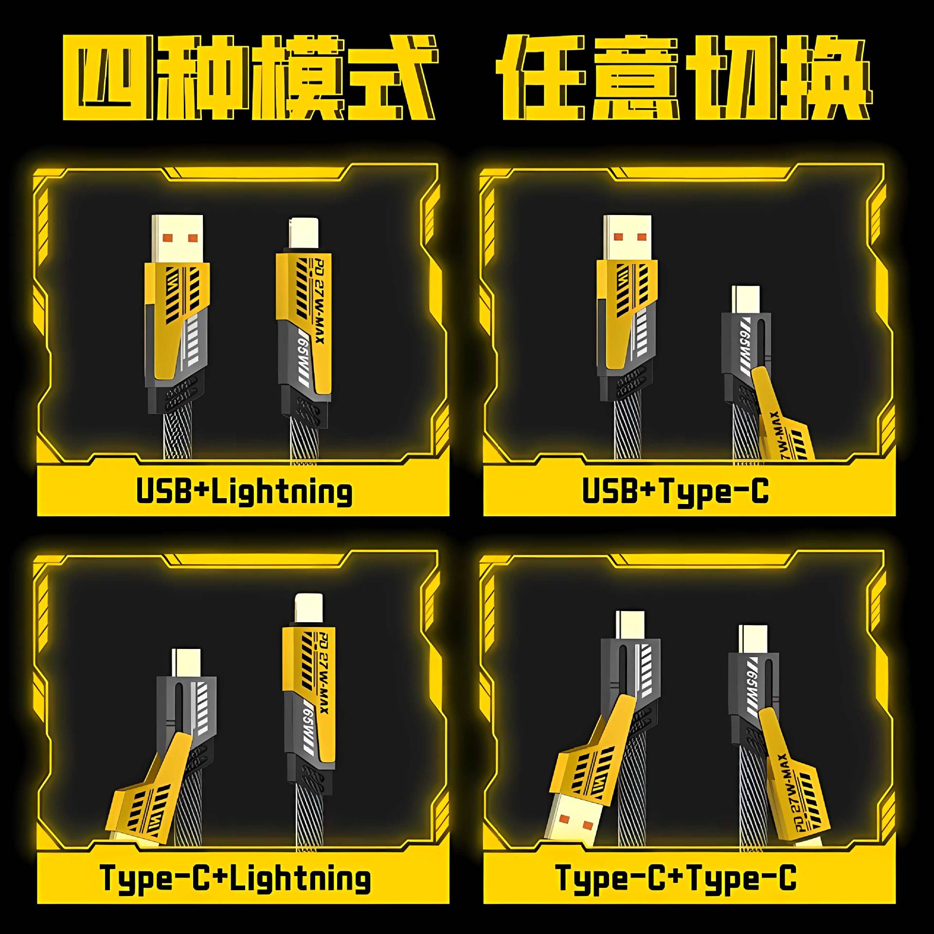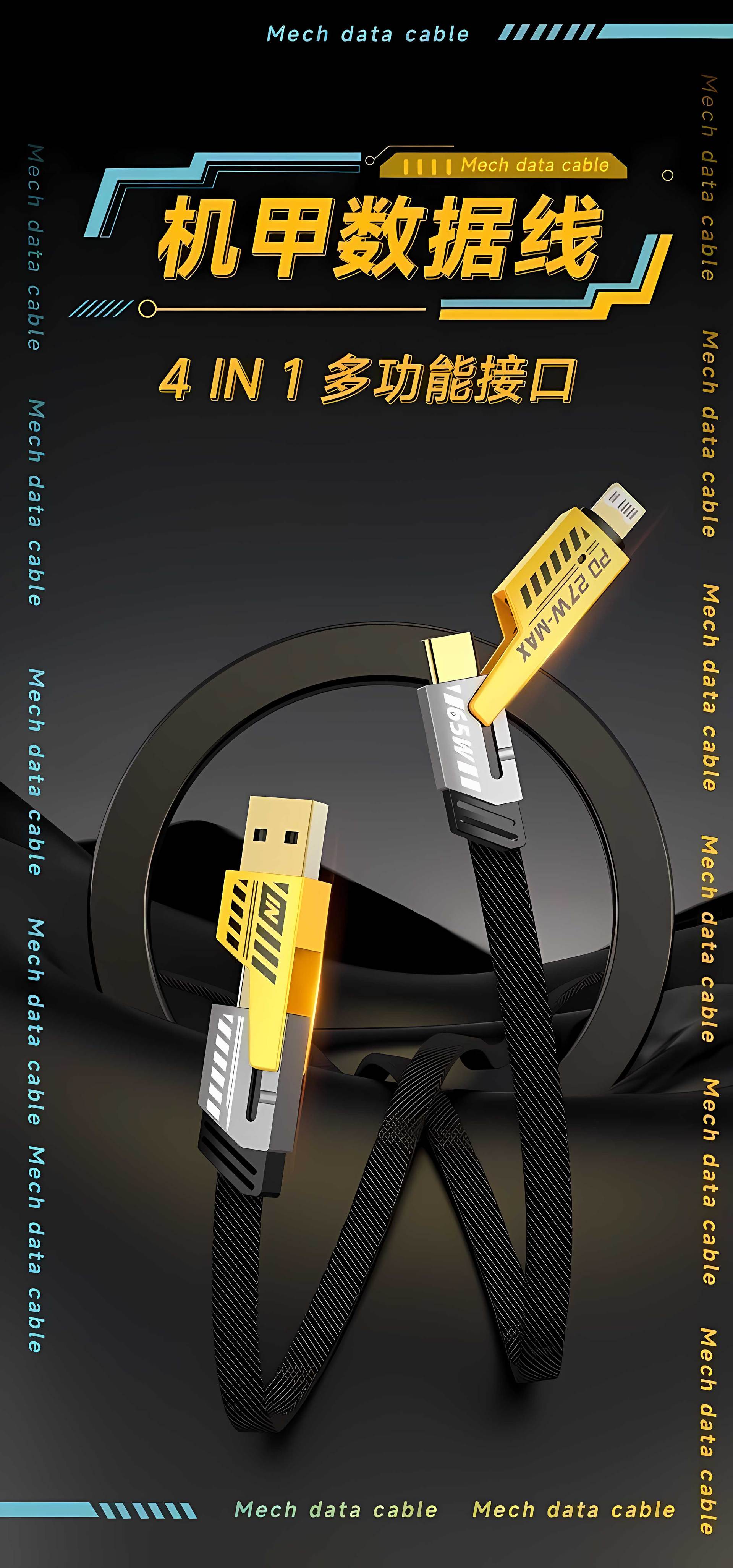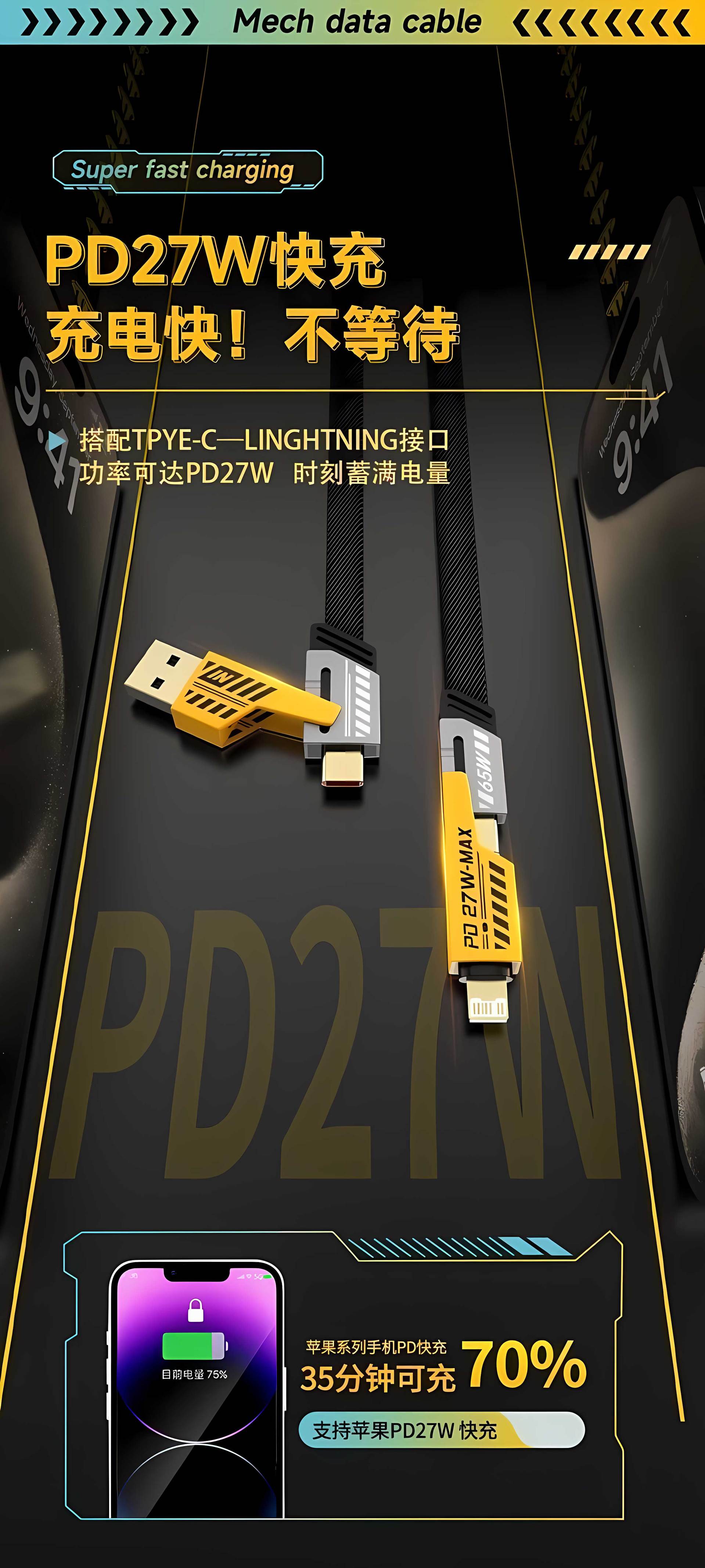 锌合金电竞机甲数据线四合一超级快充PD27W超充双type-c65W快充线