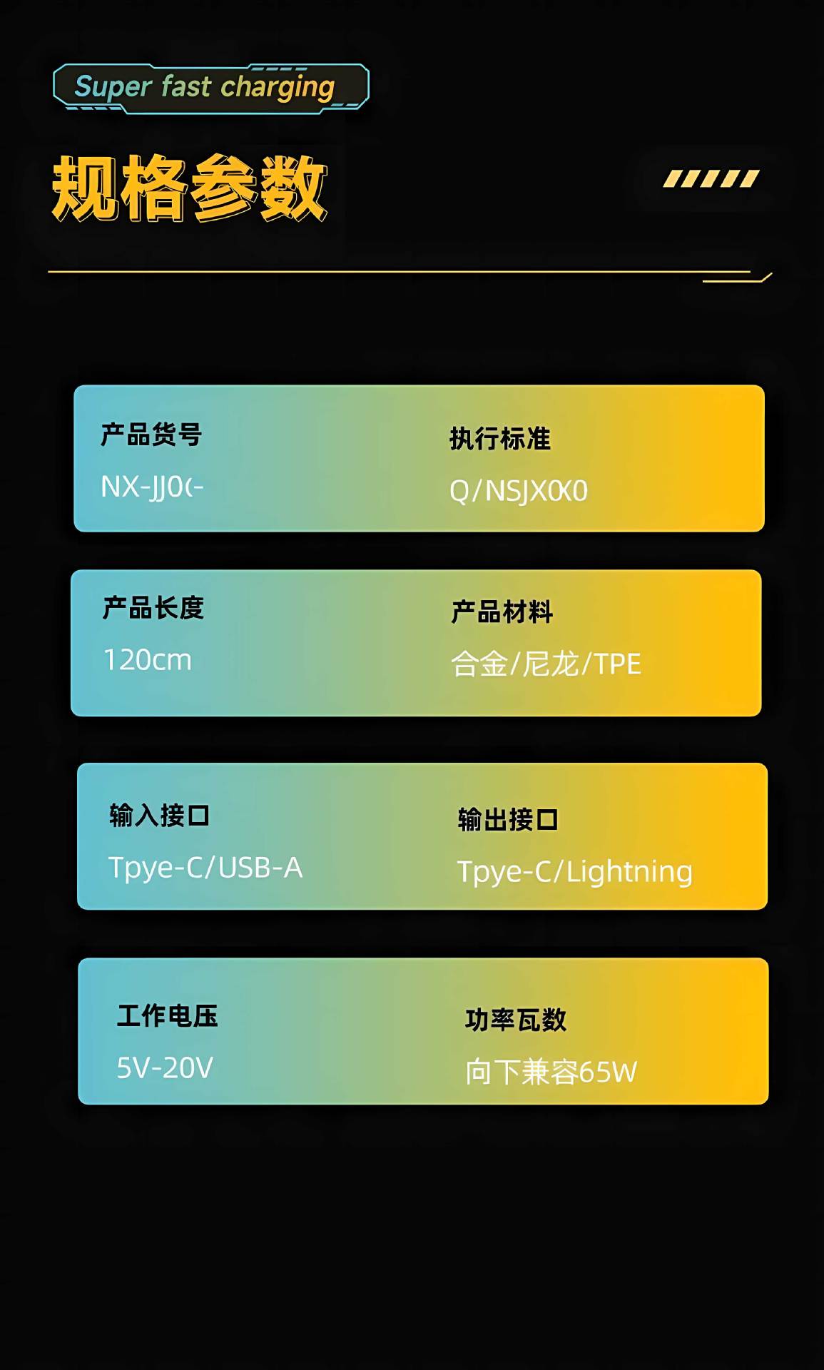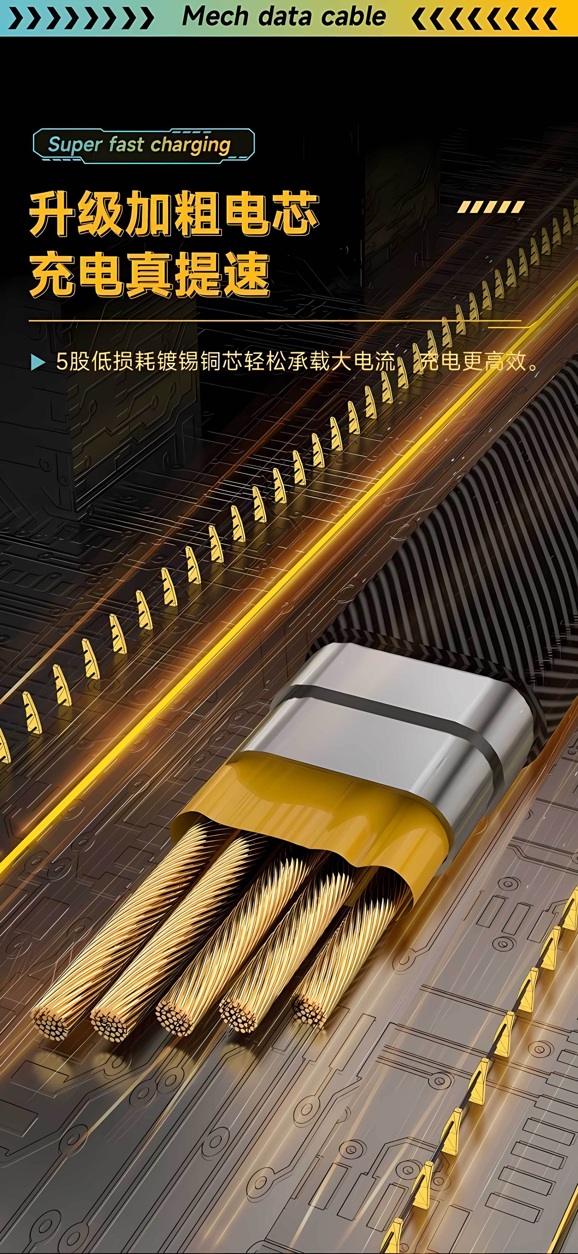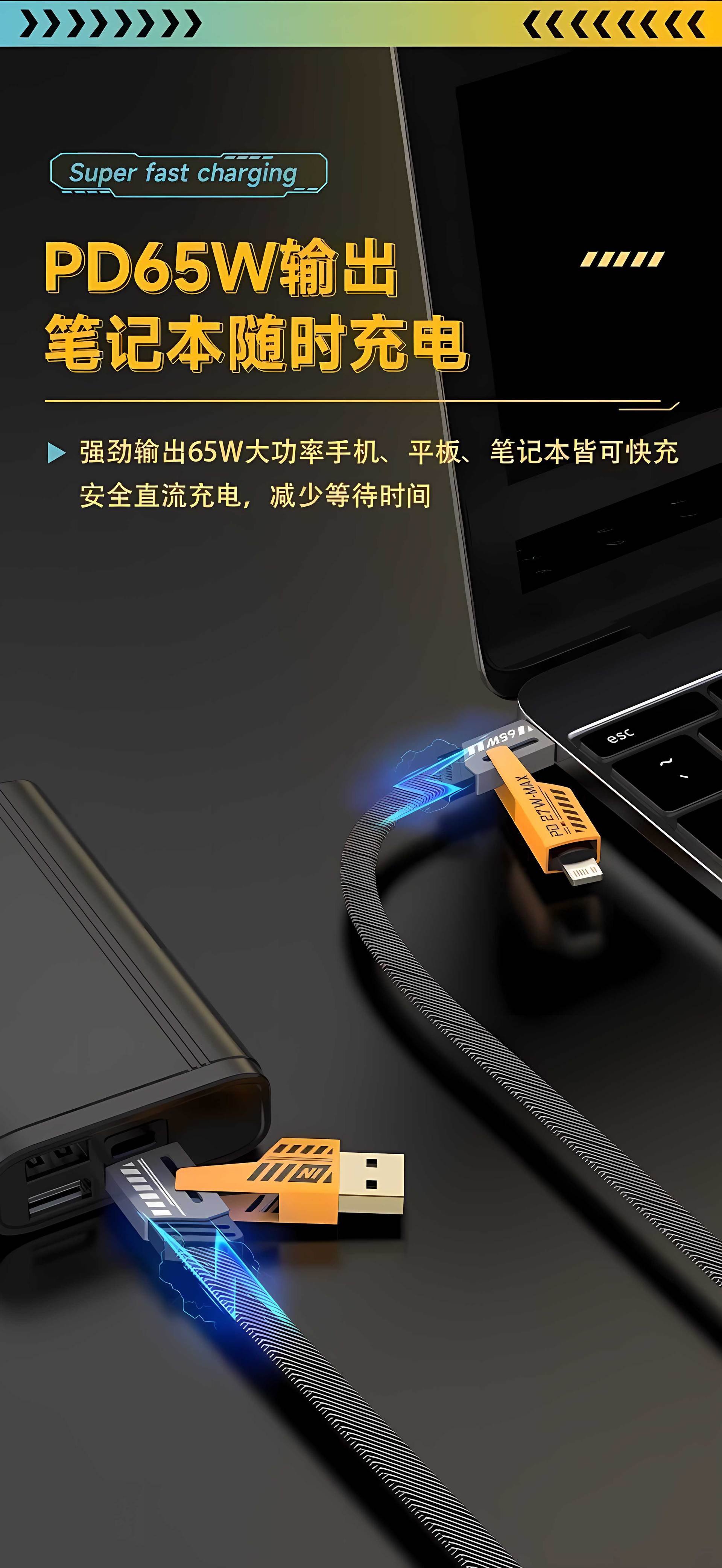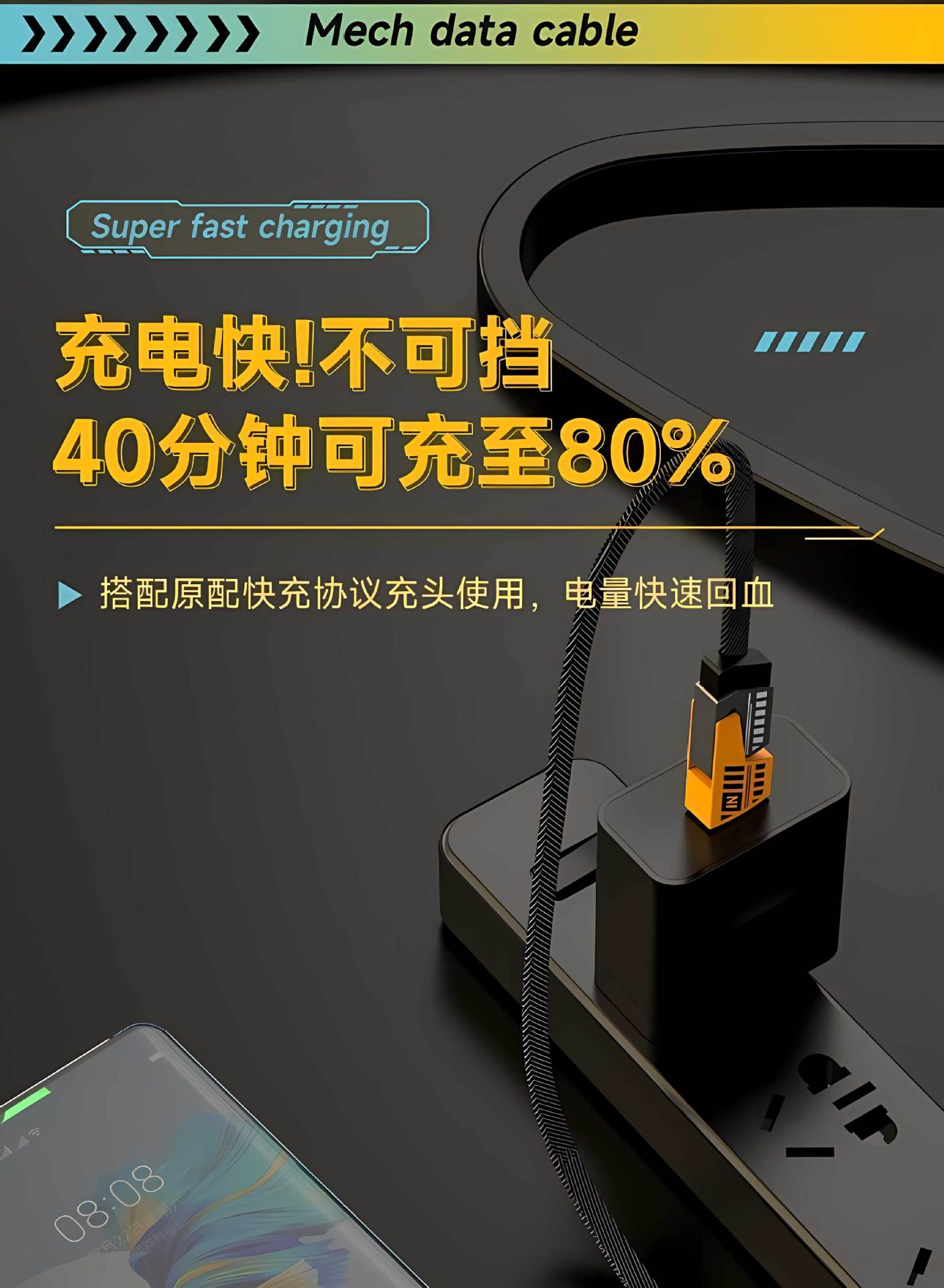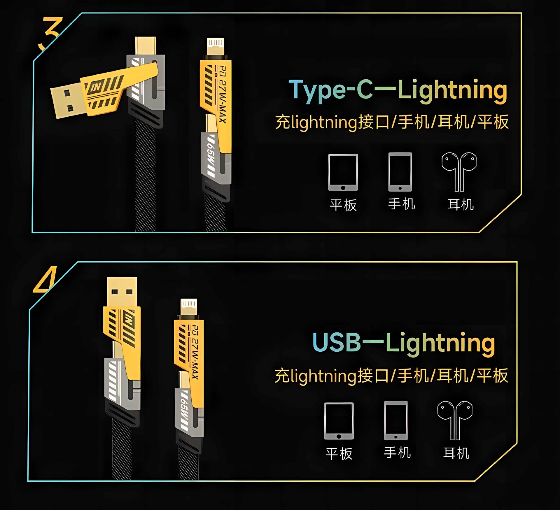 锌合金电竞机甲数据线四合一超级快充PD27W超充双type-c65W快充线