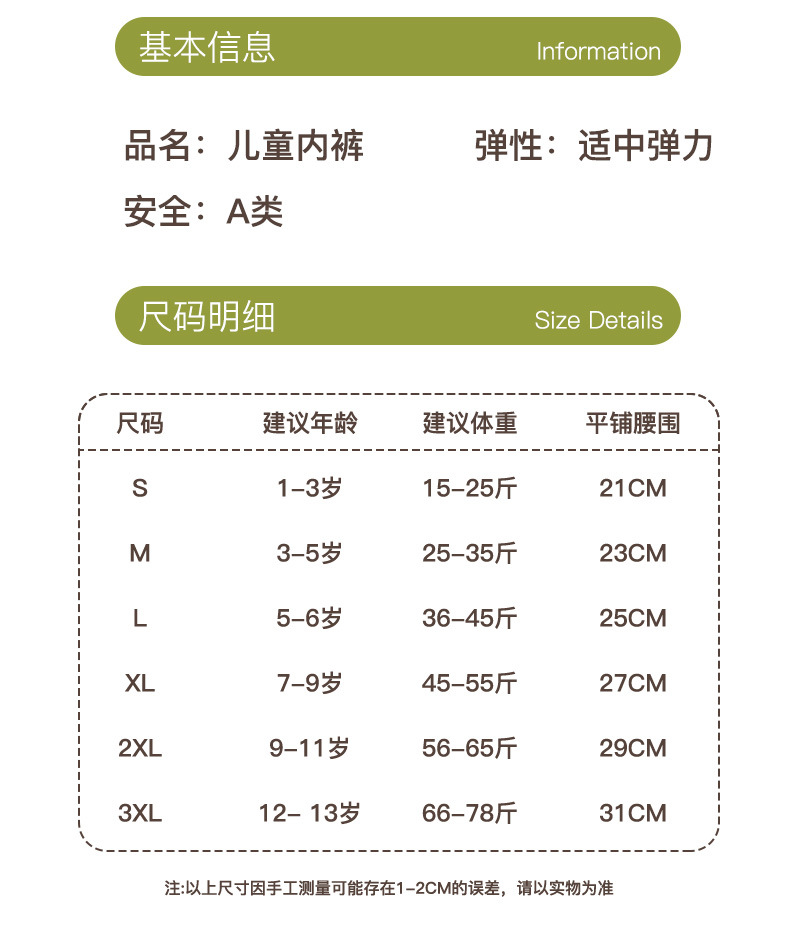 | 3 size xl 13-14 years old 35.00 kg-42.50 kg(3XL码13-14岁70-85斤) | USD $1.0 | 19886 piece available |