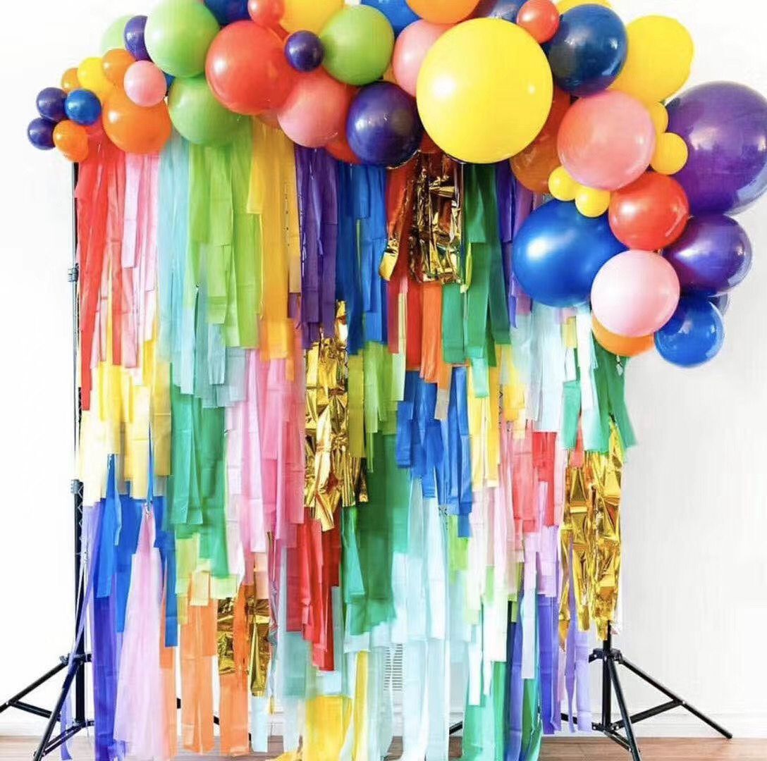创意皱纹纸拉花彩带婚礼派对Crepe paper场景布置背景墙装饰25米
