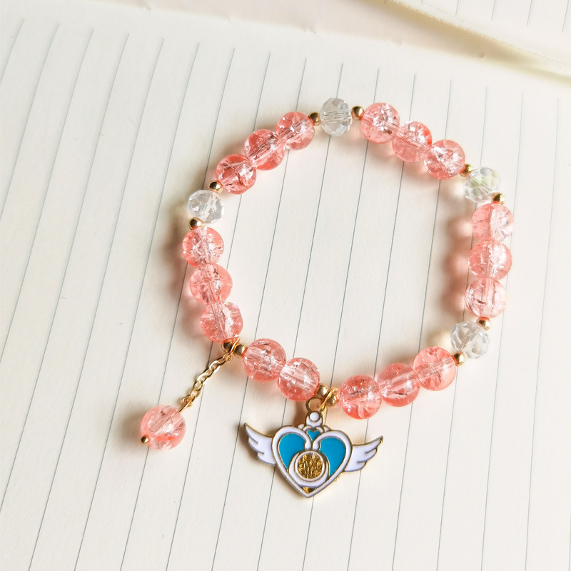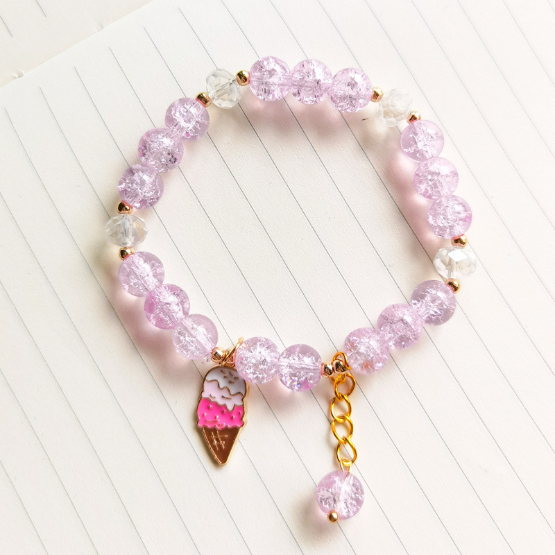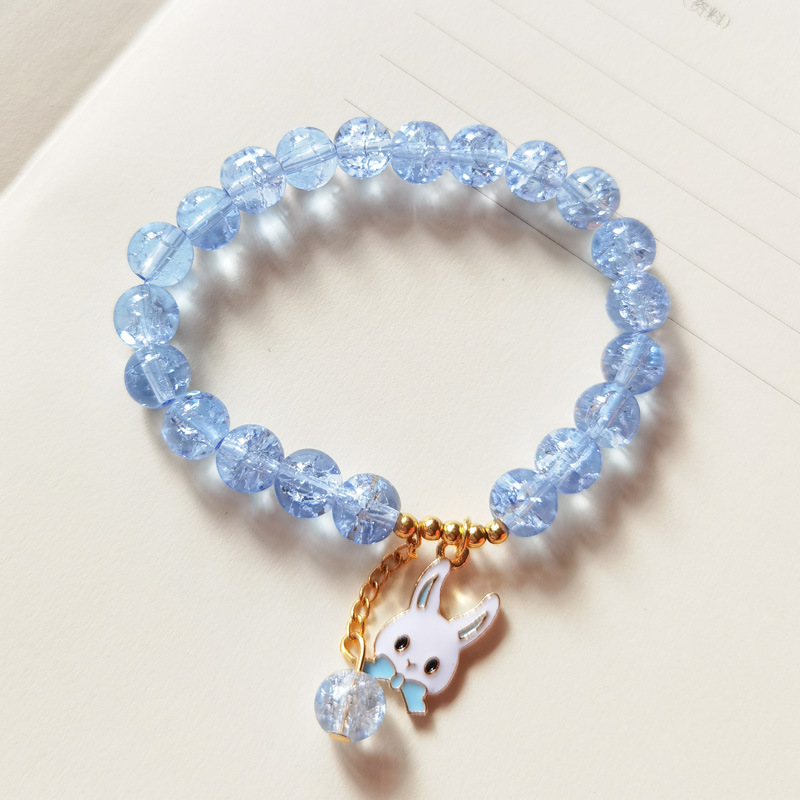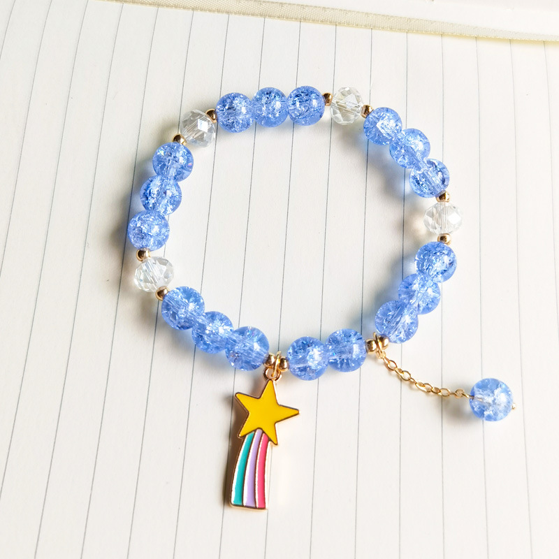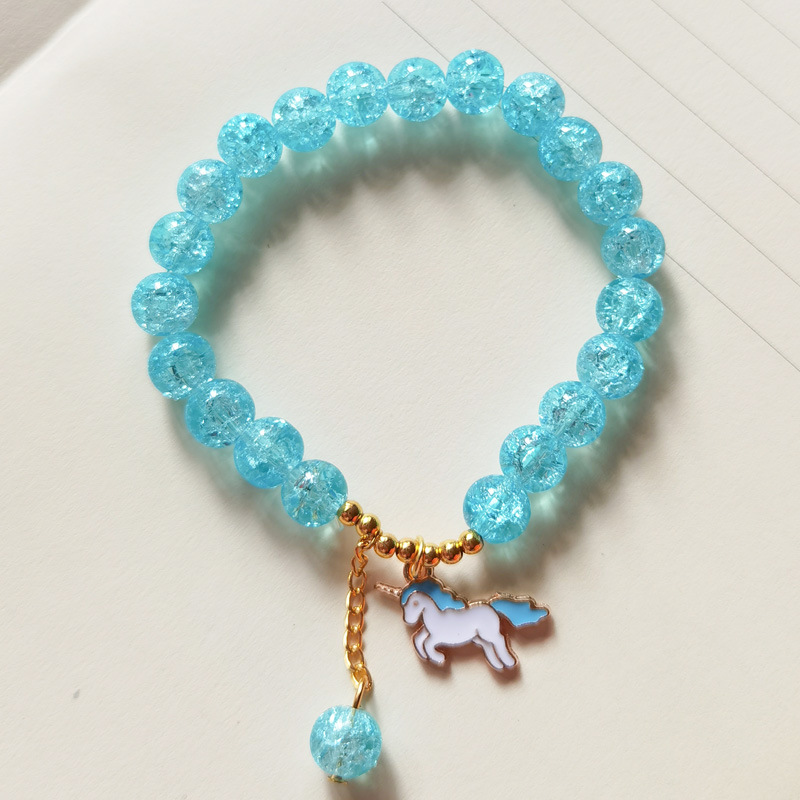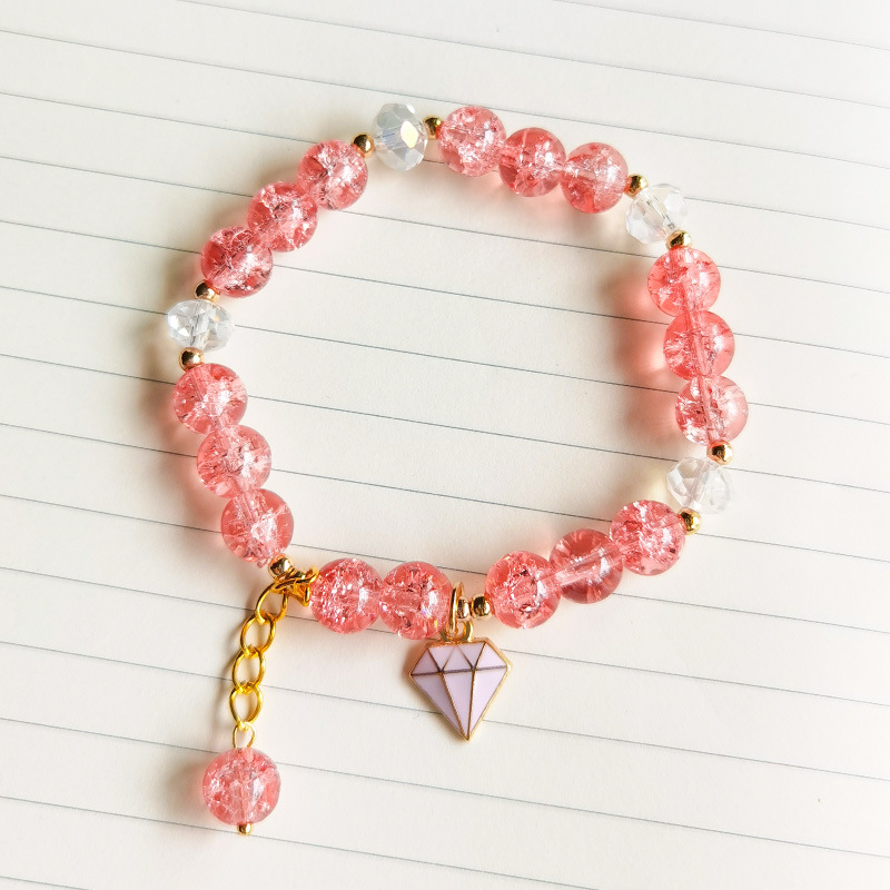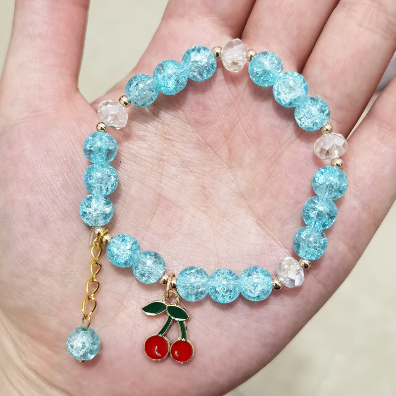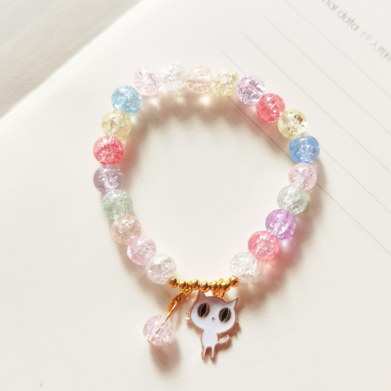春夏新款爆花晶手链女多吊坠小清新闺蜜8mm彩色裂纹琉璃水晶手串