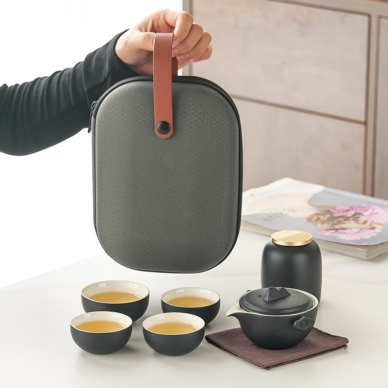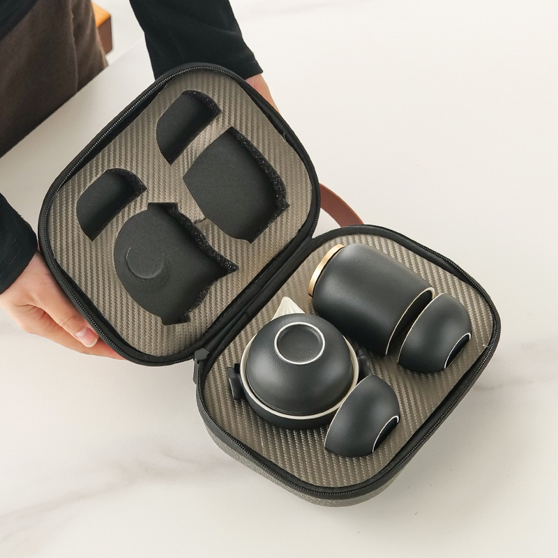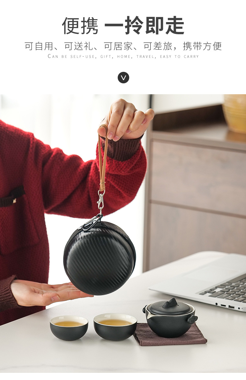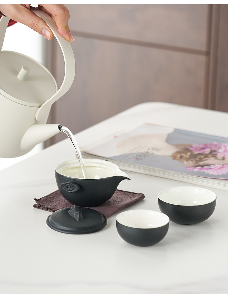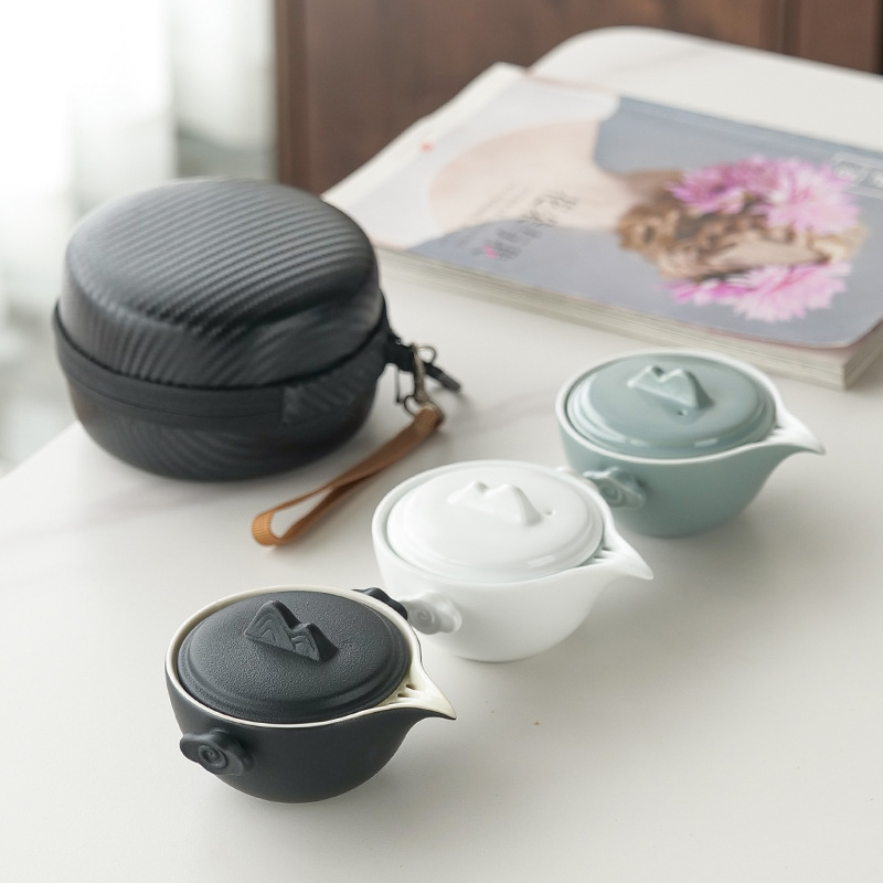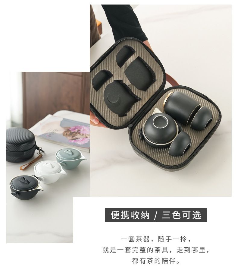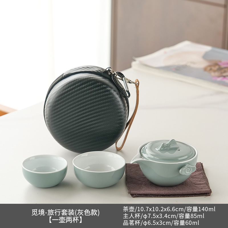 简约一壶二杯便携旅行茶具套装陶瓷快客杯户外功夫泡茶壶礼品批发