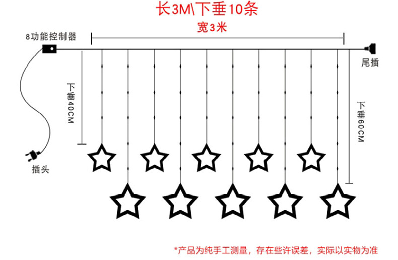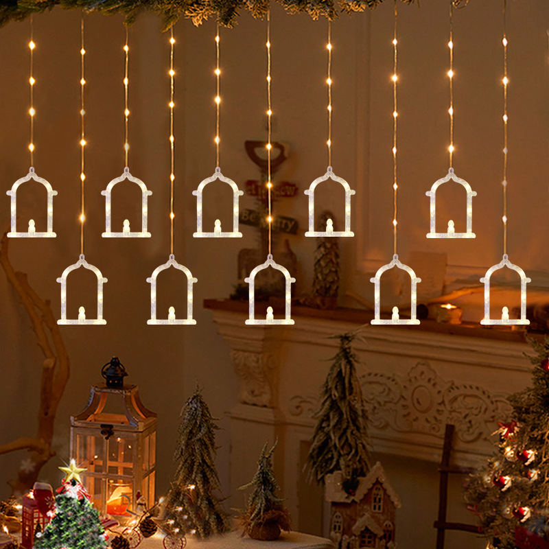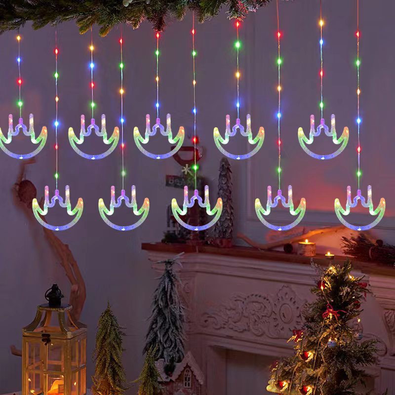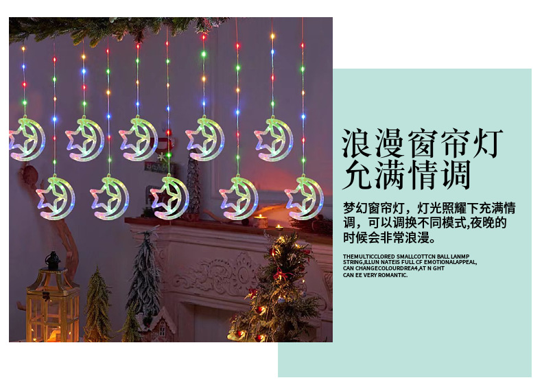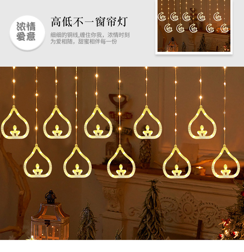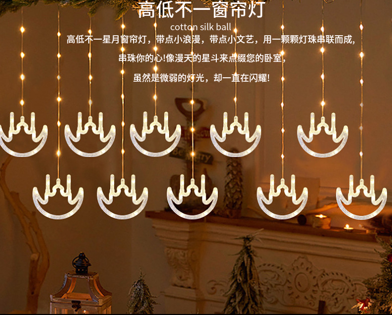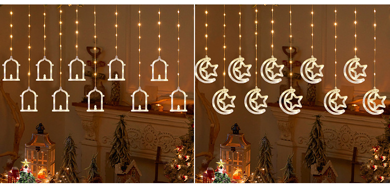 跨境新款穆斯林印度排灯节led皮线窗帘灯节日装饰氛围月亮城堡灯
