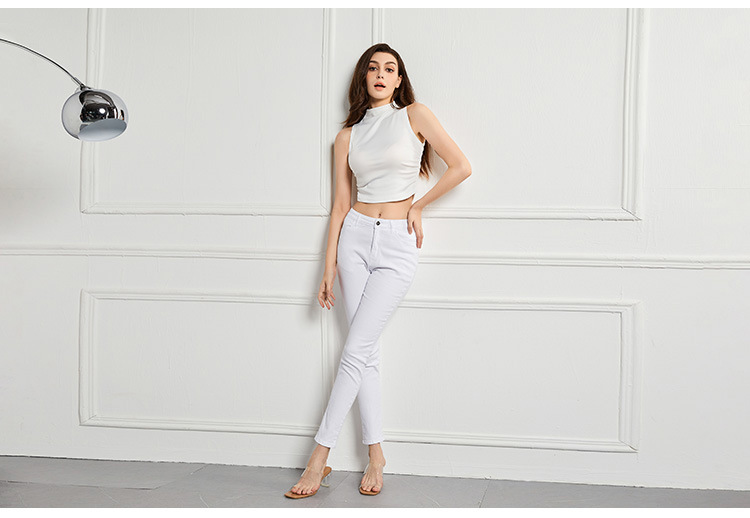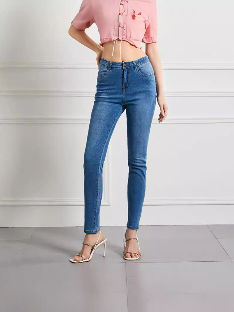 2025跨境女士牛仔裤修身高腰高弹力欧美小脚长裤大码女装裤子基本