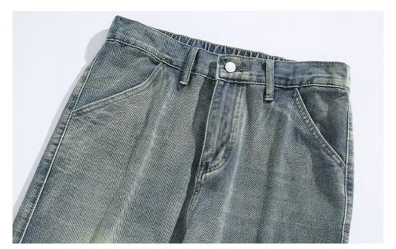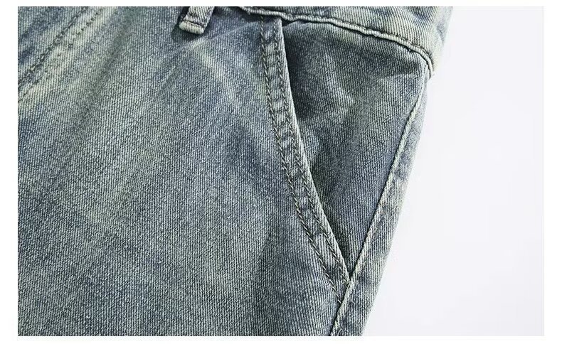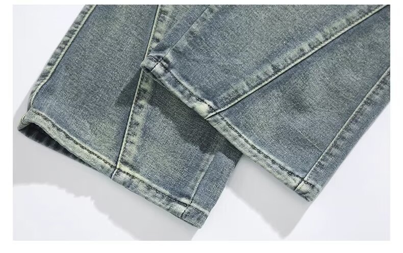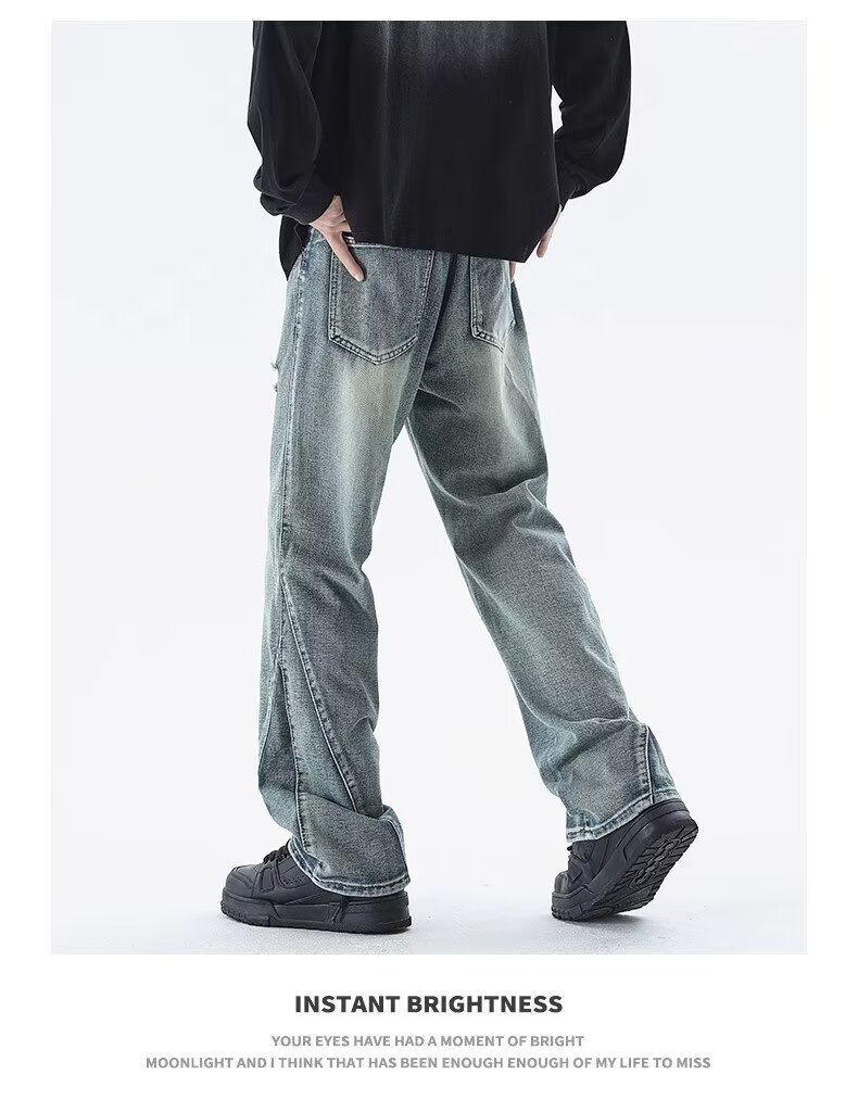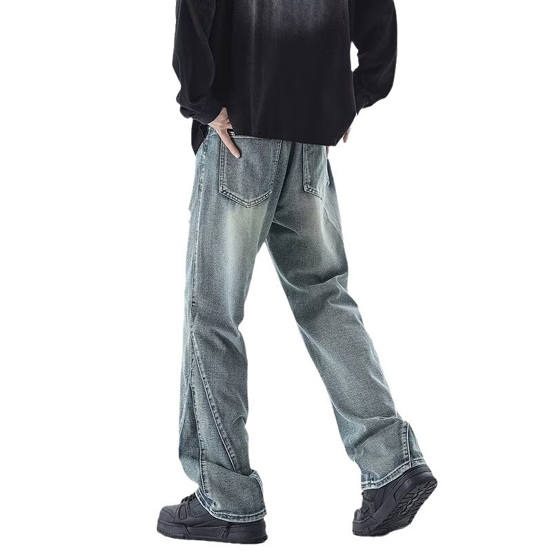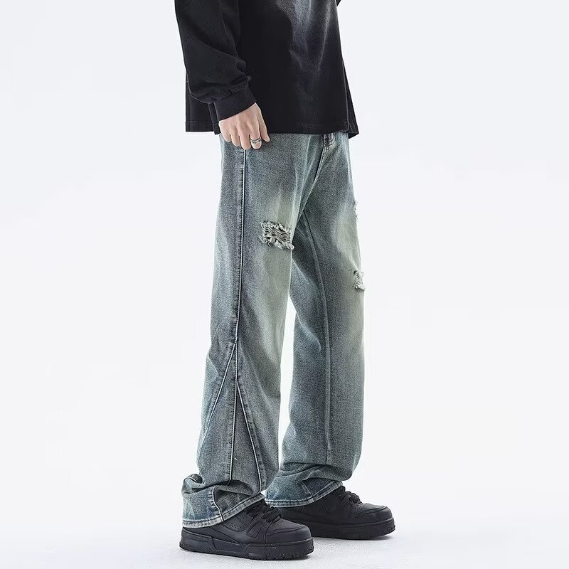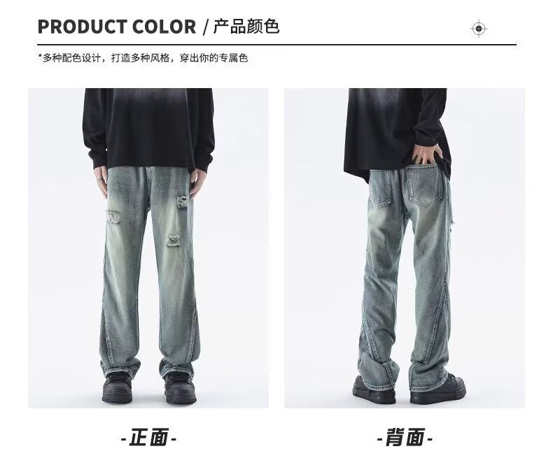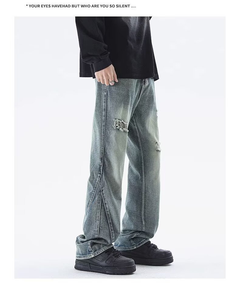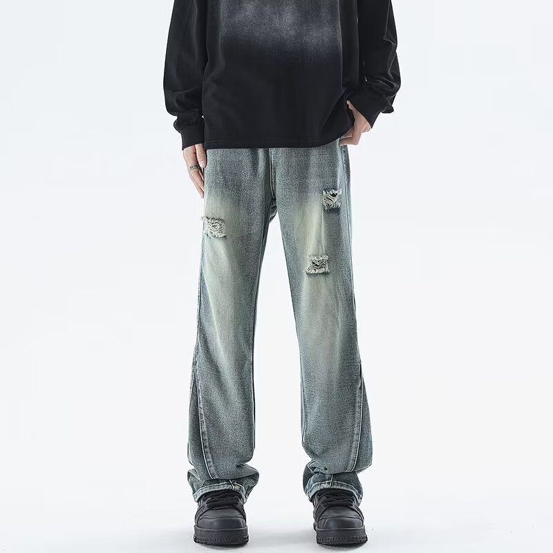 美式破洞牛仔裤男春季水洗做旧微喇阔腿裤春秋款宽松直筒高街长裤