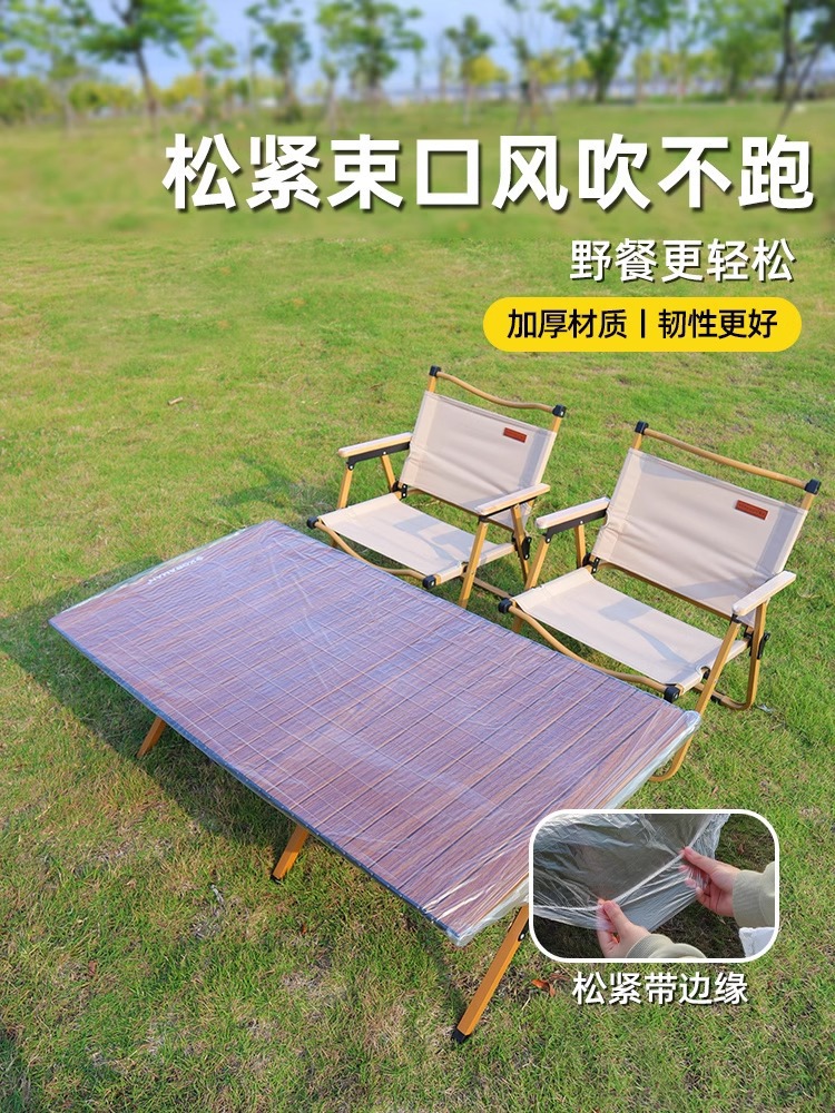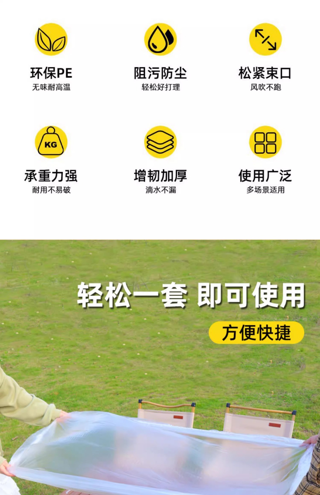 一次性野餐桌布野炊聚餐户外露营束口松紧带加厚防水防油野营桌套