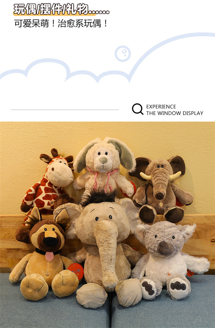 仿真森林动物公仔毛绒玩具狮子大象狗狗玩偶老虎兔子小鹿礼品批发