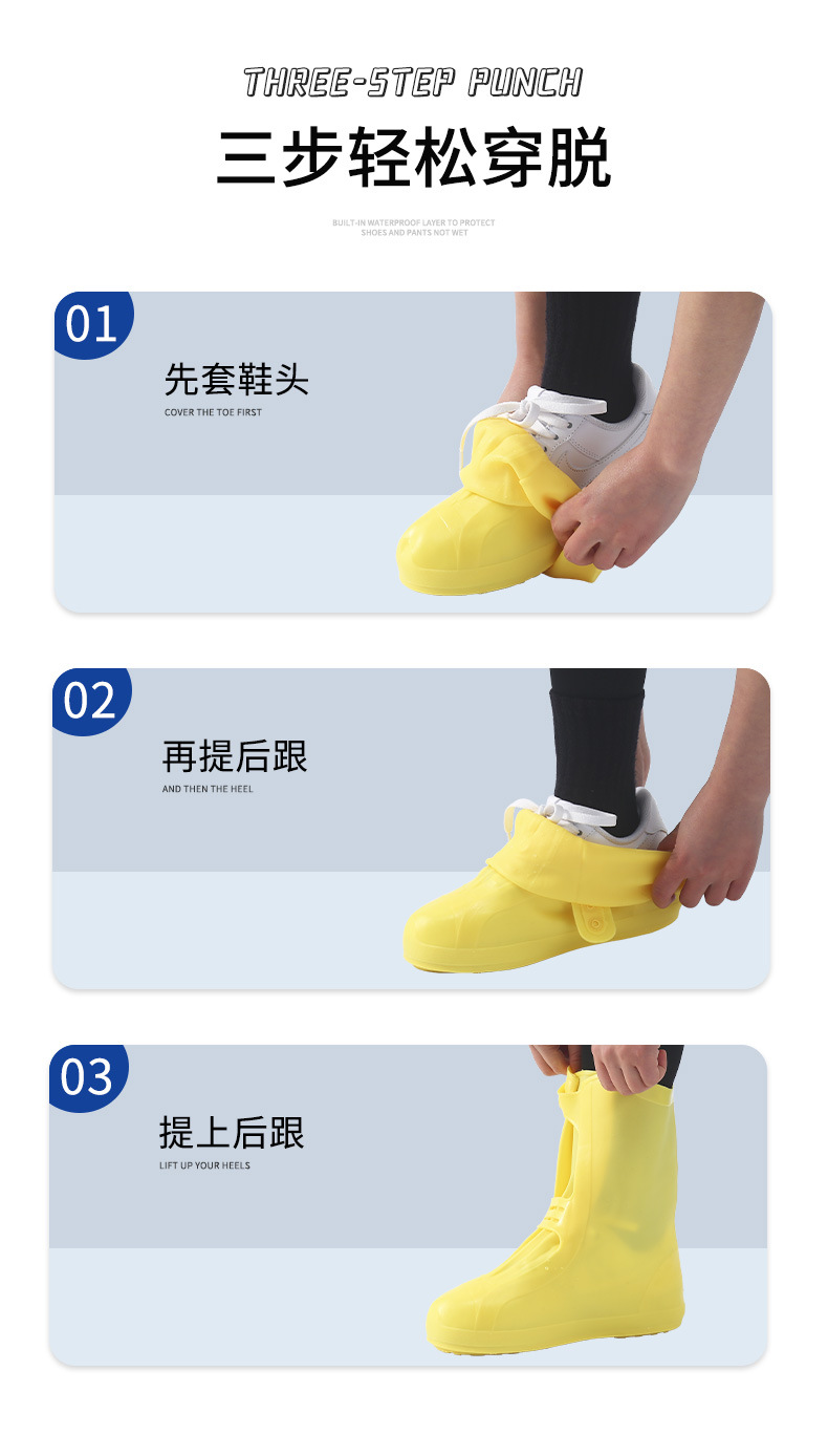 新款防水鞋套防滑防污加厚耐磨户外便携易穿脱成人儿童硅胶雨鞋套