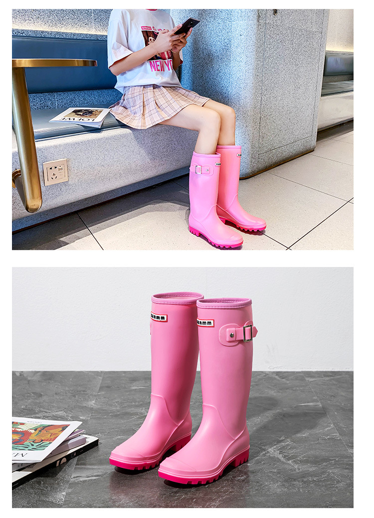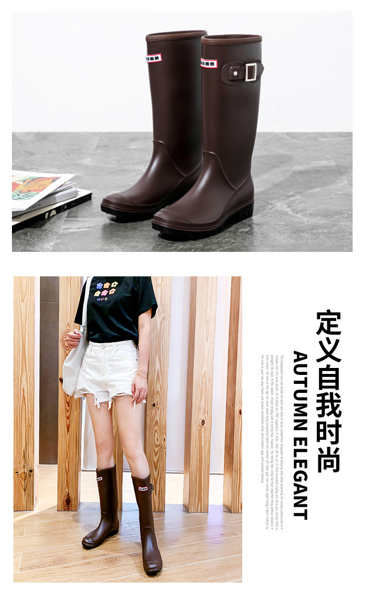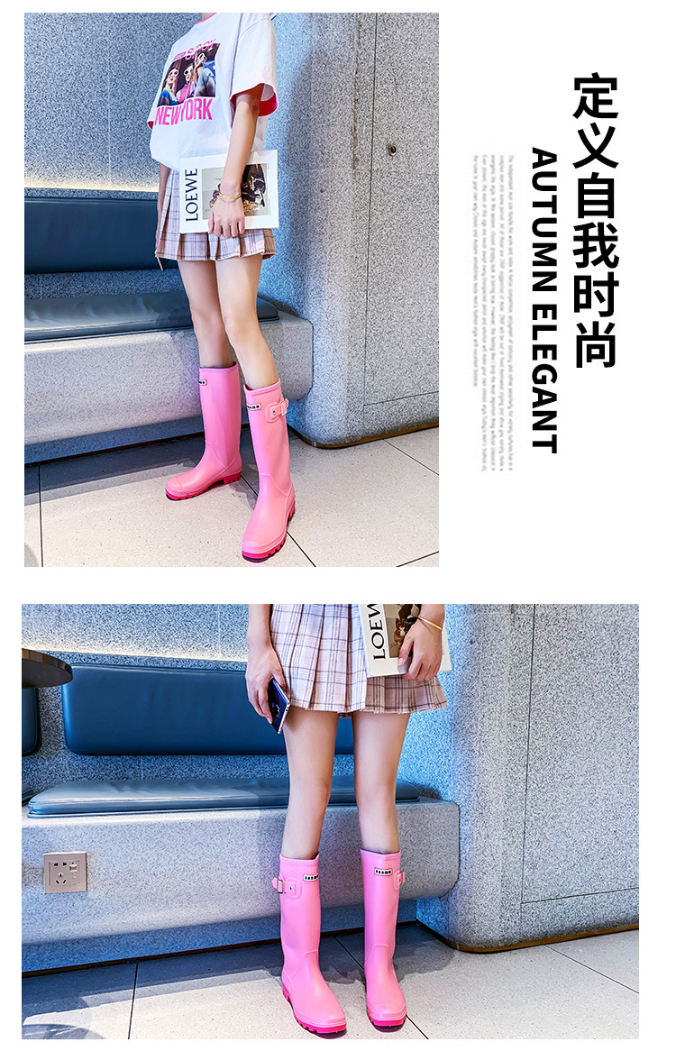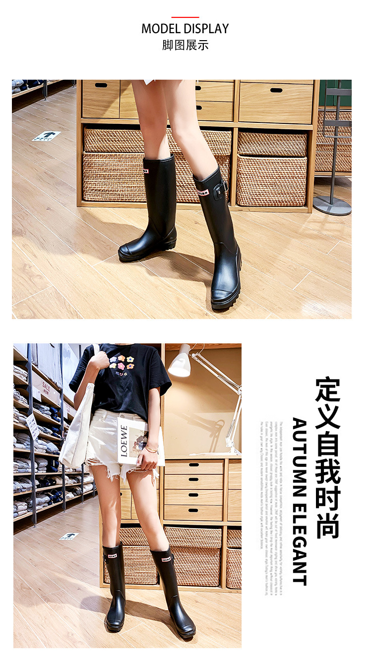 法式厚底时尚高筒女士雨鞋坡跟PVC雨靴柔软修身马靴长筒水鞋跨境