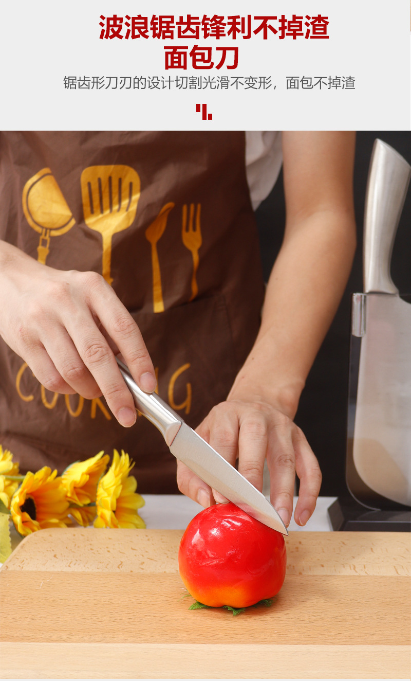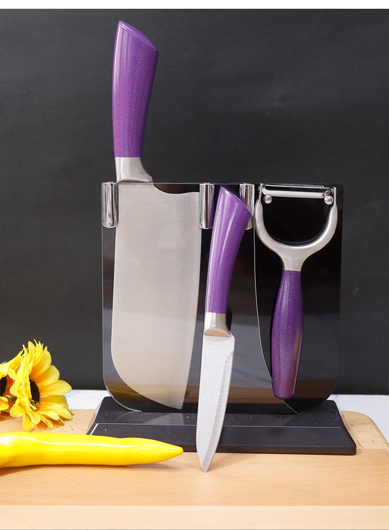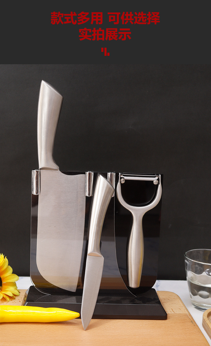 贸点工厂直营MD-D018菜刀刀具套装4件套带刀架不锈钢刀具套装