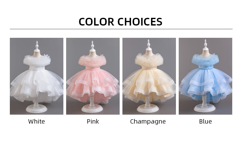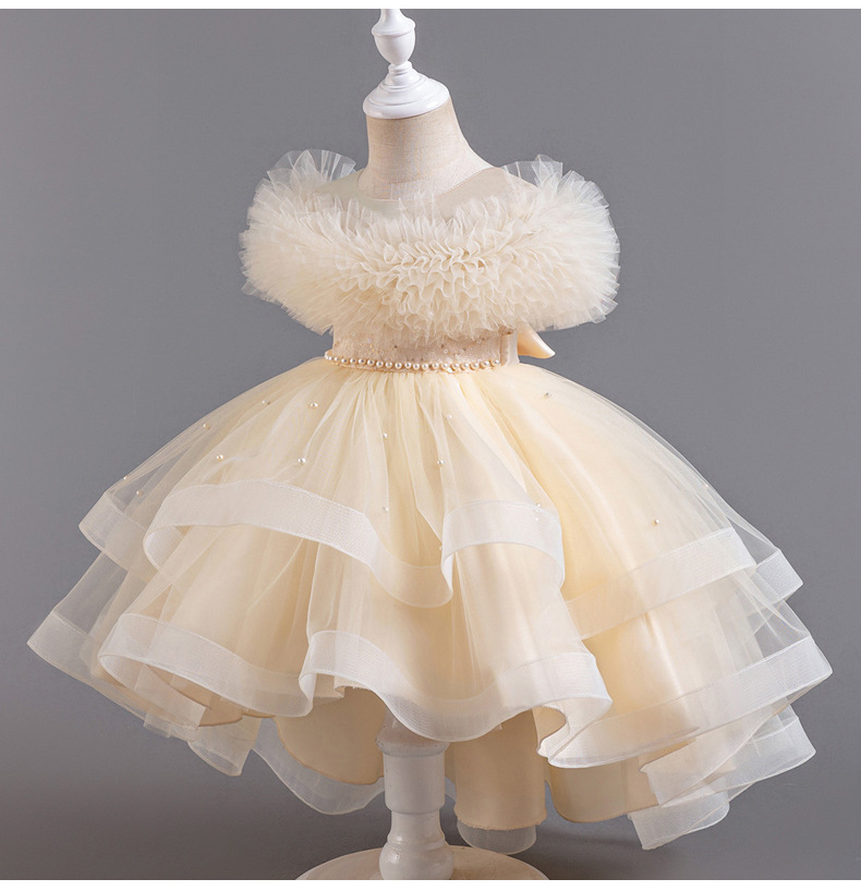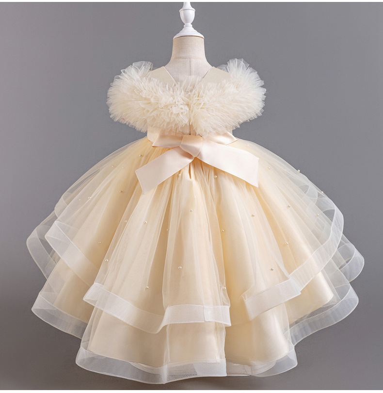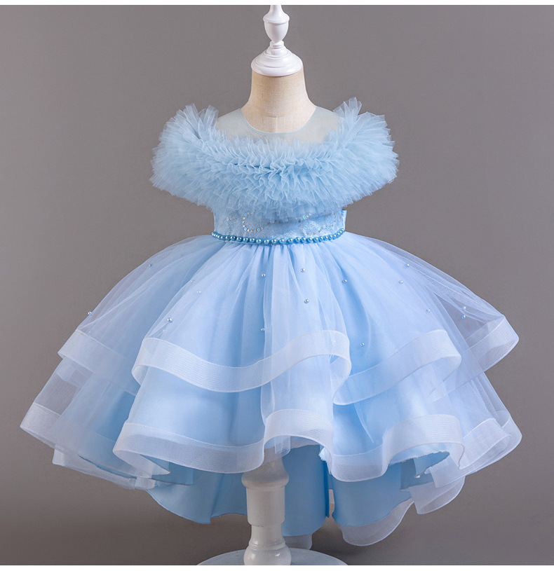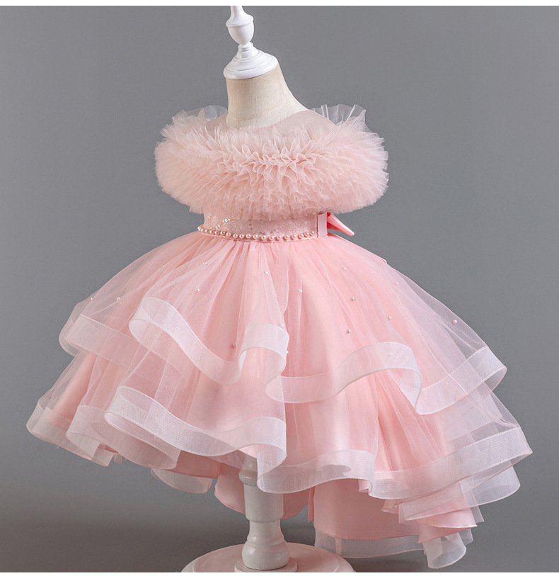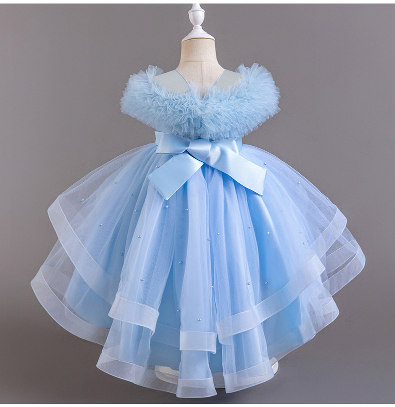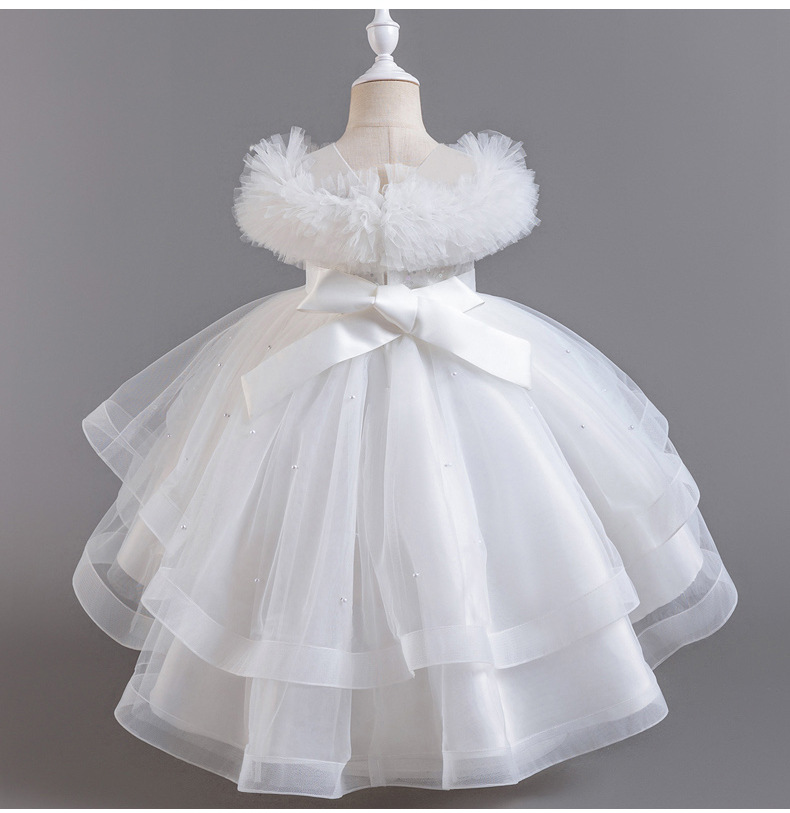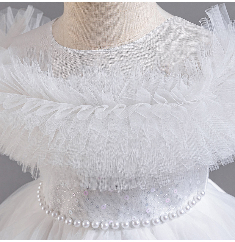 儿童夏季无袖婚纱礼服连衣裙中大童表演服花童装拖尾女孩服装裙子