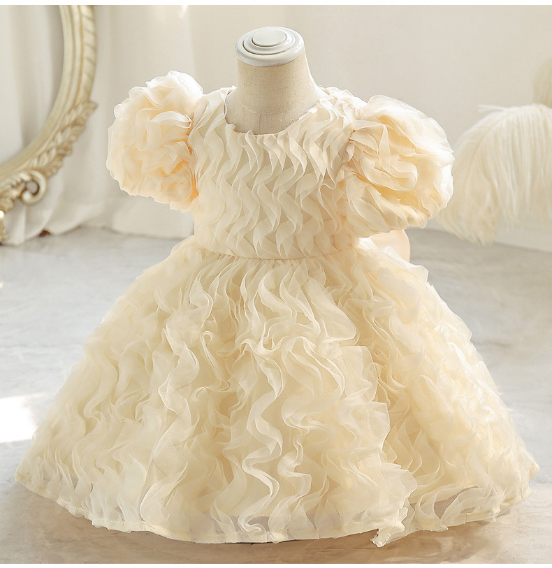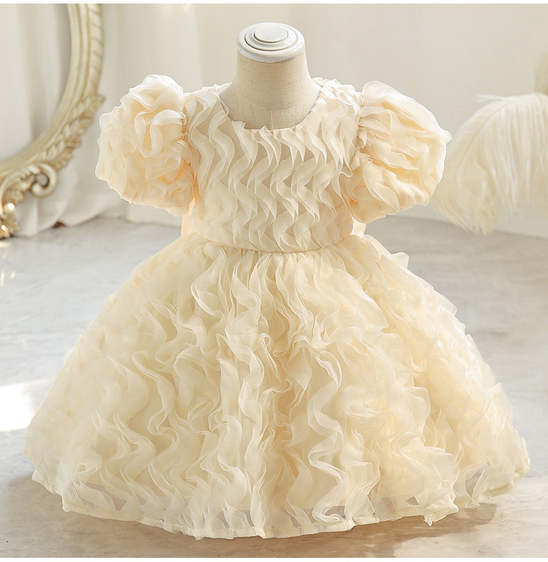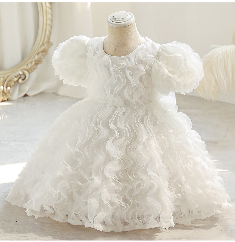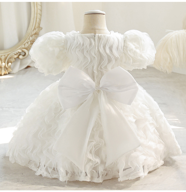 中小童装女童花童礼服连衣裙1-6岁泡泡袖公主蓬蓬裙子花边裙软纱