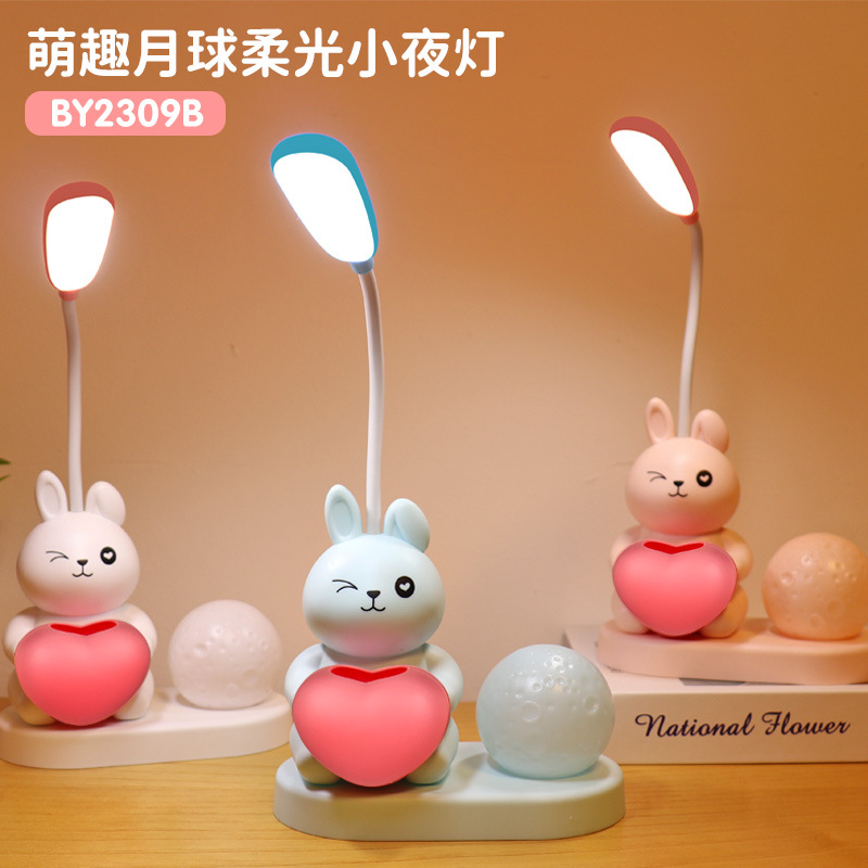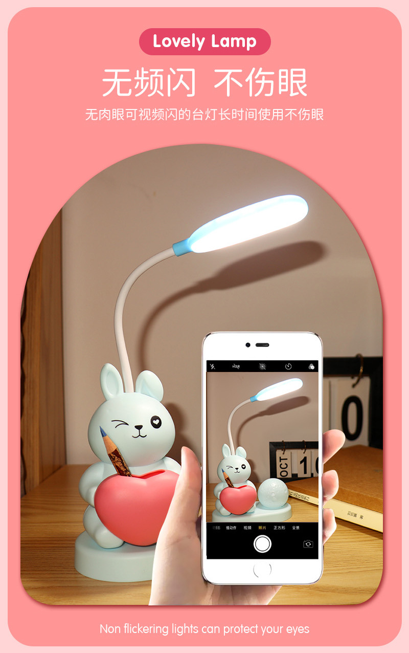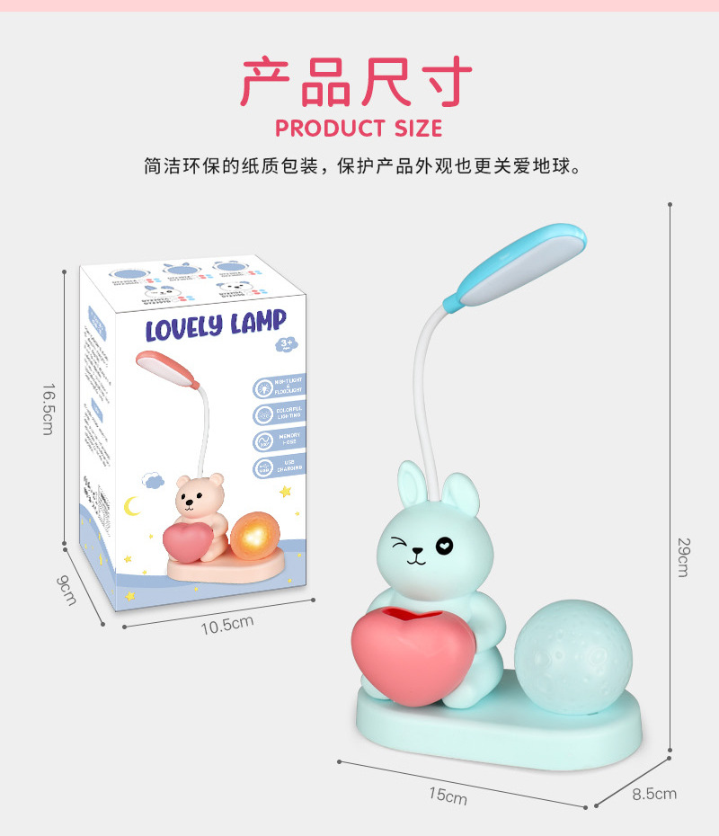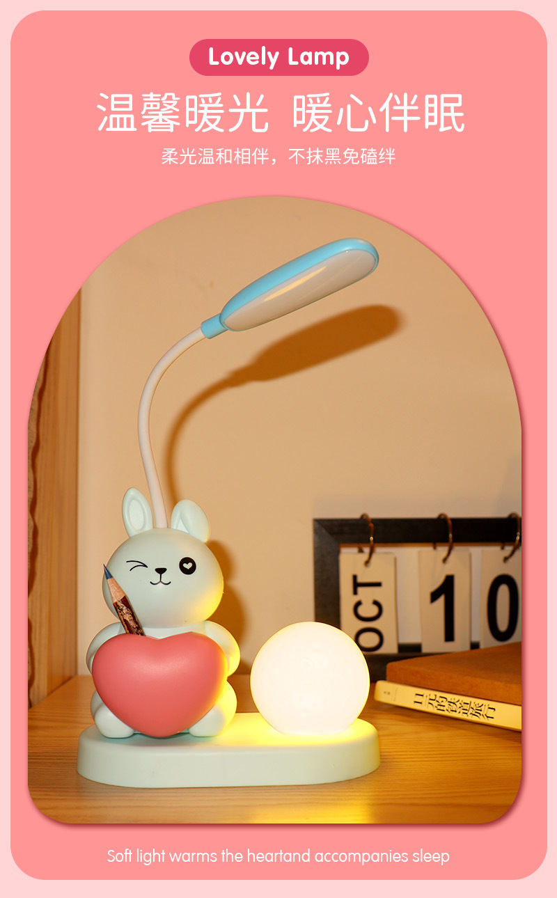 卡通动物小台灯 LED充电小夜灯 学生儿童桌面写字灯USB充电床头灯