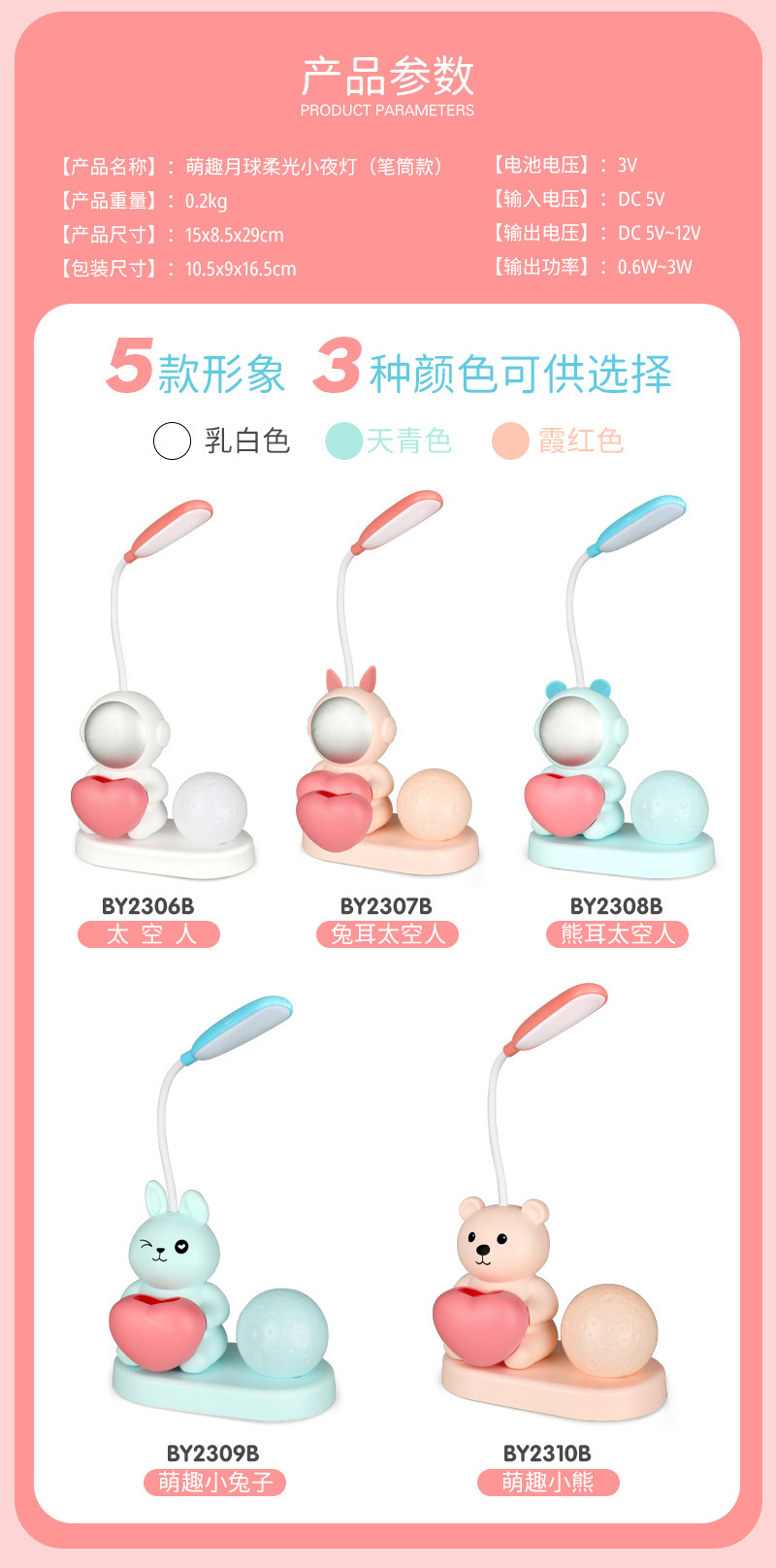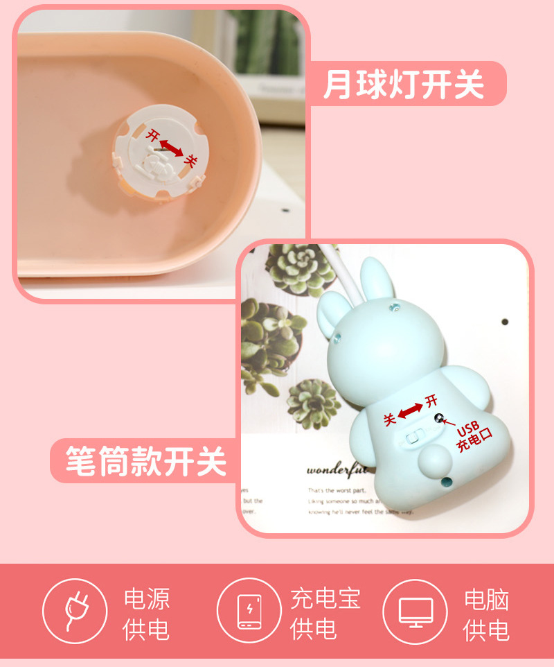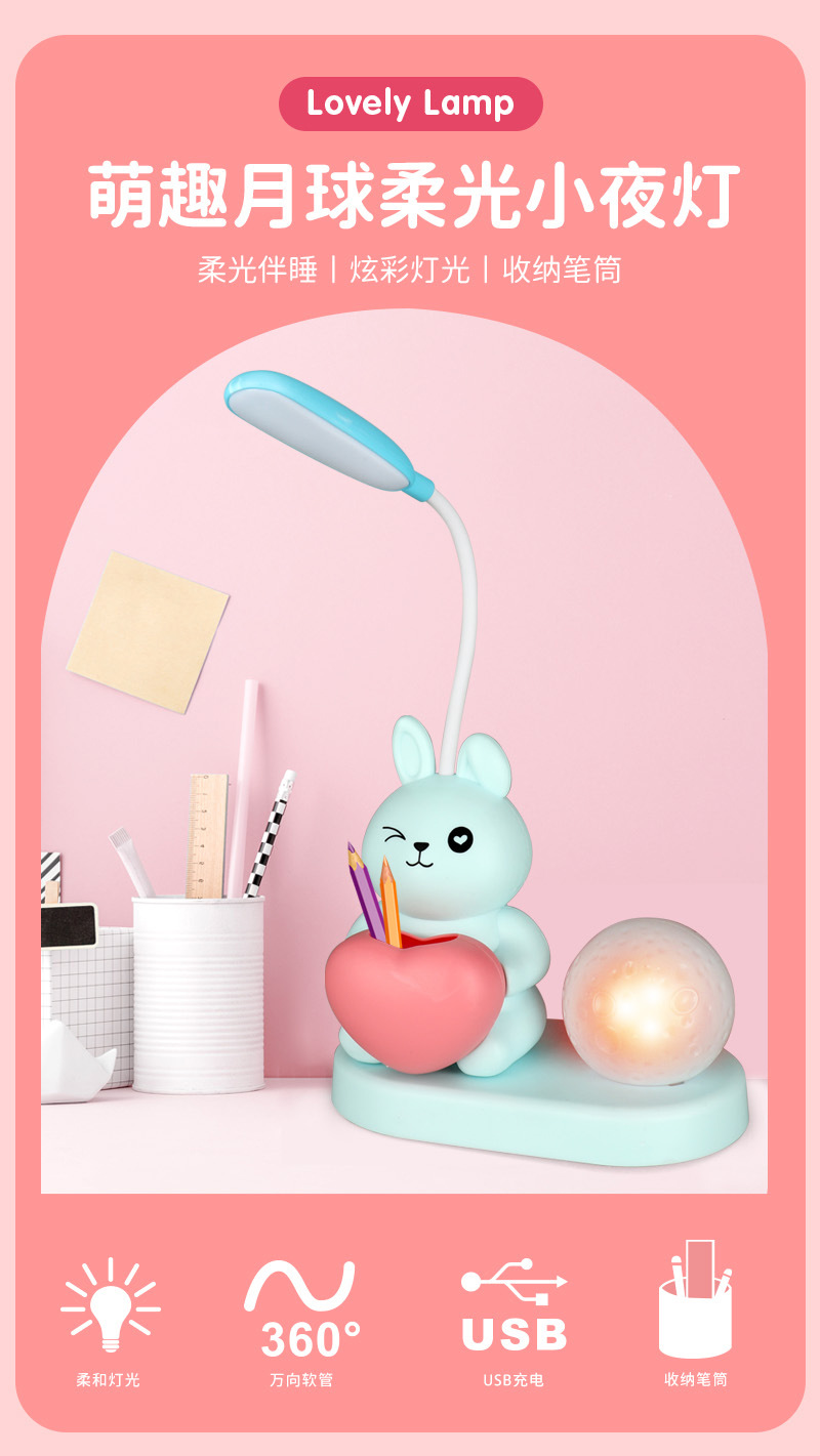 卡通动物小台灯 LED充电小夜灯 学生儿童桌面写字灯USB充电床头灯