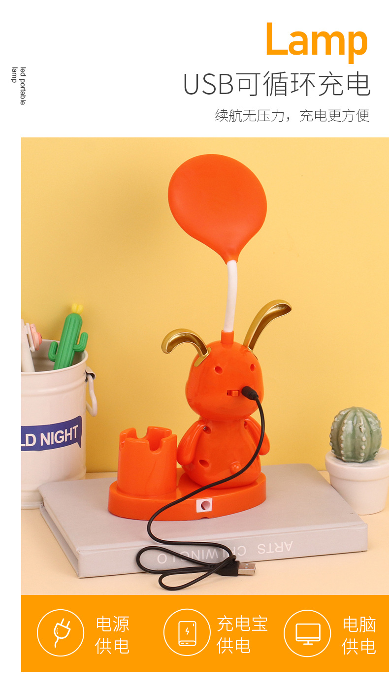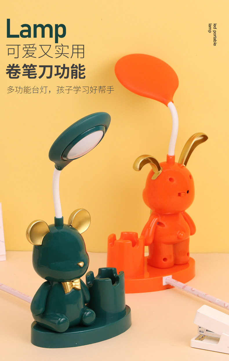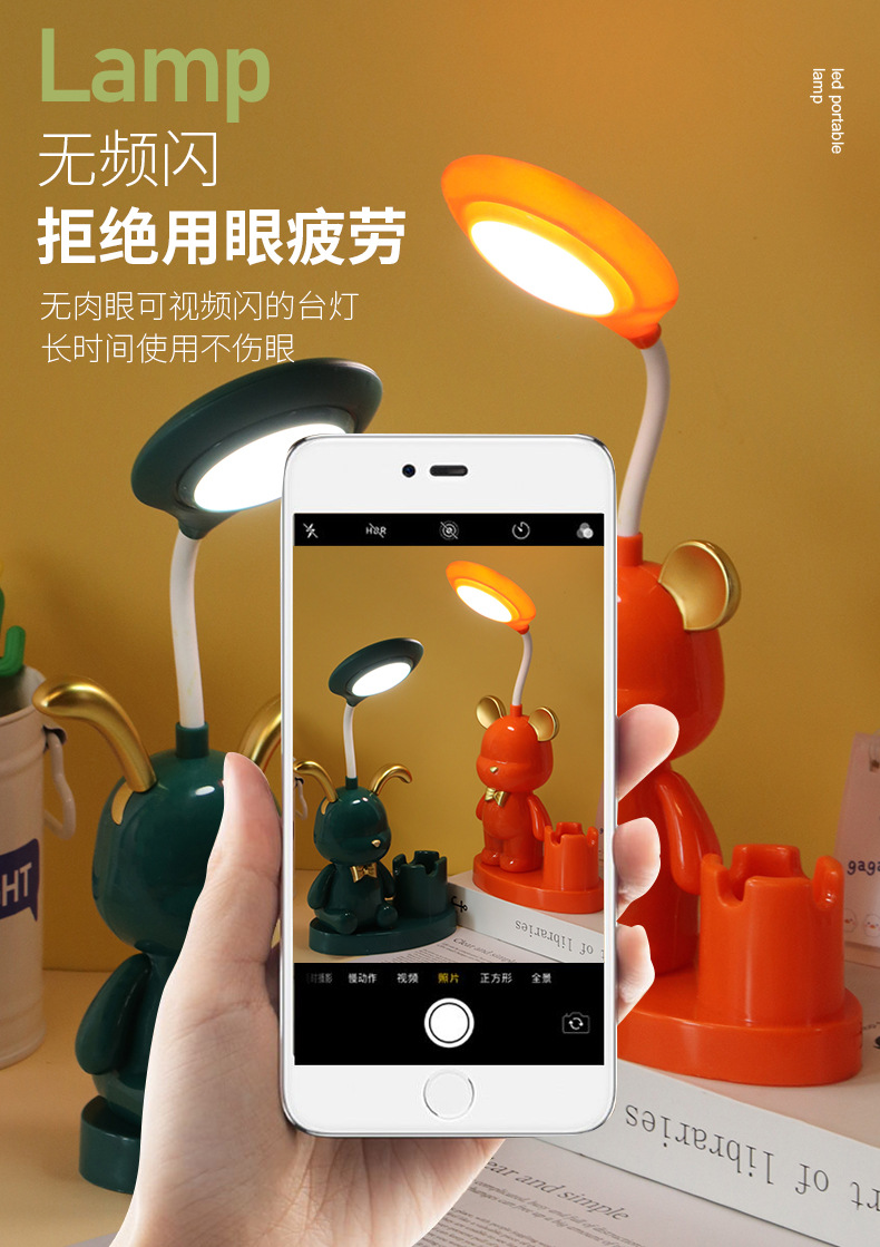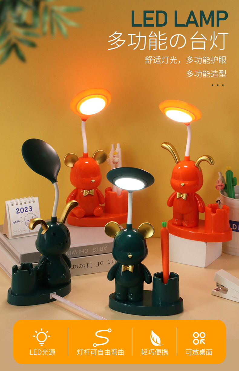 萌兔USB充电学生学习阅读小台灯卡通熊台灯床头卧室摆件LED小夜灯