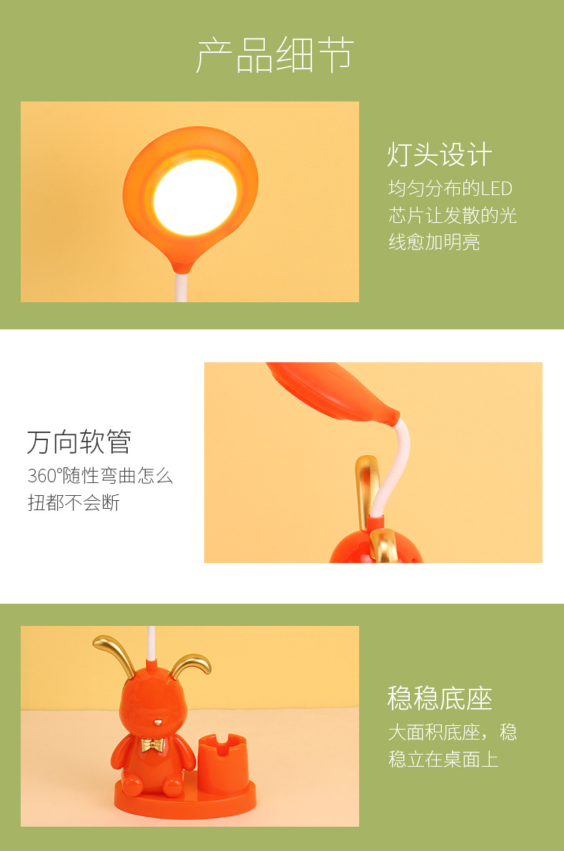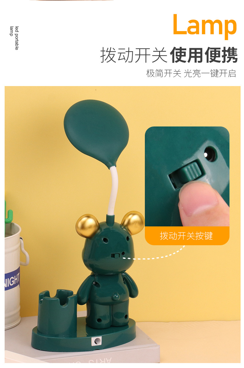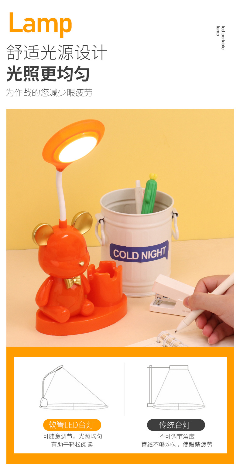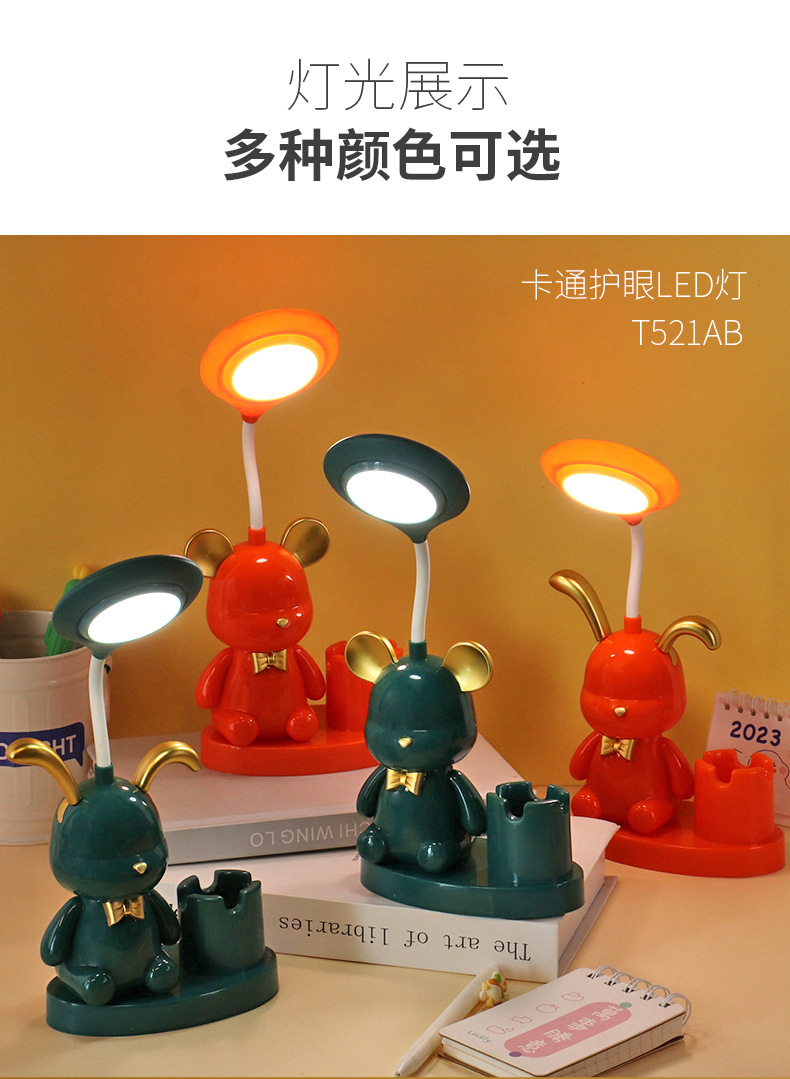 萌兔USB充电学生学习阅读小台灯卡通熊台灯床头卧室摆件LED小夜灯