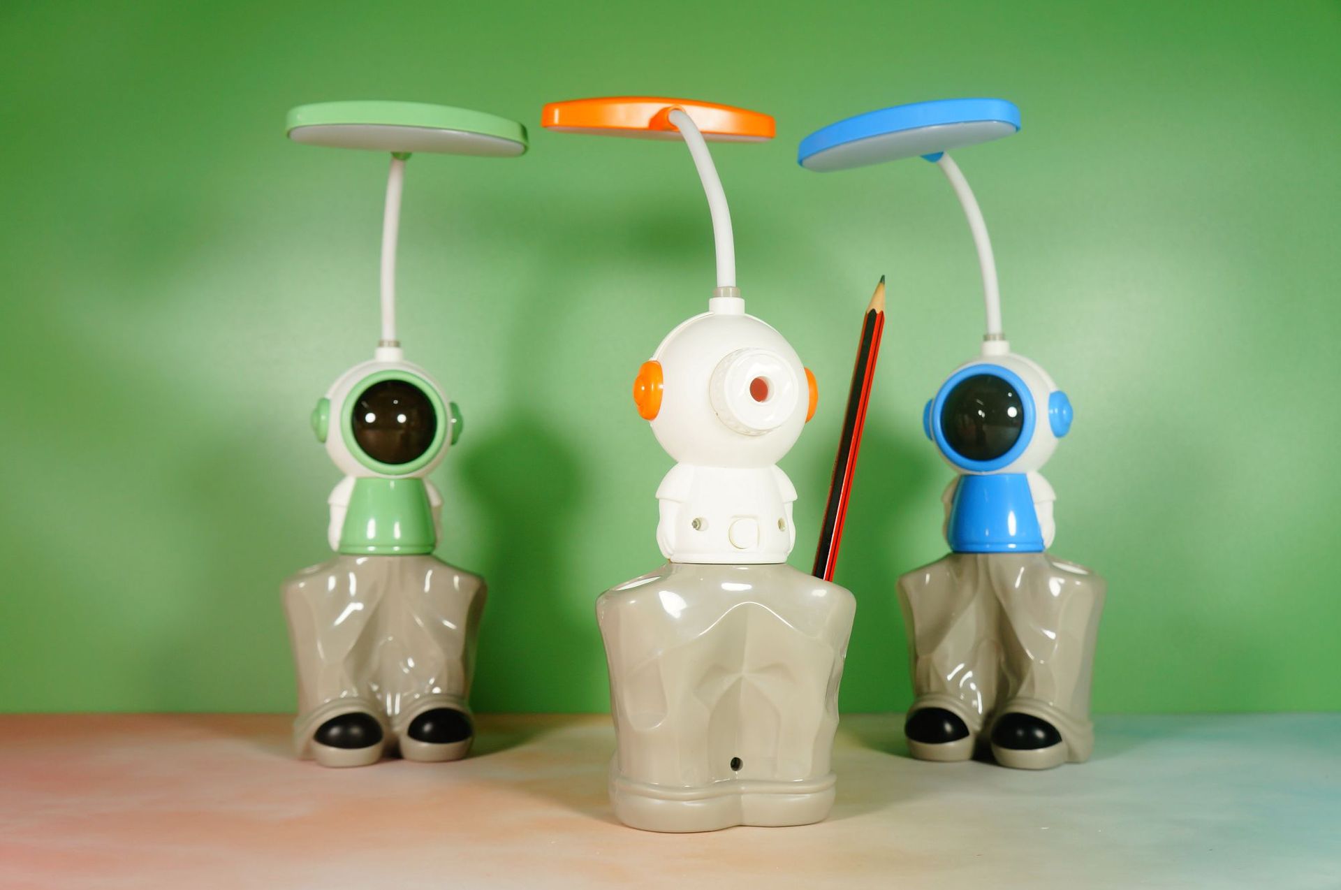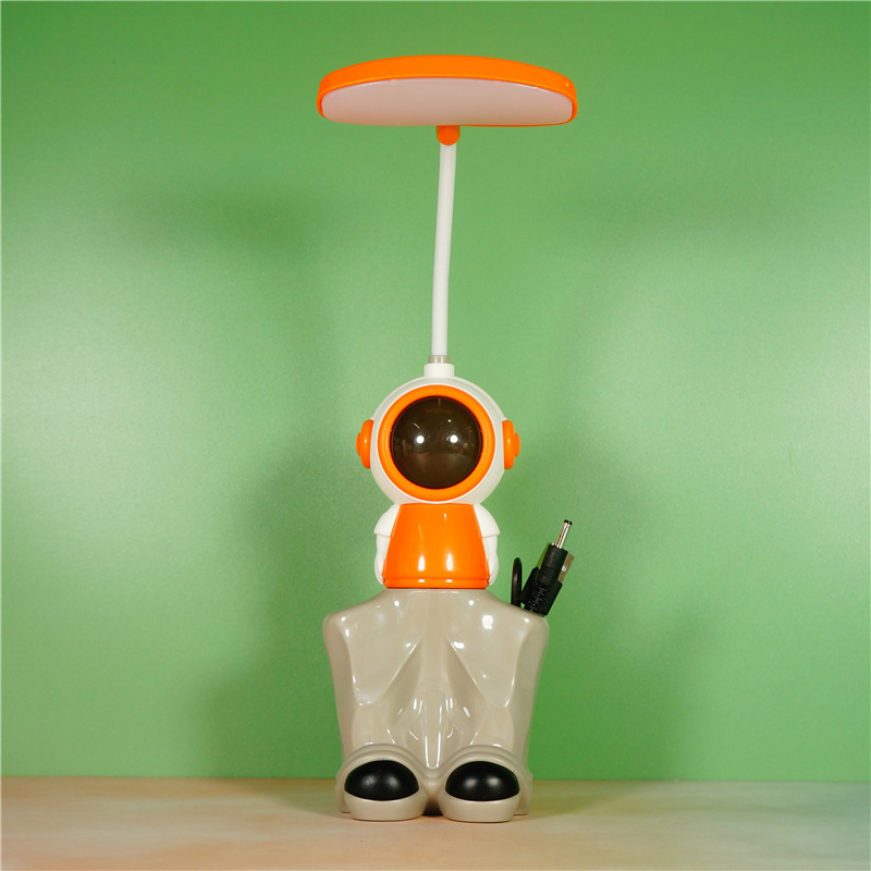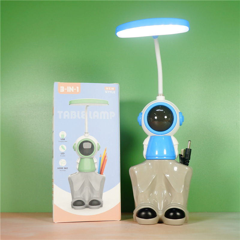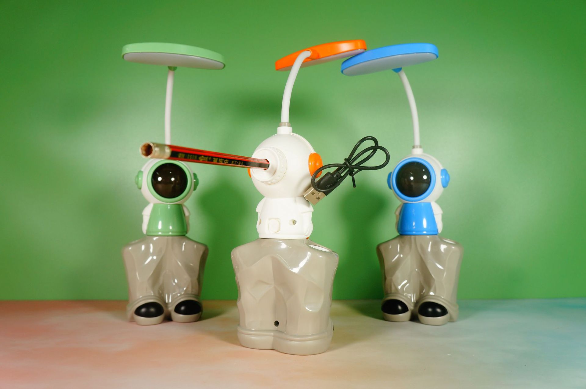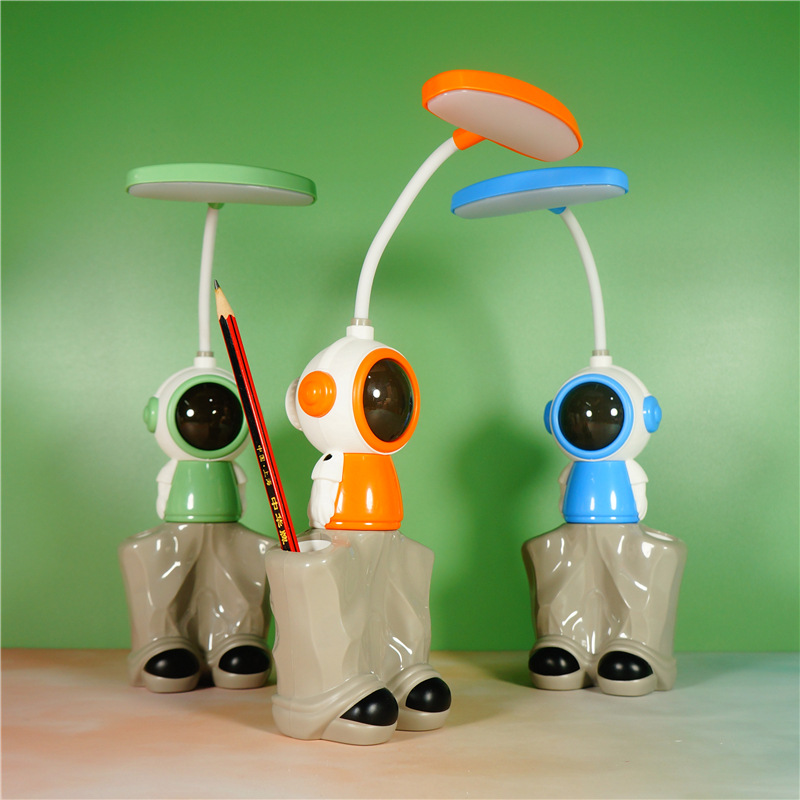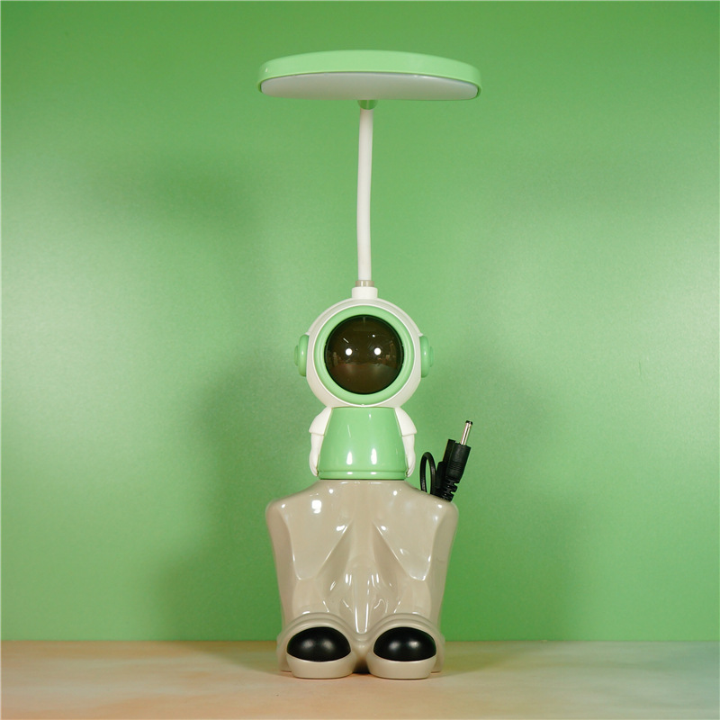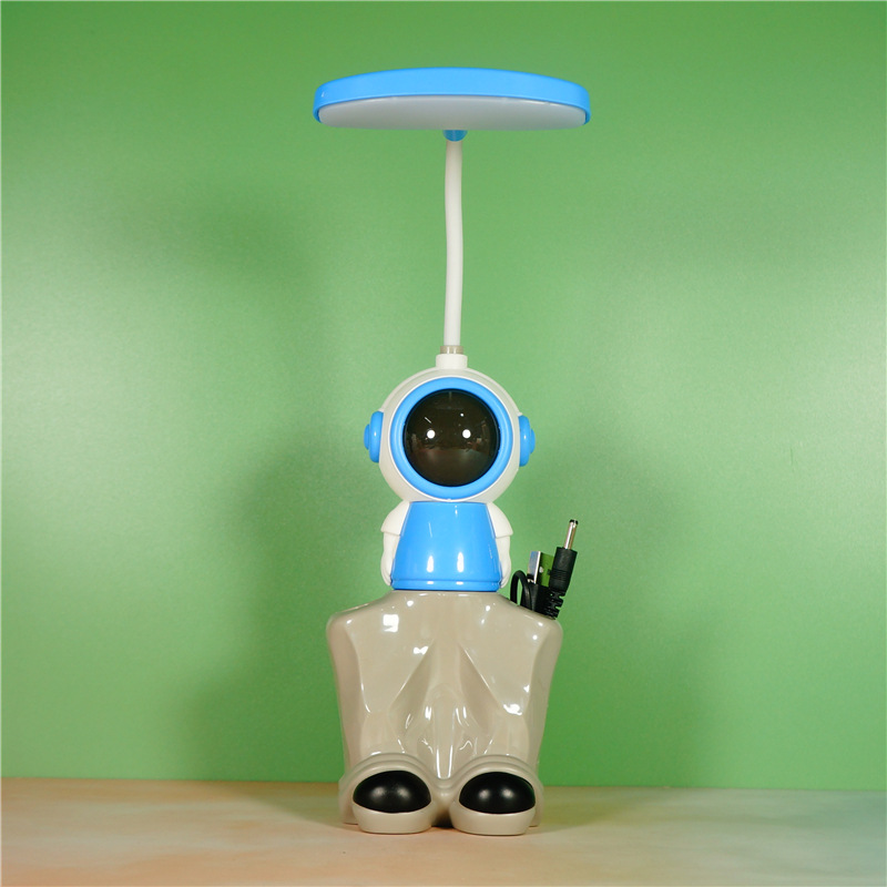 卡通太空人笔筒小夜灯 迷你宇航员USB充电台灯学生书桌铅笔削台灯