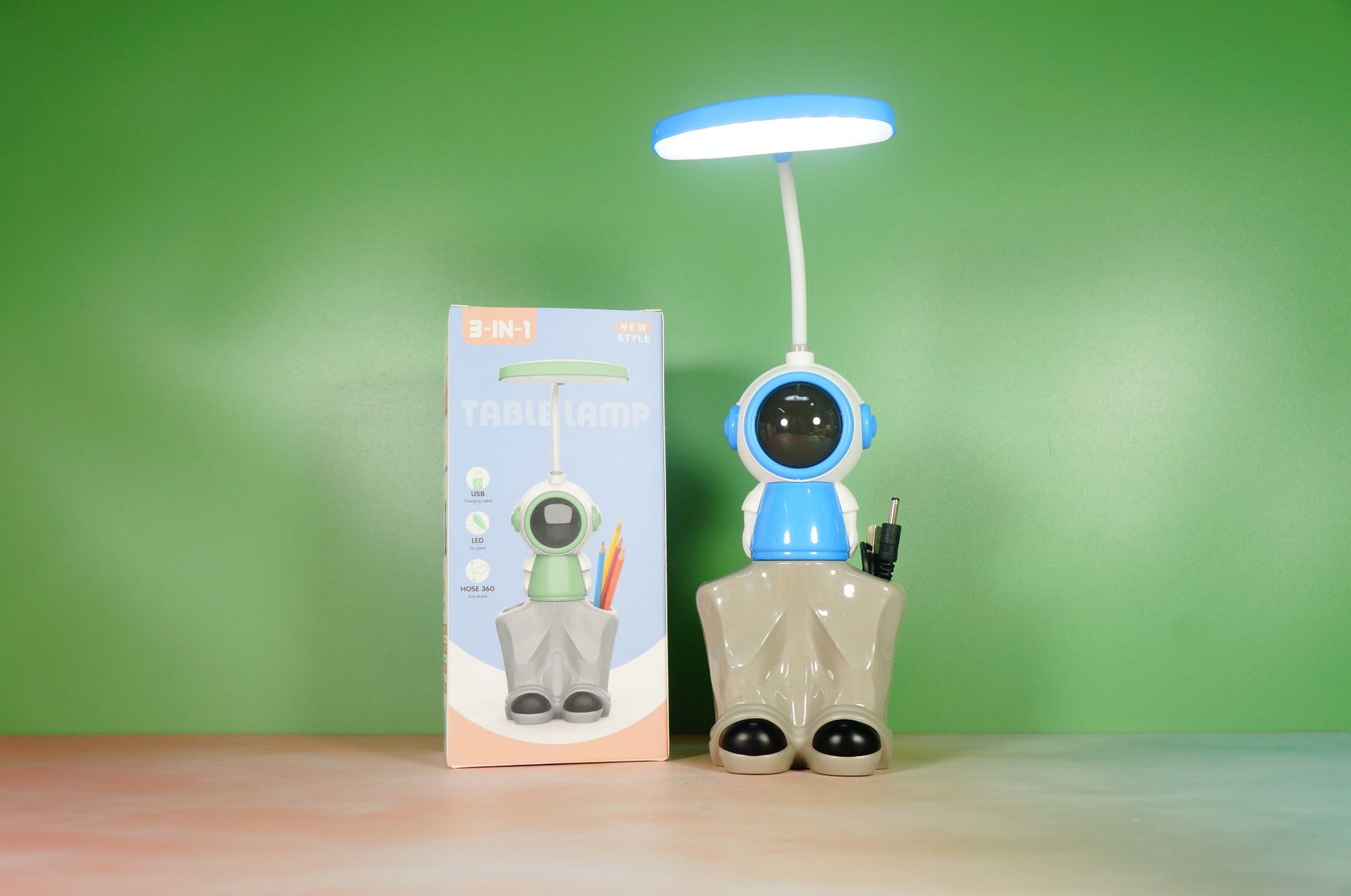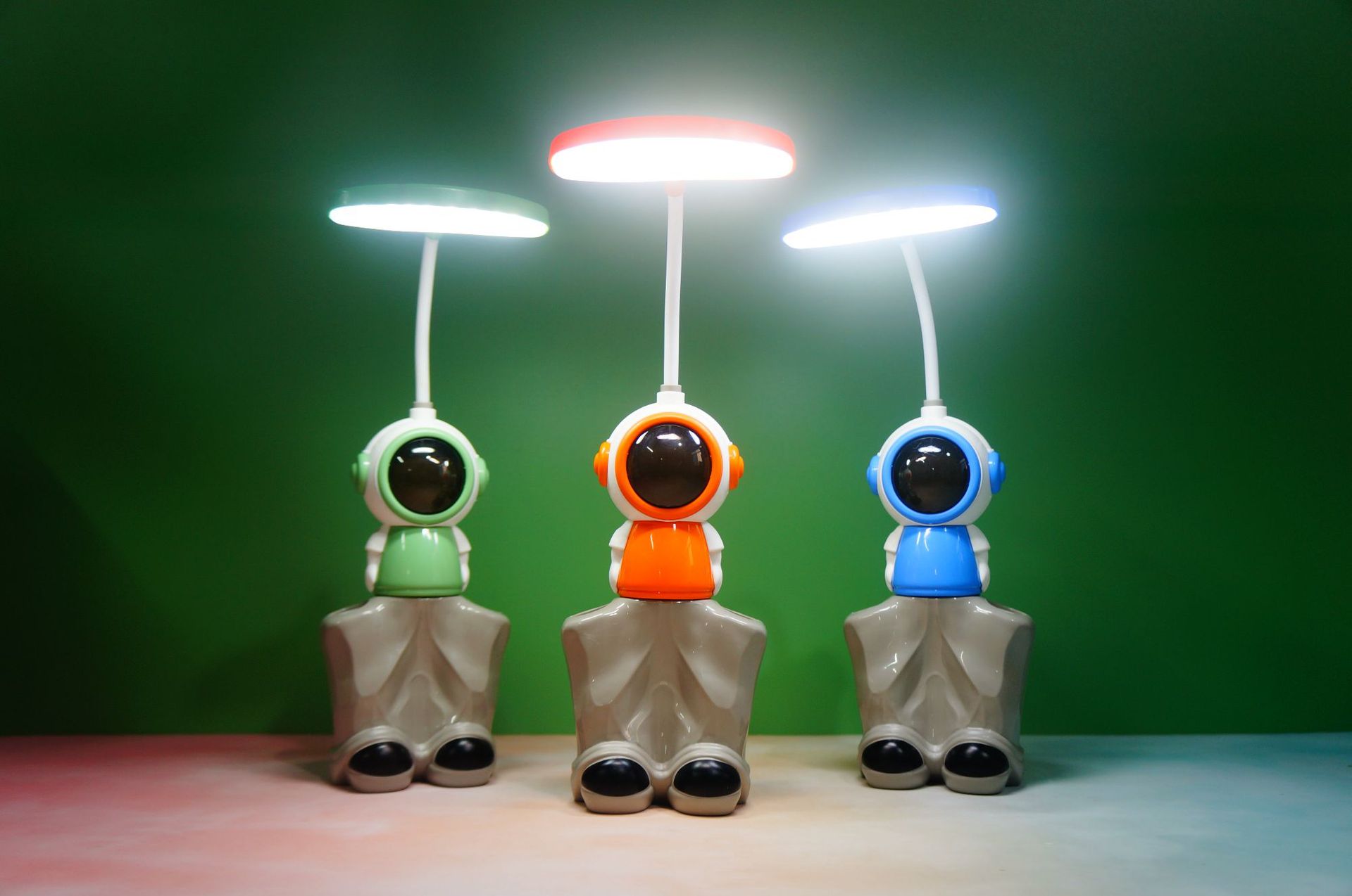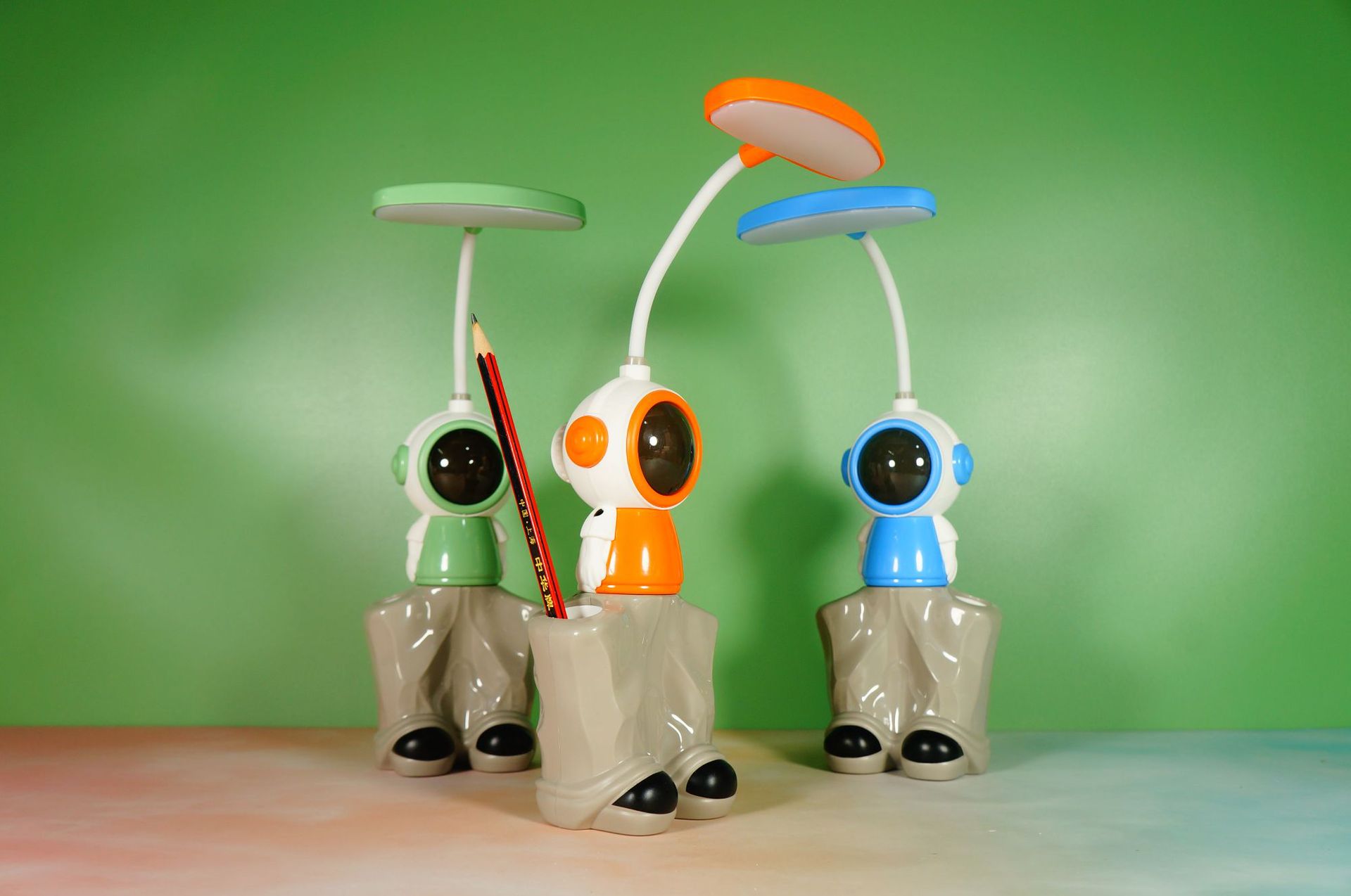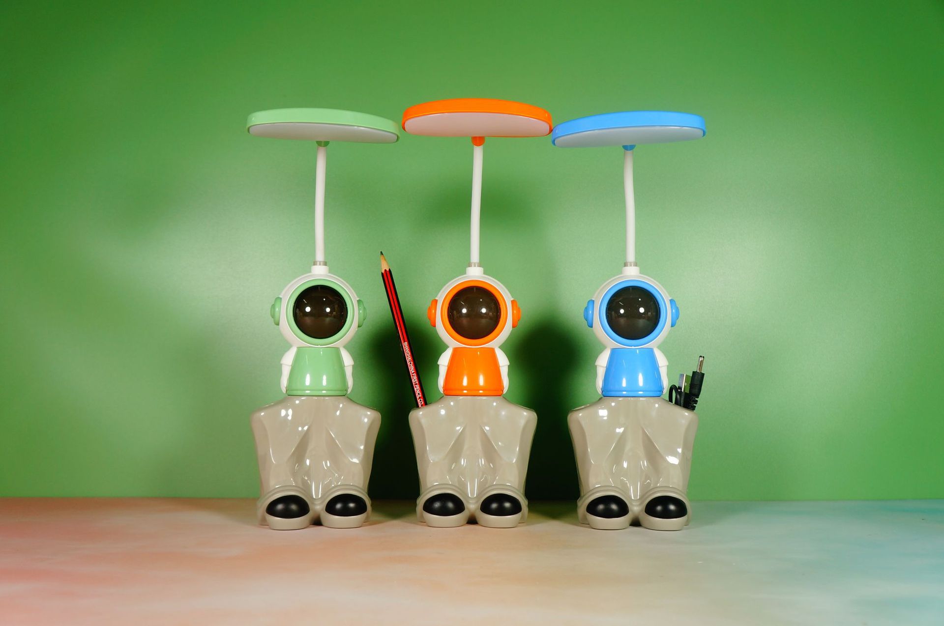 卡通太空人笔筒小夜灯 迷你宇航员USB充电台灯学生书桌铅笔削台灯
