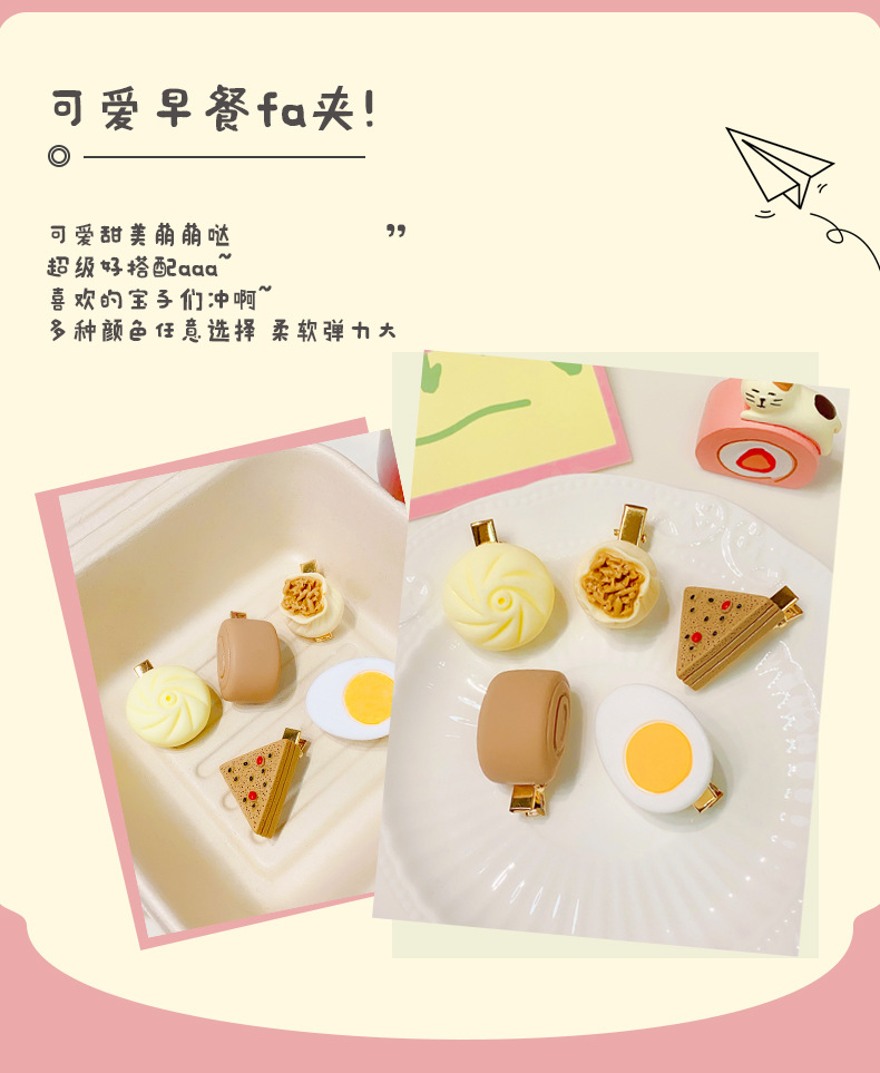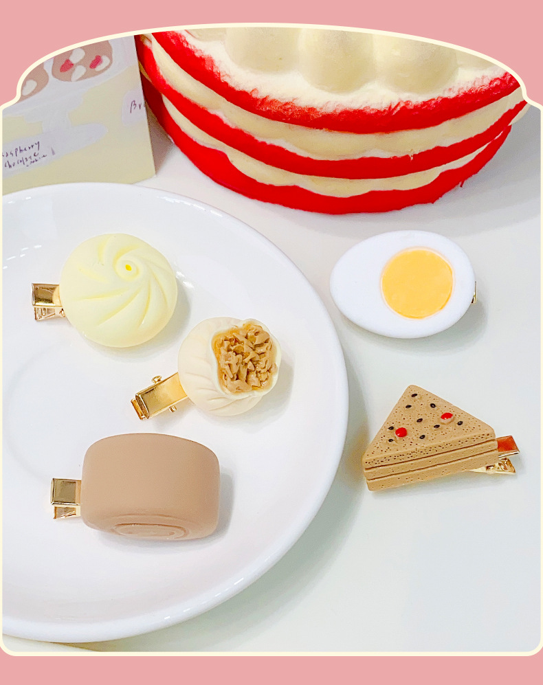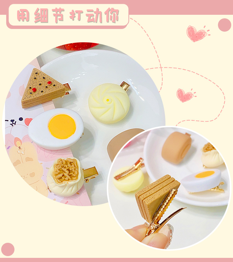 仿真食玩发夹女包子溏心蛋烧麦少女发卡创意刘海夹食物边夹发饰品