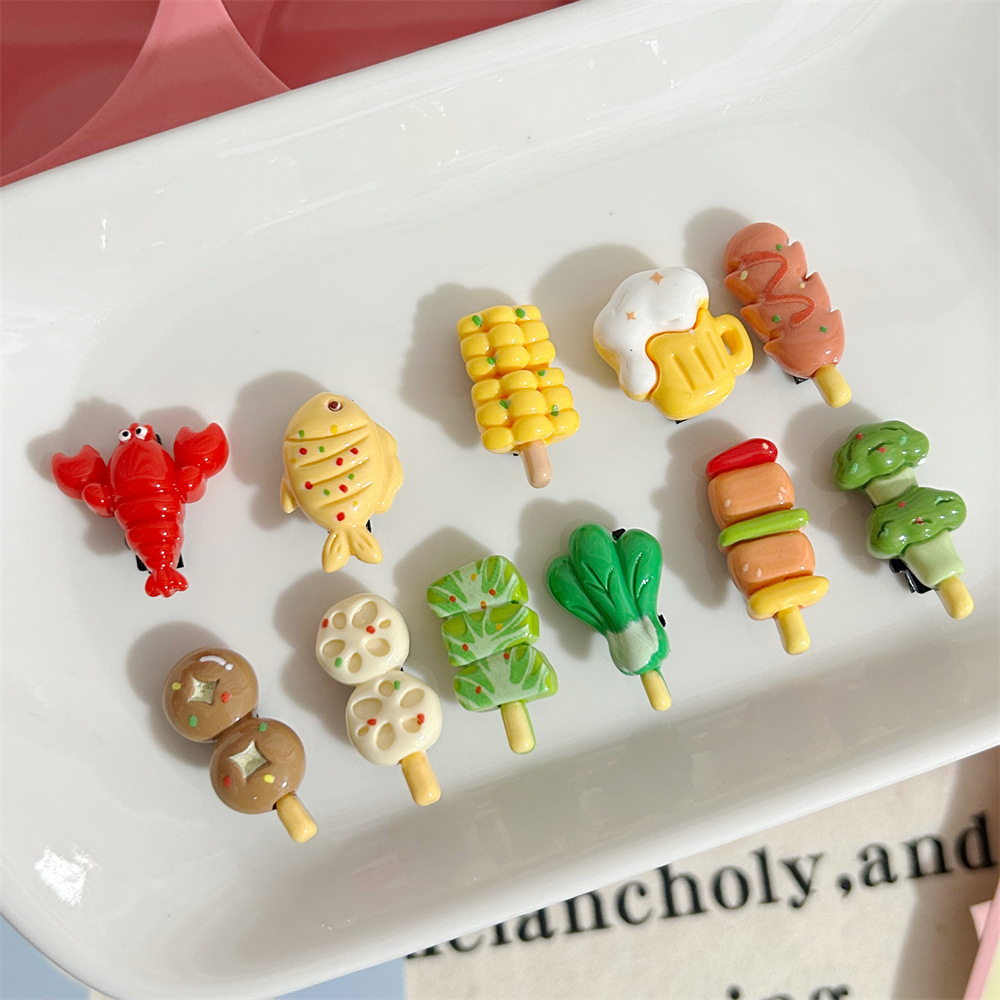 Cherry卡通仿真食物碎发夹烧烤夜宵食玩发卡可爱迷你儿童侧边发饰