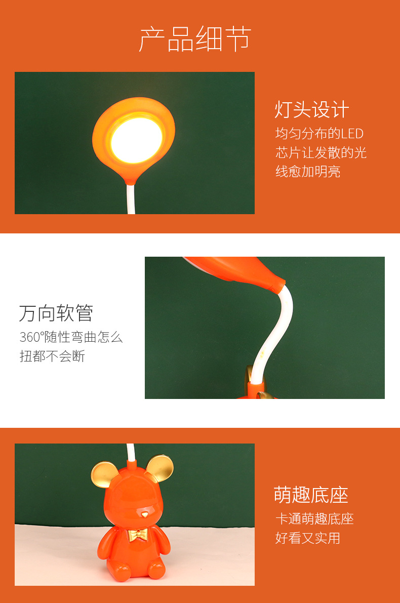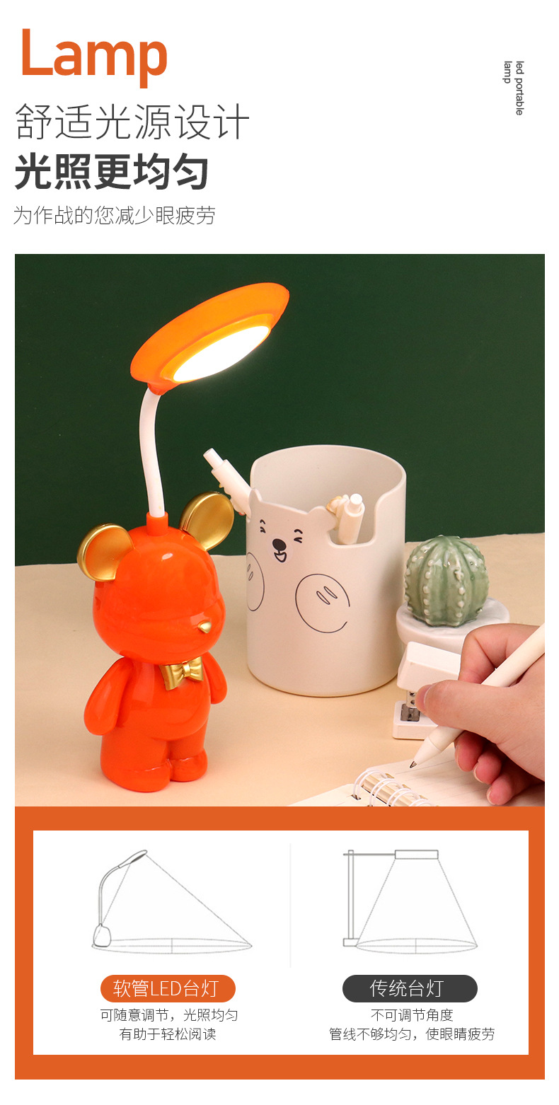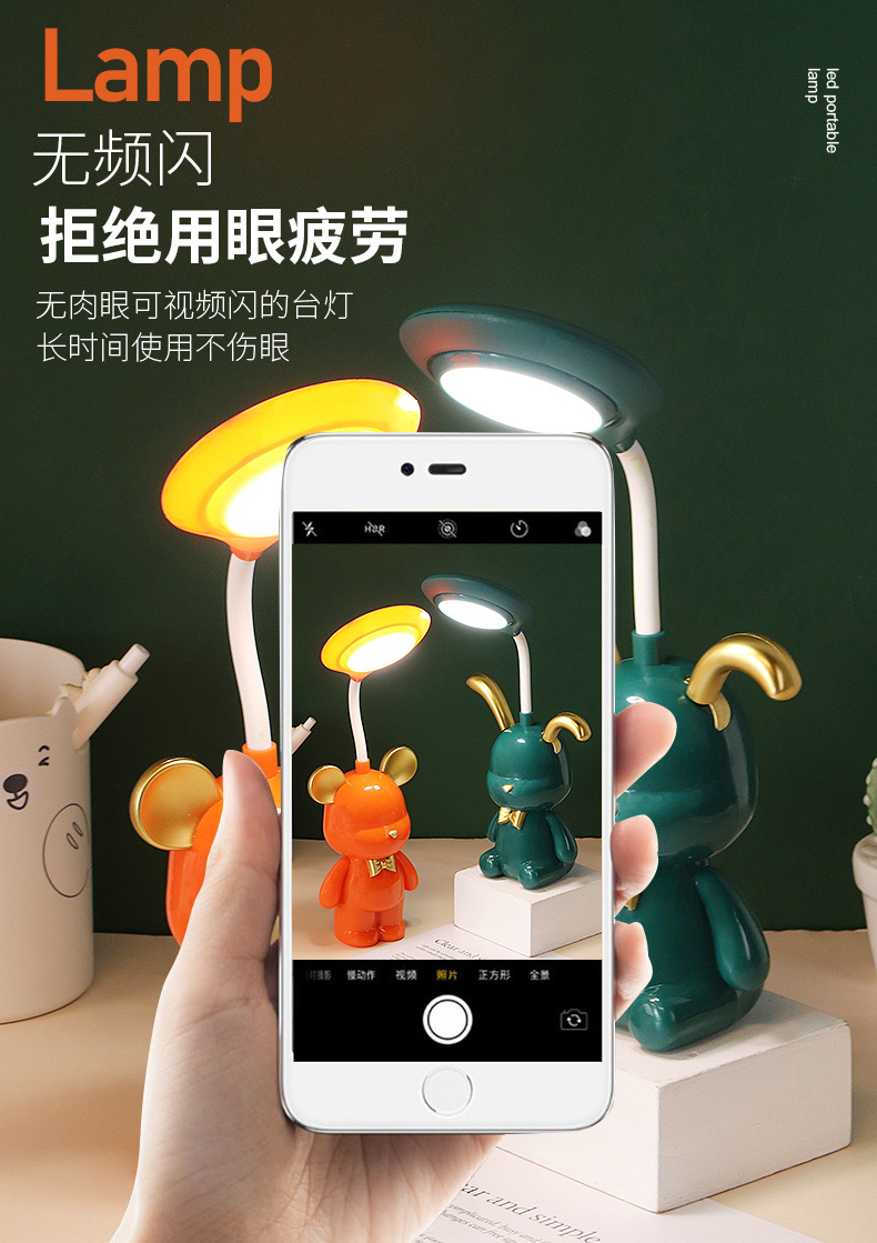 迷你兔子笔筒多功能创意台灯 usb充电护眼台灯萌熊台灯卧室床头灯