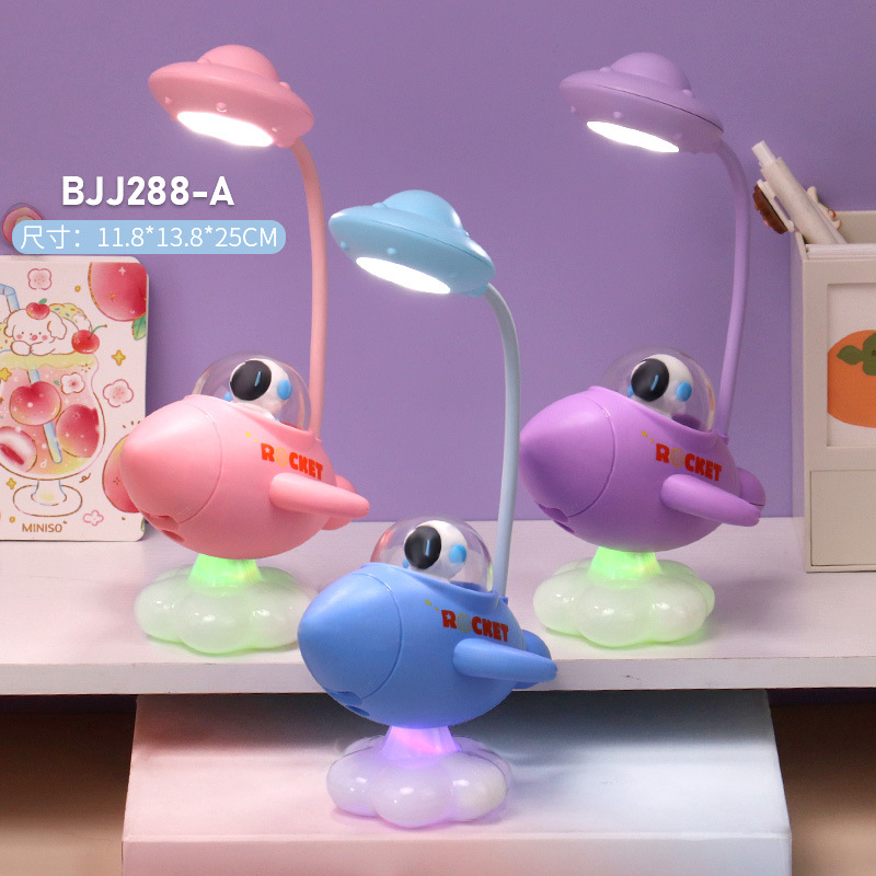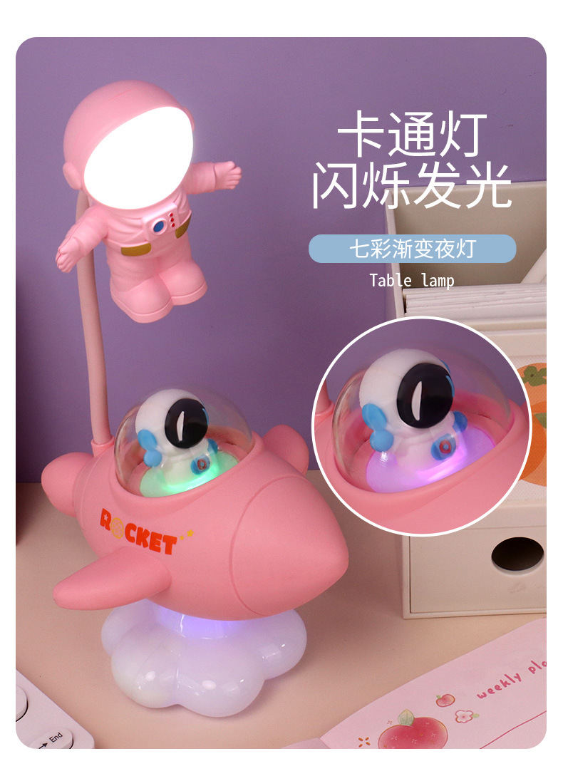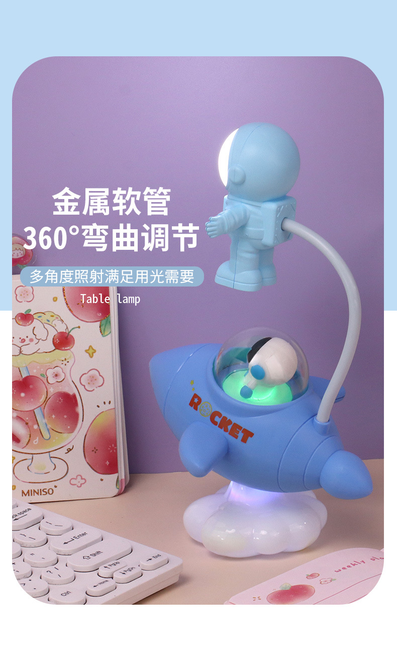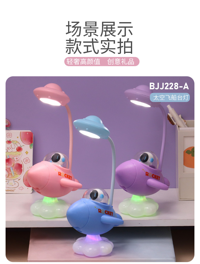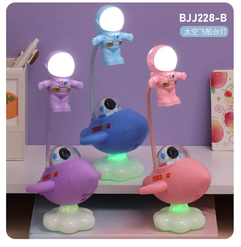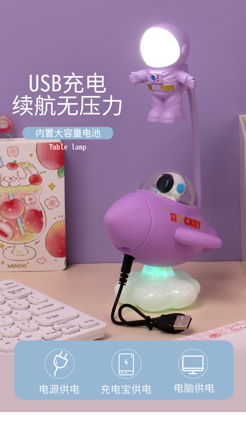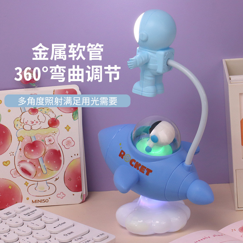 迷你太空飞船小台灯卡通宇航员桌面摆件小夜灯儿童学生写字阅读灯