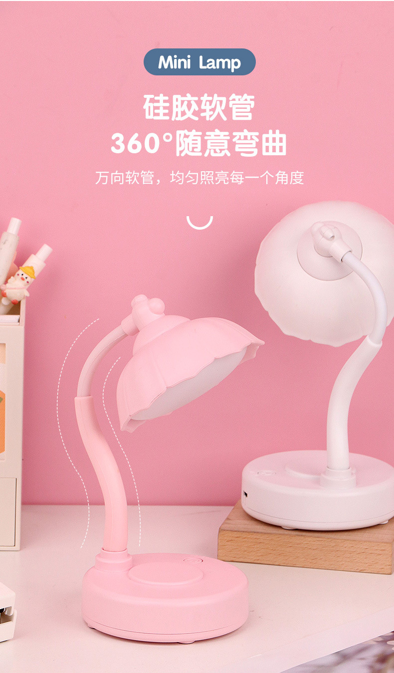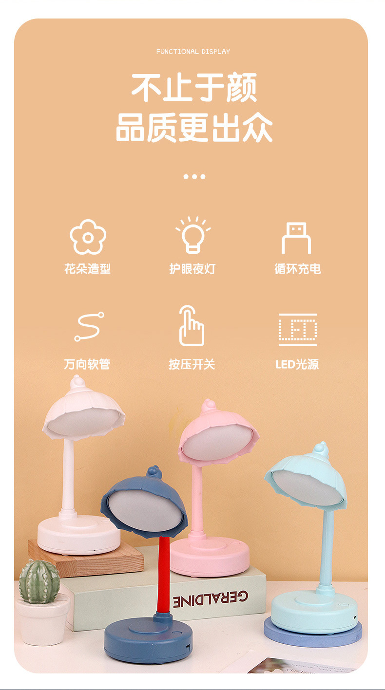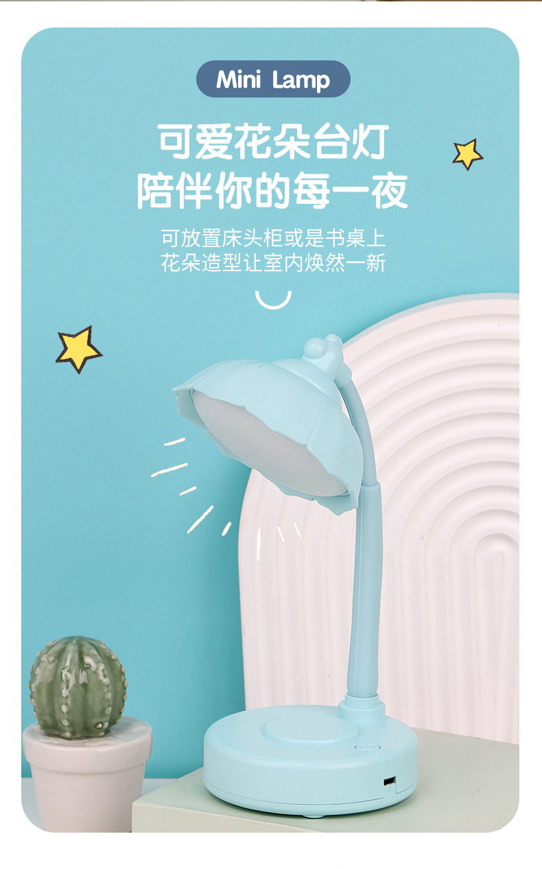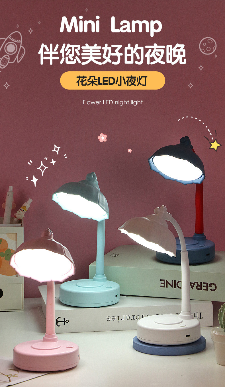 简约花朵小夜灯 迷你学生书桌学习LED充电台灯 卧室床头usb小夜灯