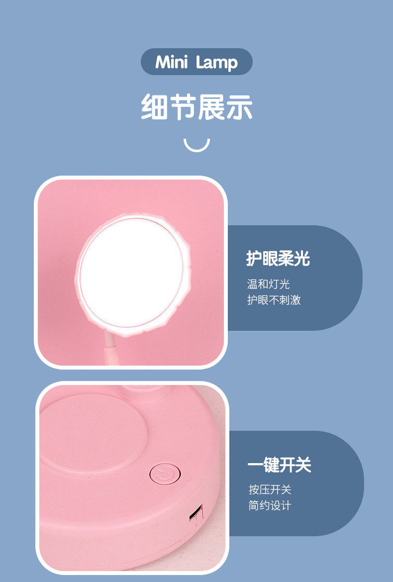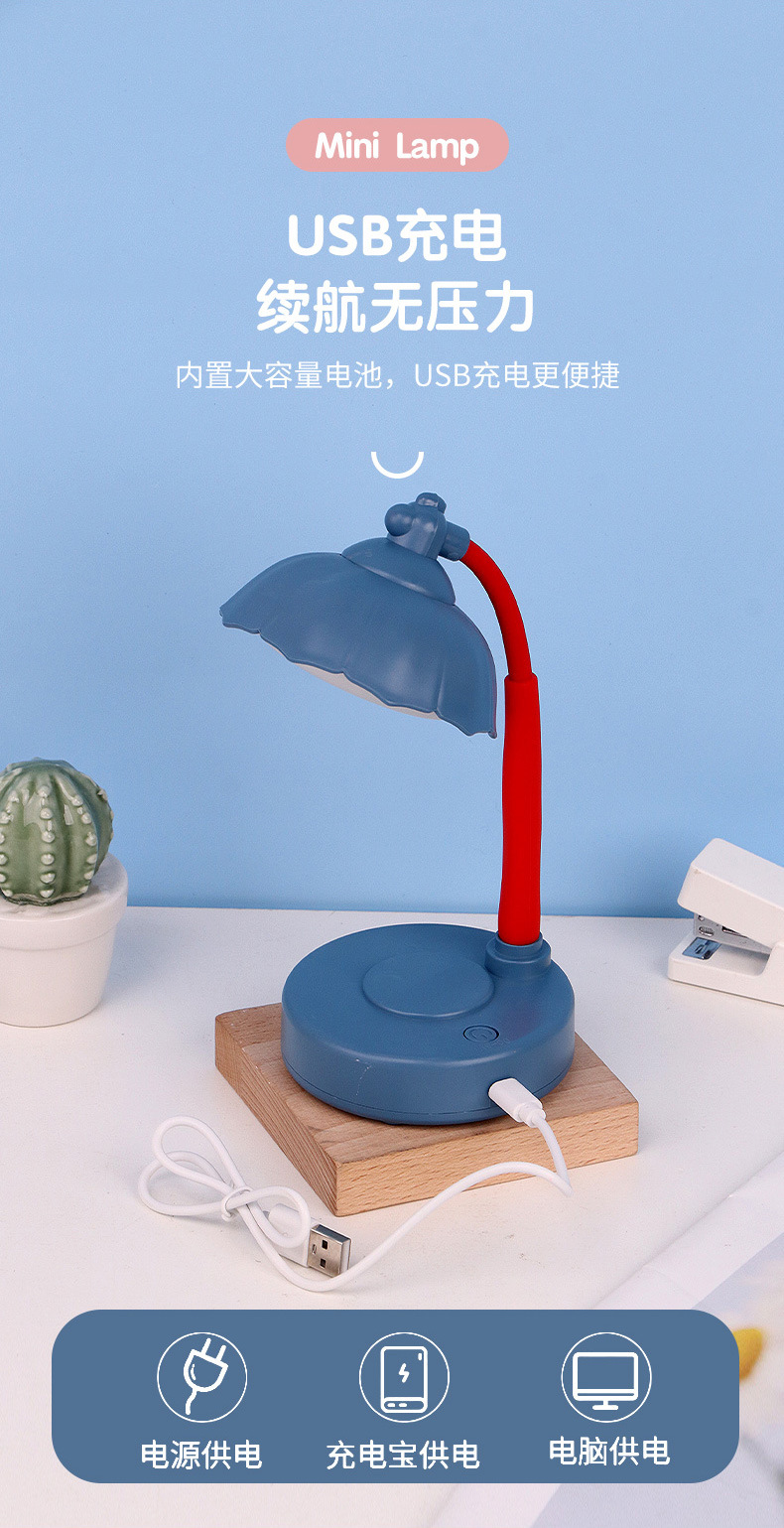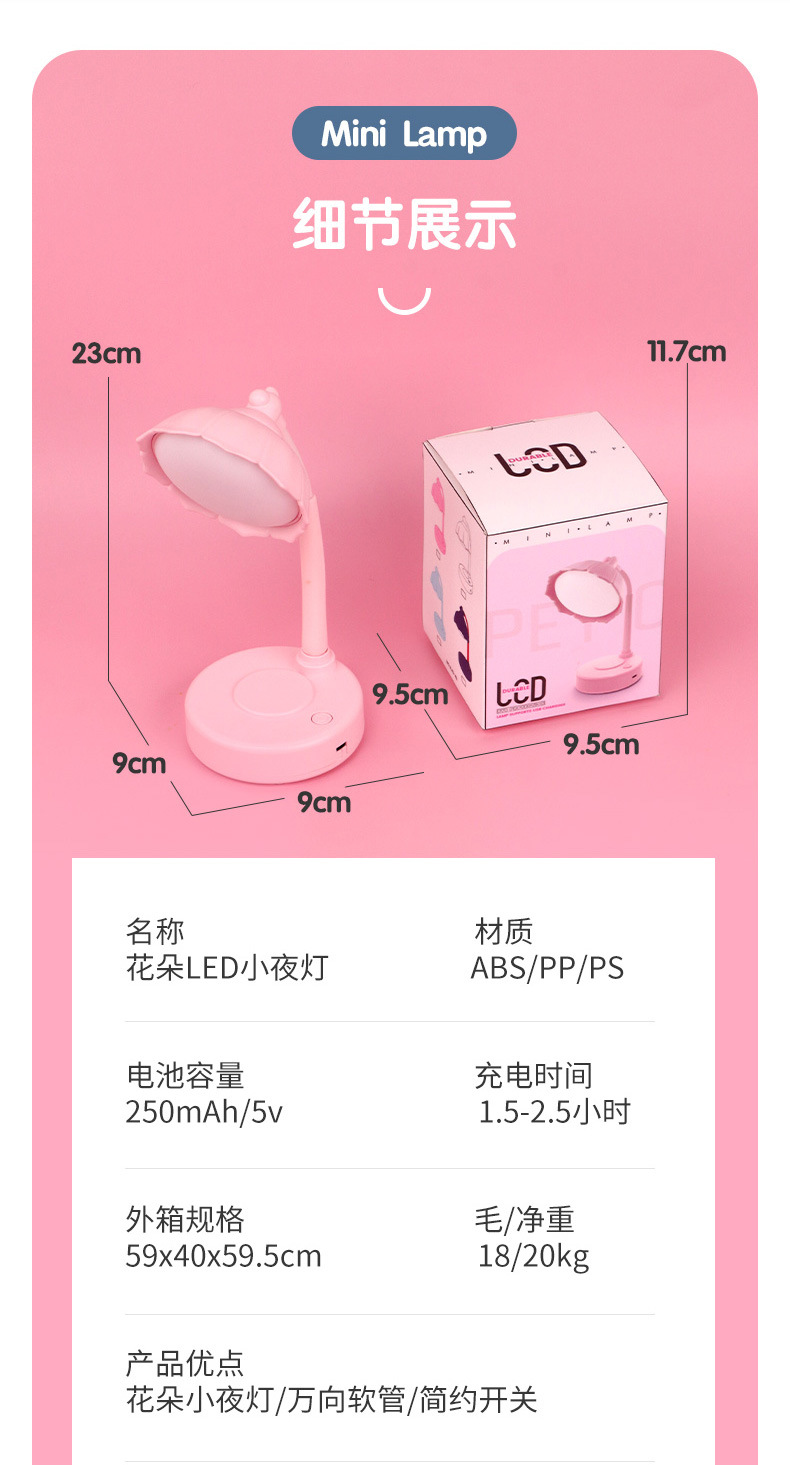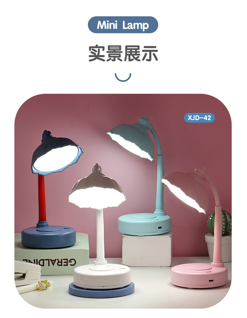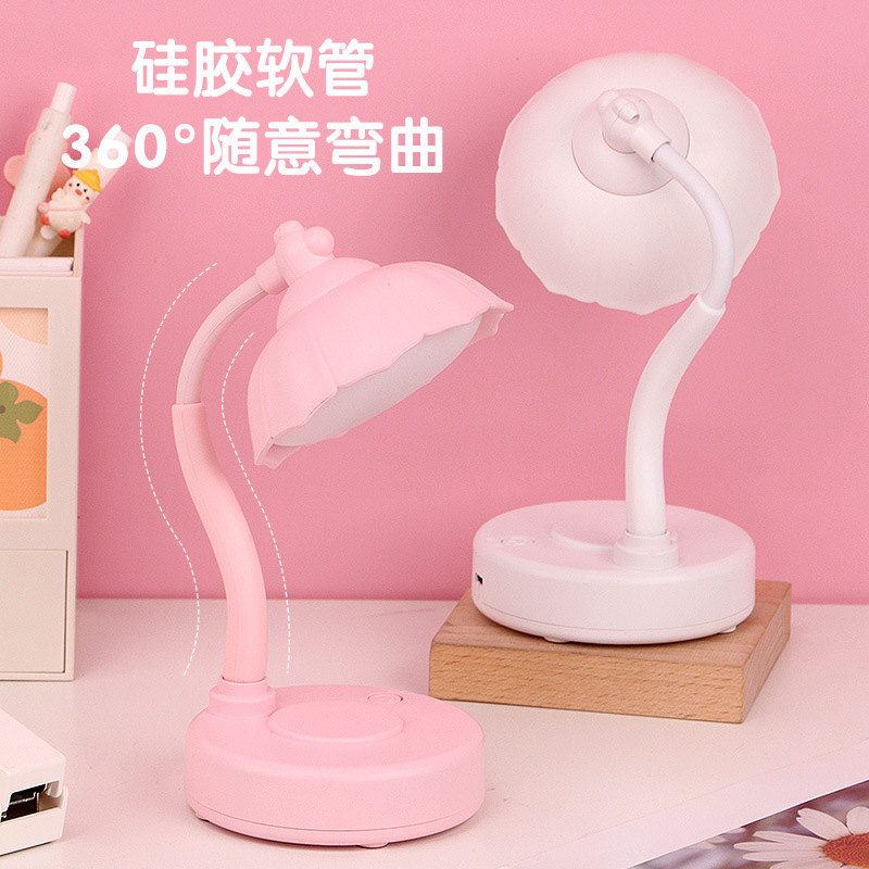简约花朵小夜灯 迷你学生书桌学习LED充电台灯 卧室床头usb小夜灯