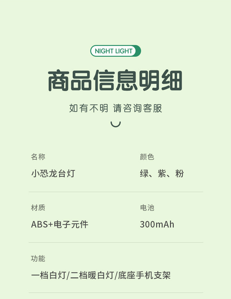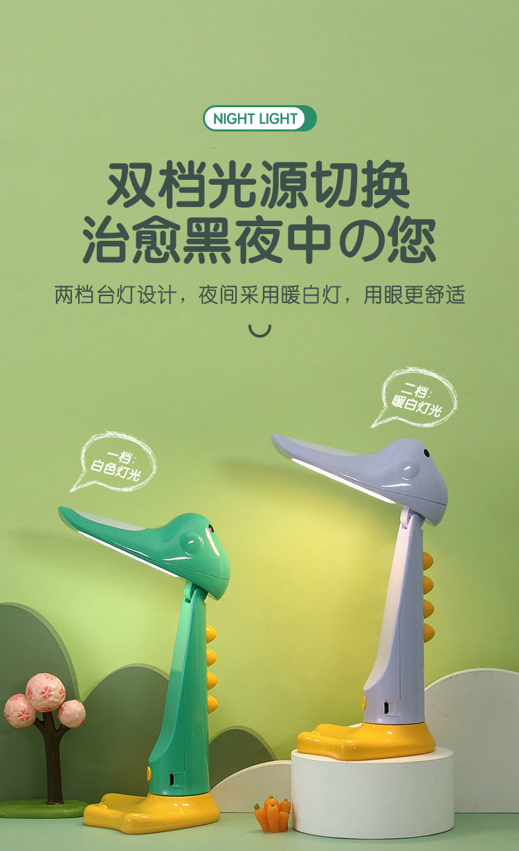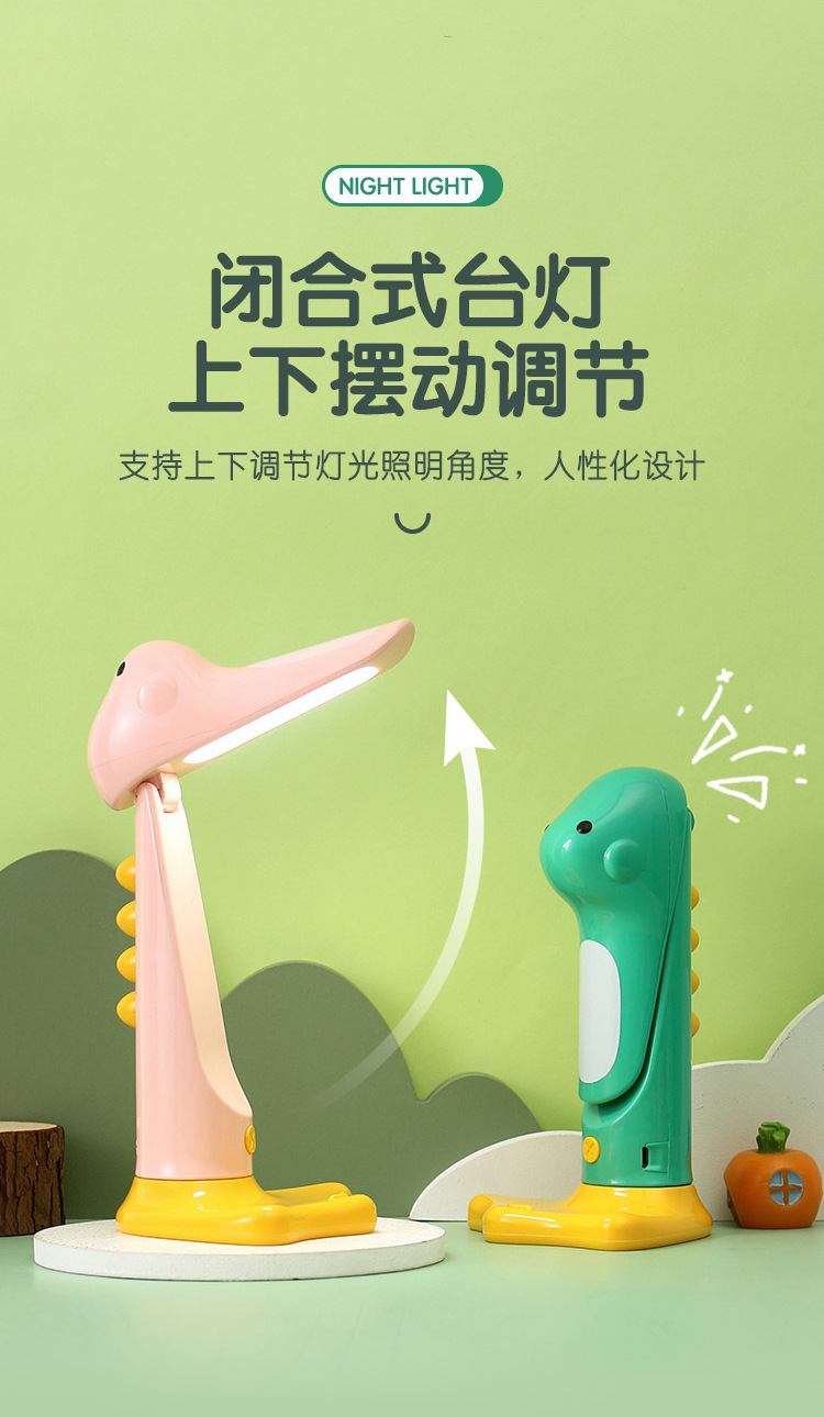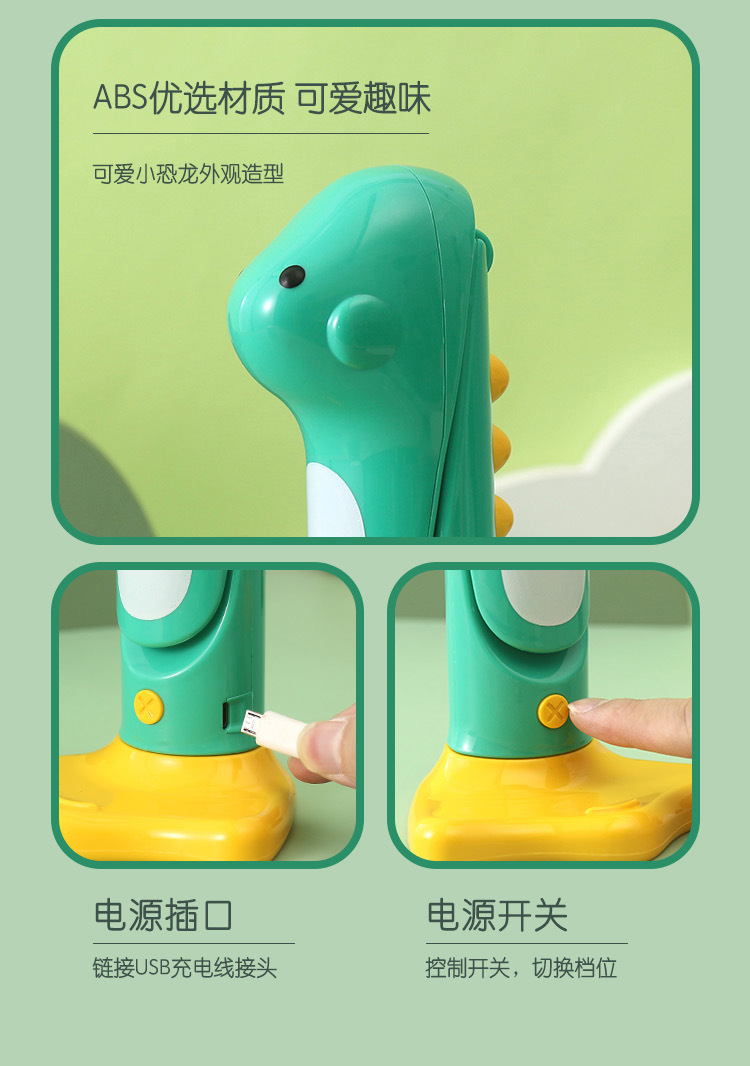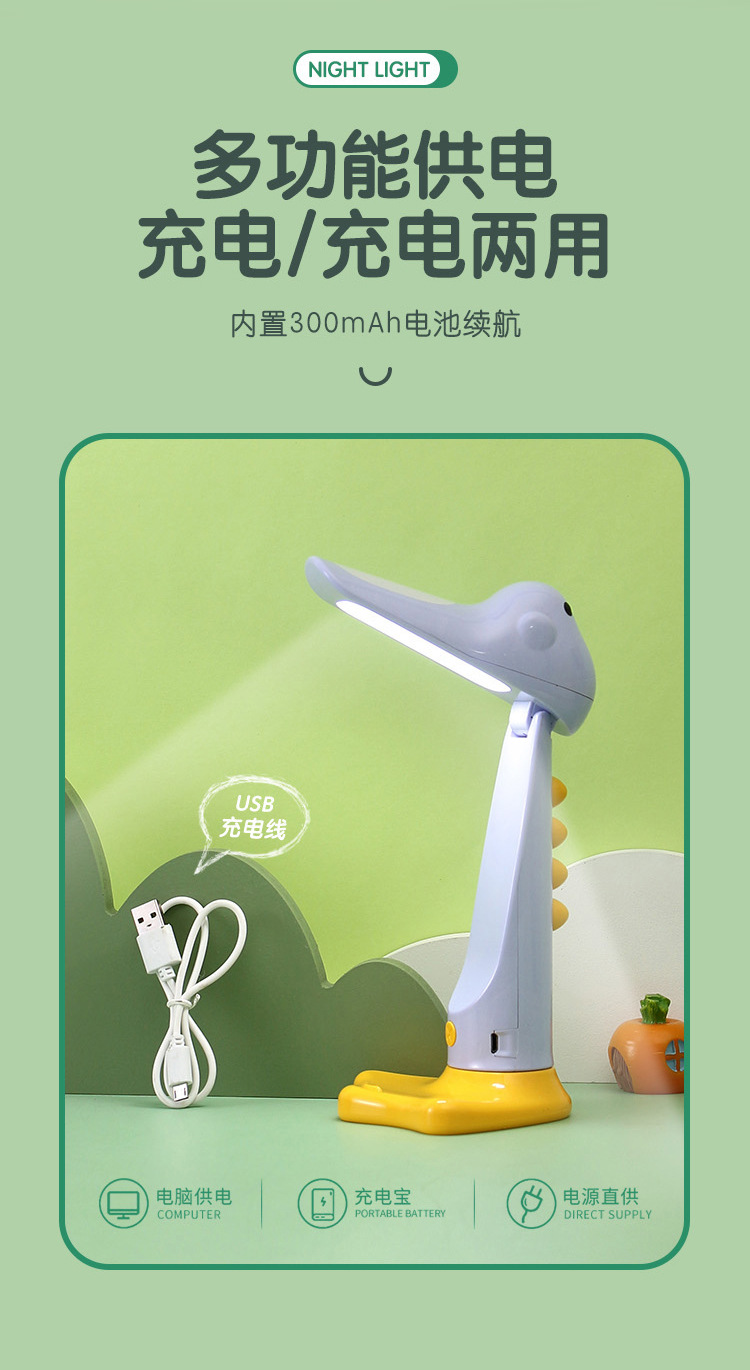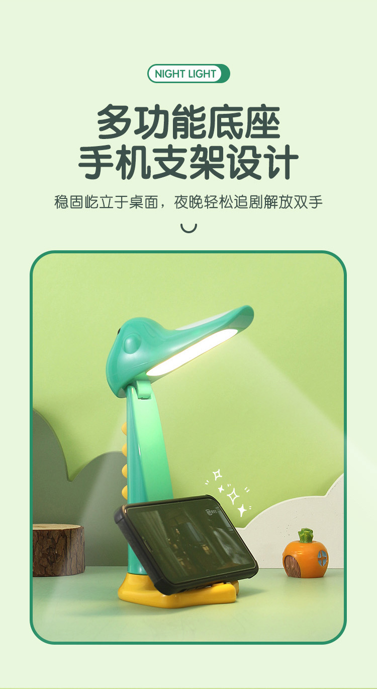 卡通小恐龙充电学生阅读灯 LED台式可充电小夜灯手机支架便携夜灯