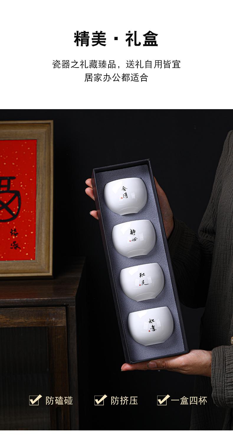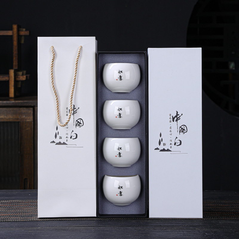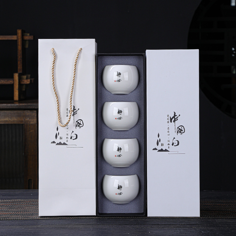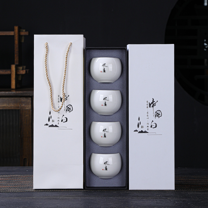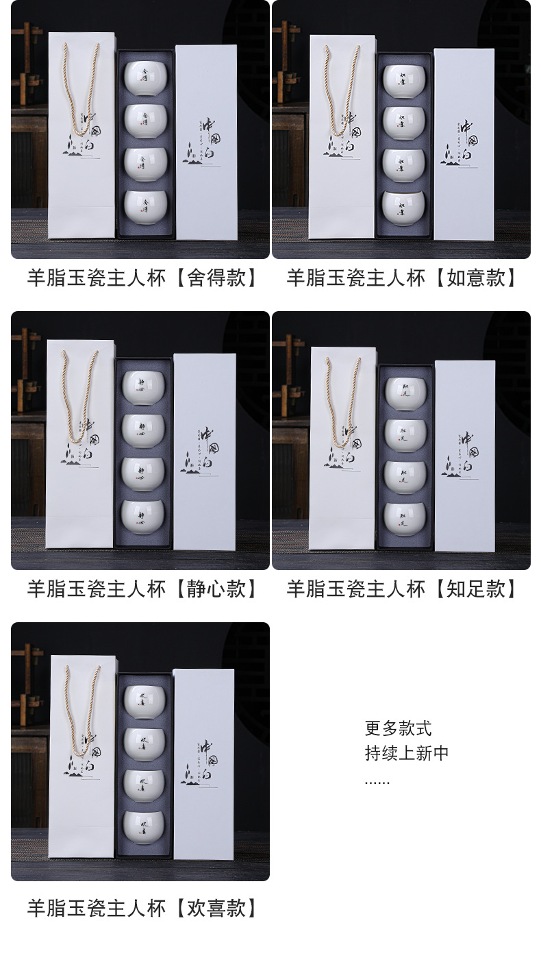 简约羊脂玉主人杯礼盒套装高档白瓷陶瓷功夫茶杯礼品商务伴手礼