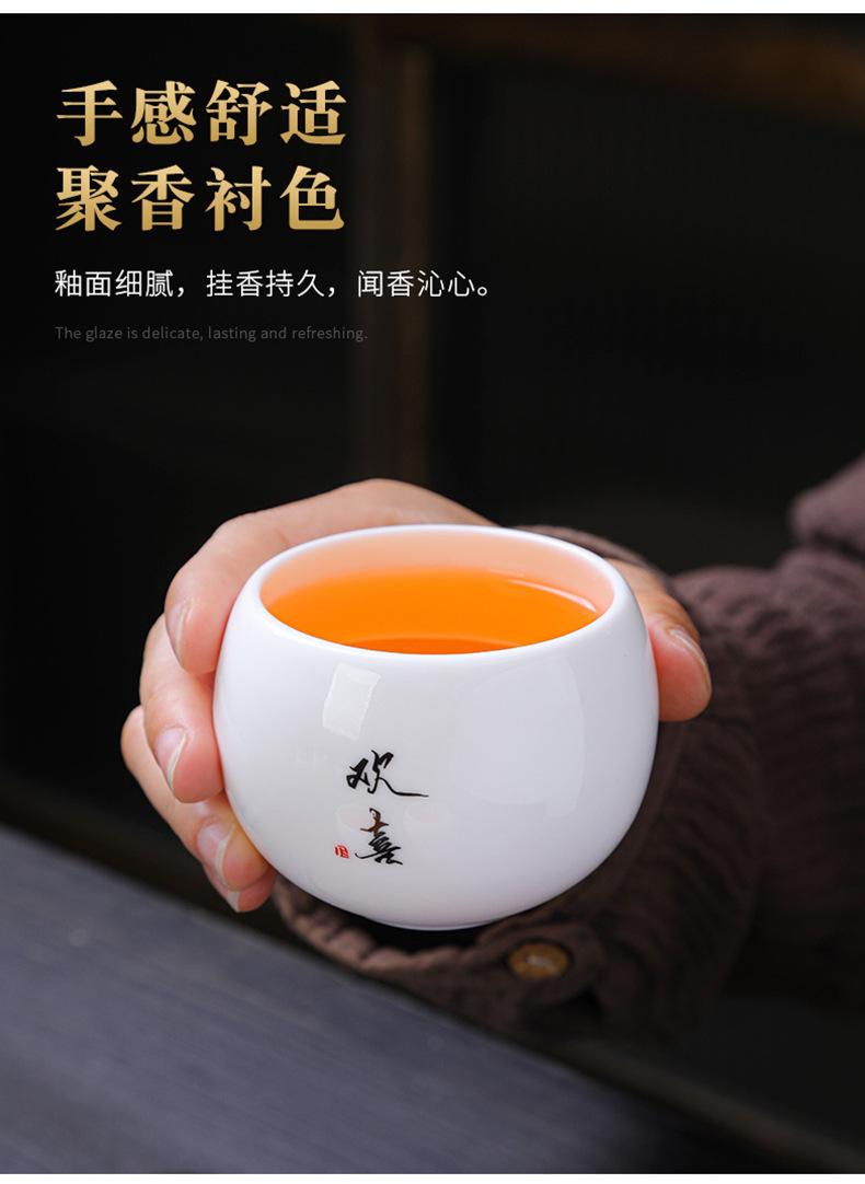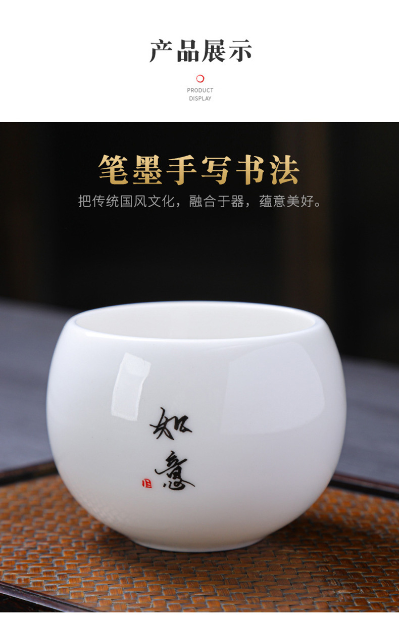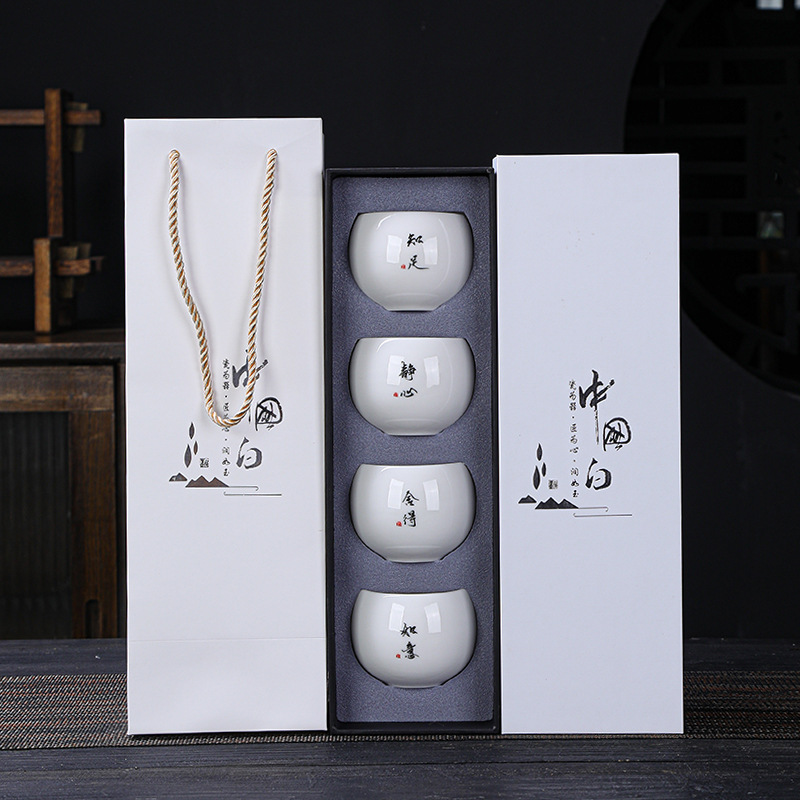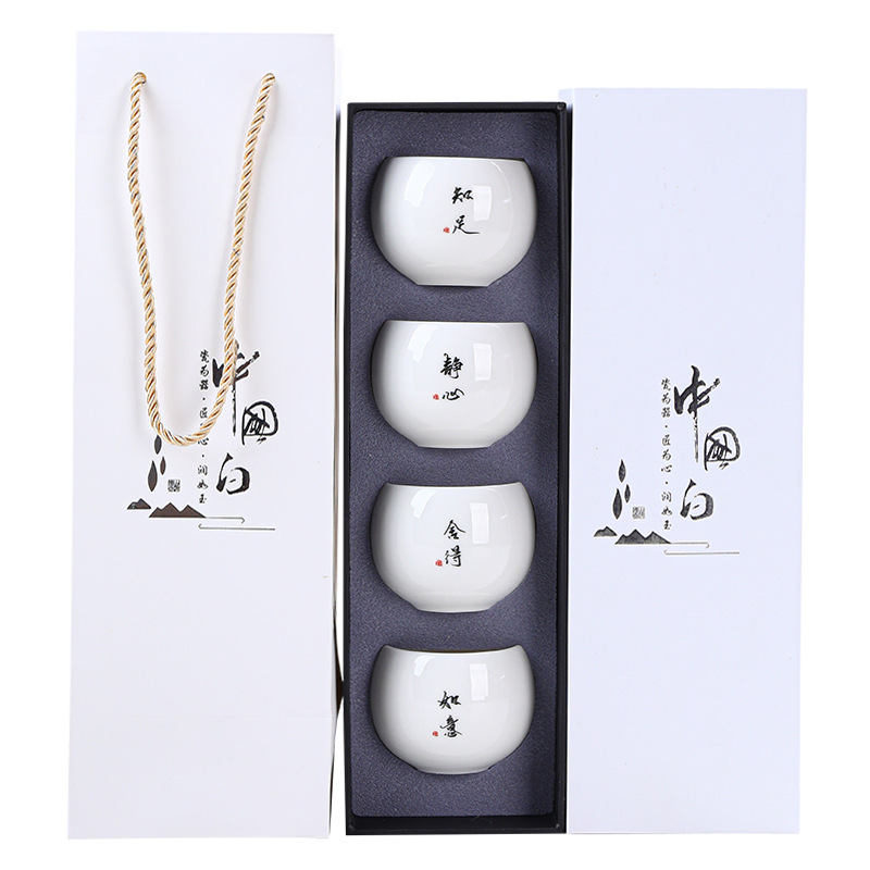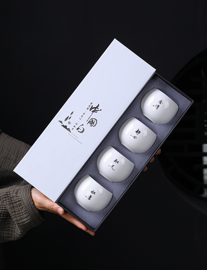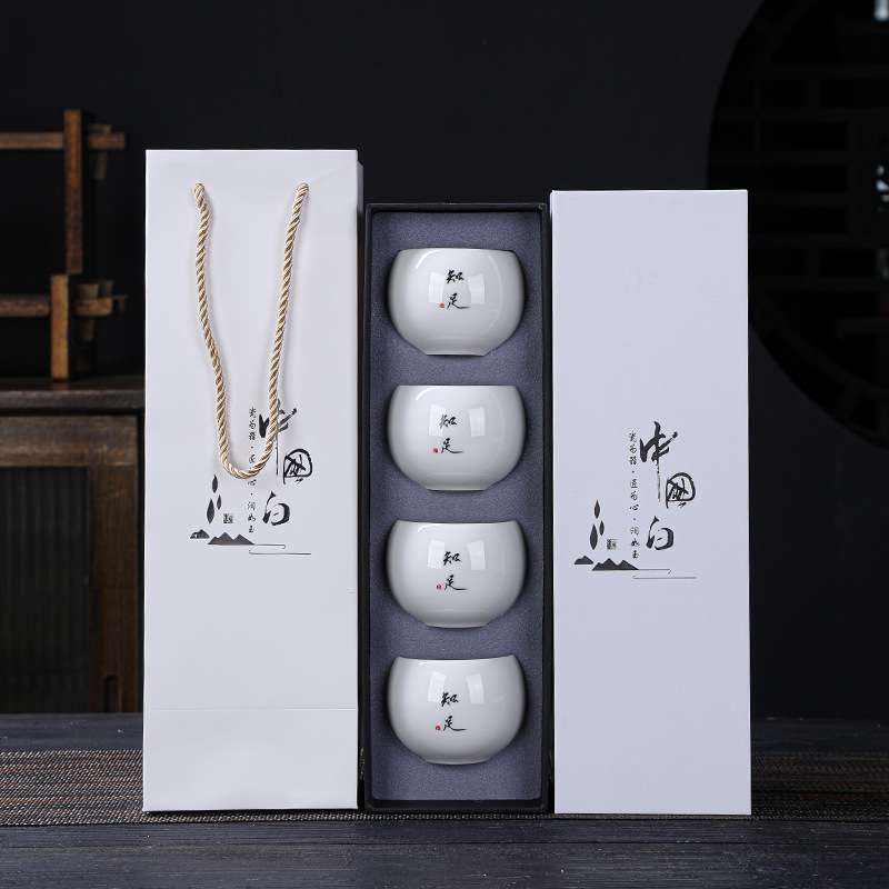 简约羊脂玉主人杯礼盒套装高档白瓷陶瓷功夫茶杯礼品商务伴手礼