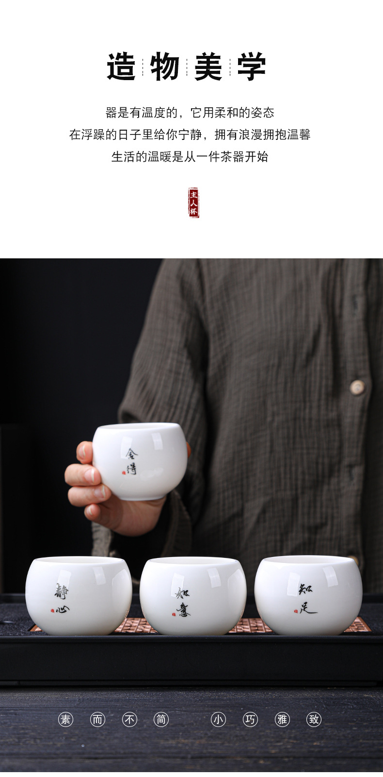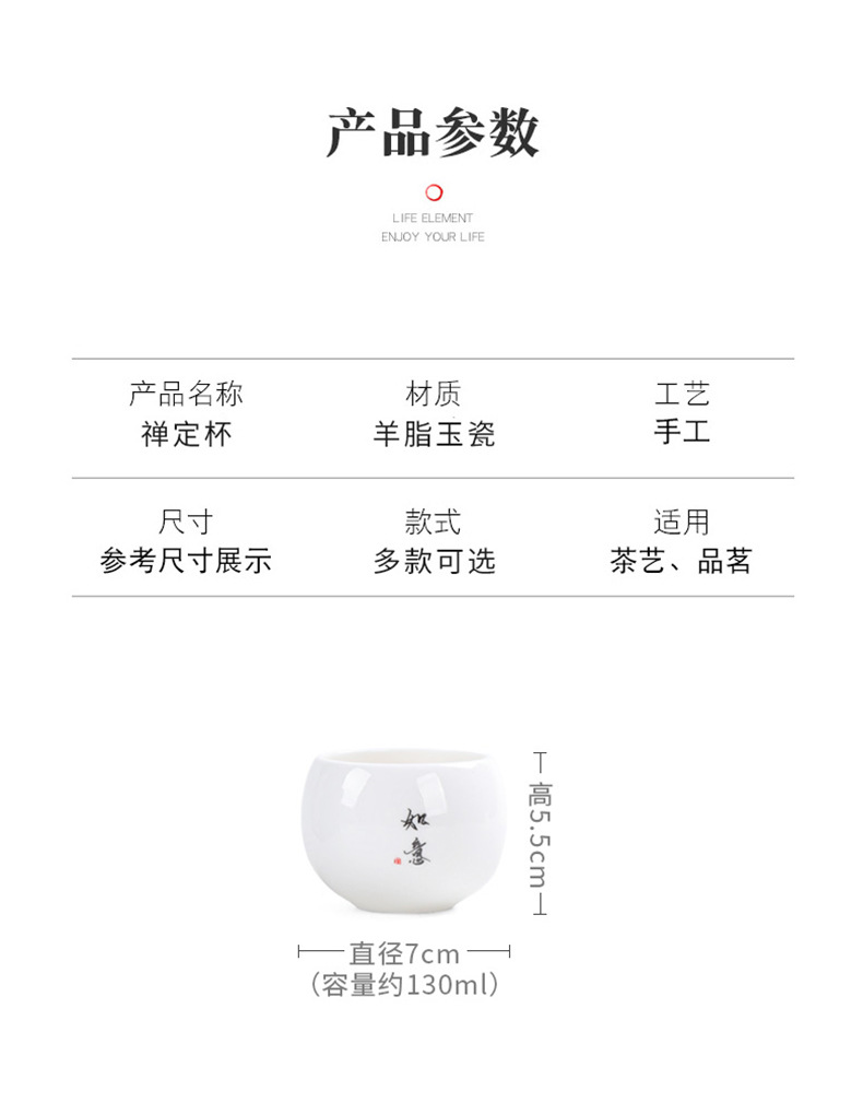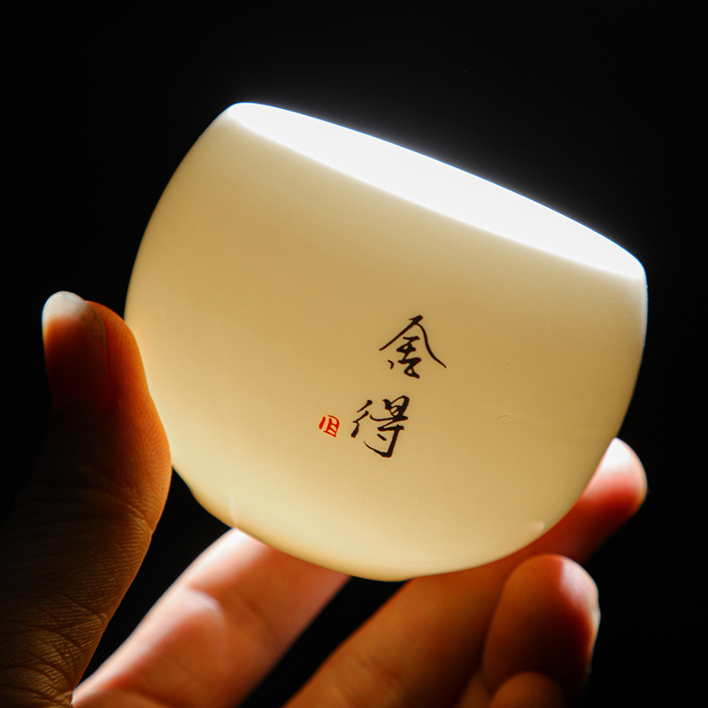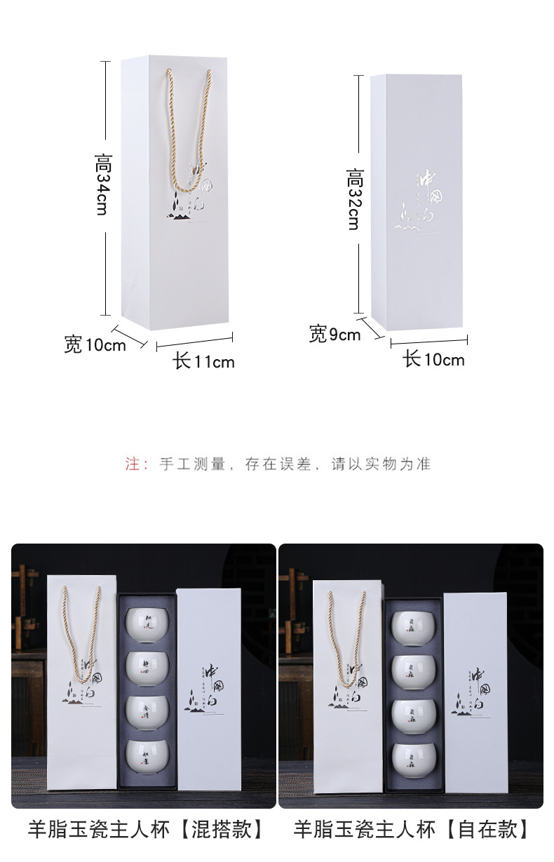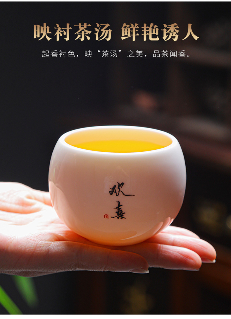 简约羊脂玉主人杯礼盒套装高档白瓷陶瓷功夫茶杯礼品商务伴手礼