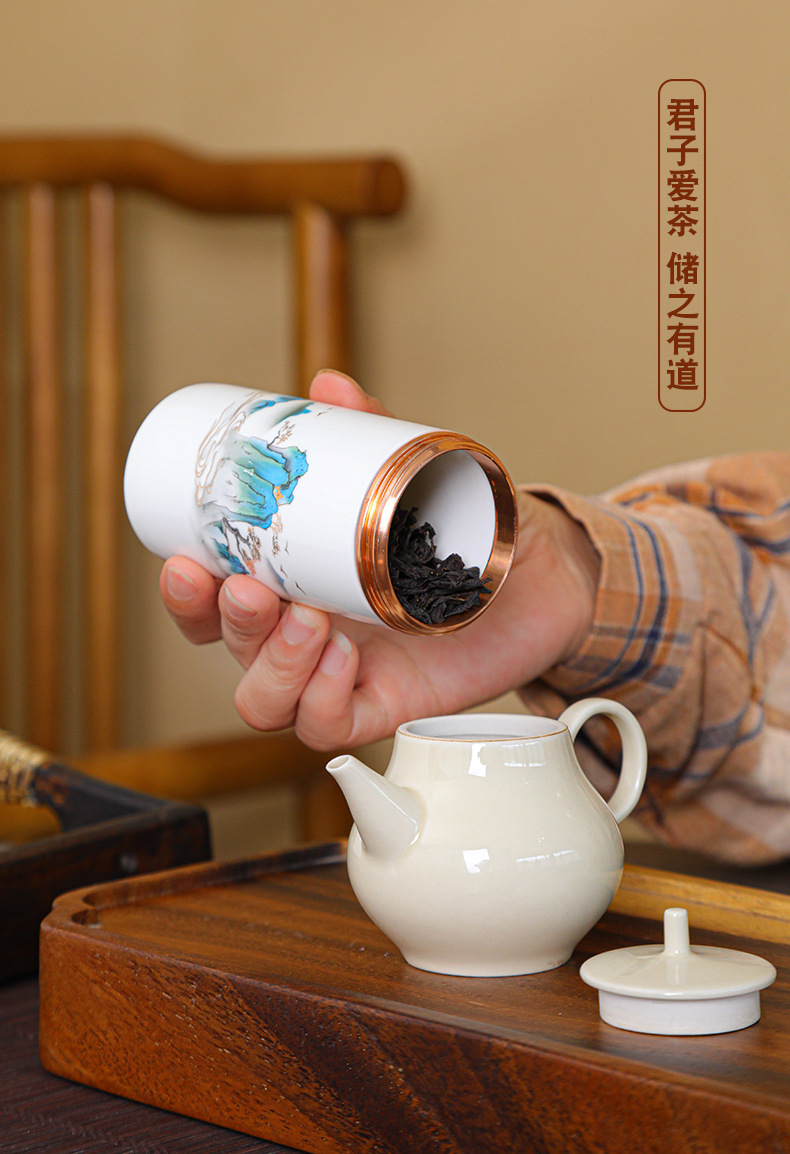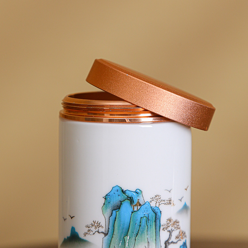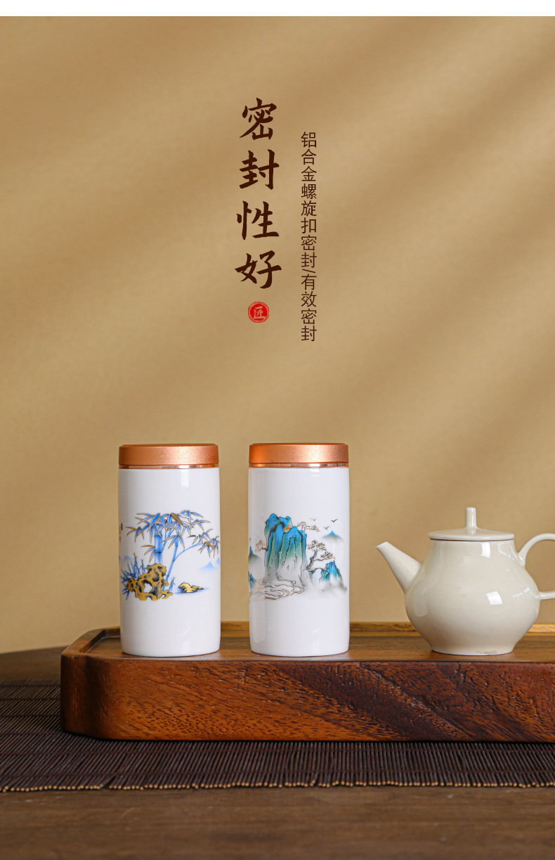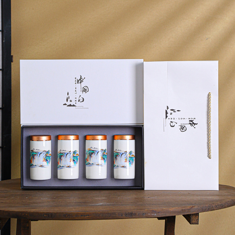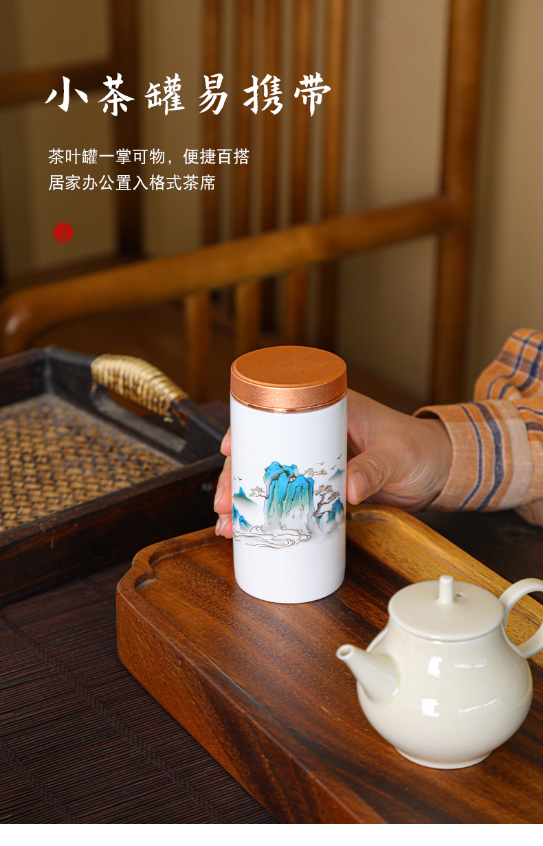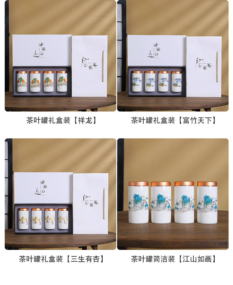 批发陶瓷茶叶罐金属盖羊脂玉密封罐茶叶礼盒包装小号旅行便携茶罐